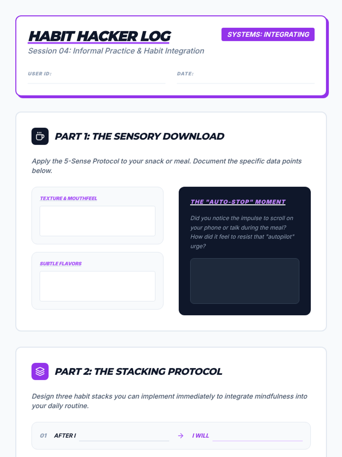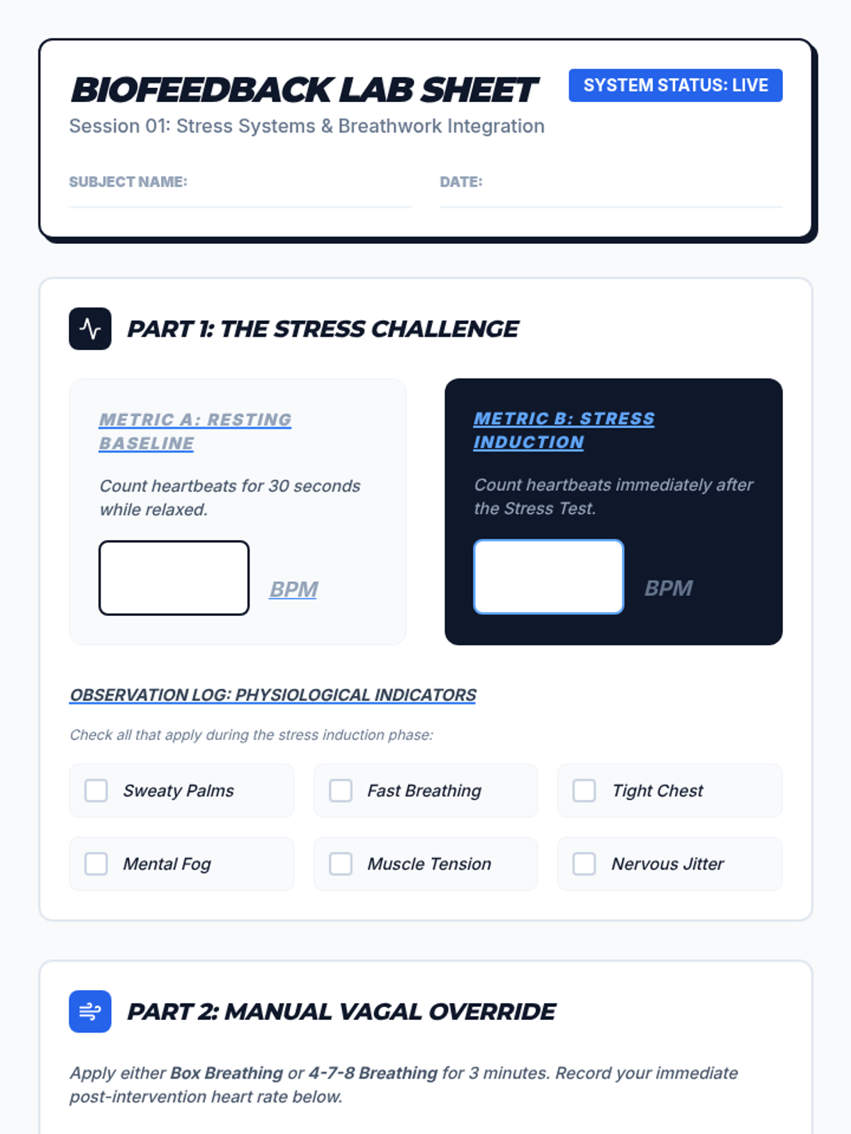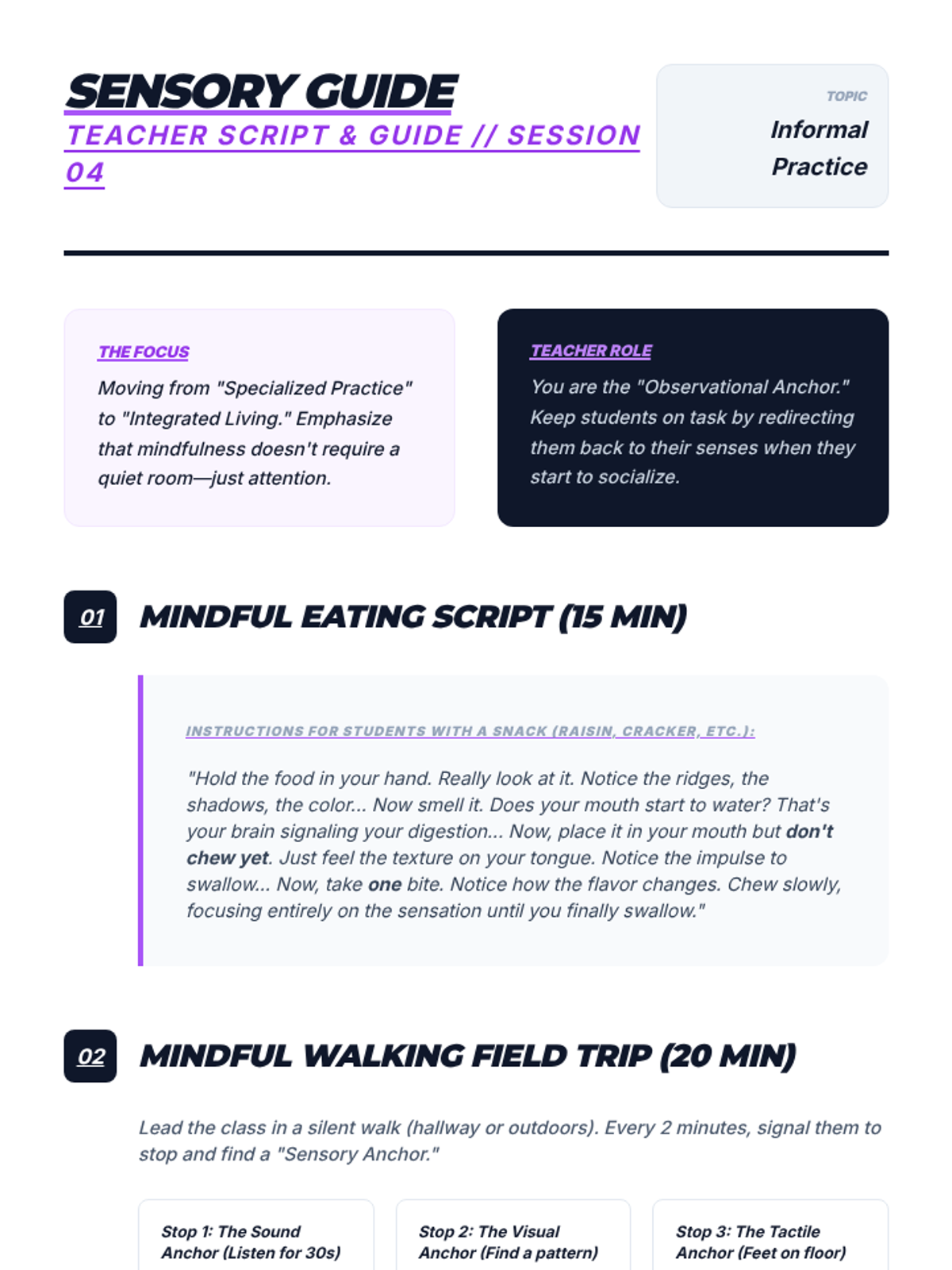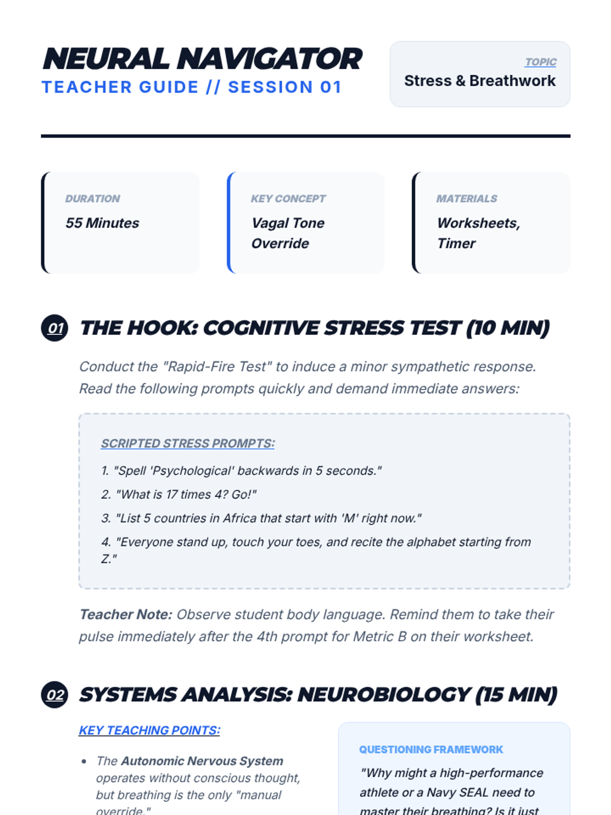 This sequence equips 12th-grade students with scientifically grounded mindfulness and meditation tools. It covers the neurobiology of stress, somatic awareness, cognitive anchoring, and the practical application of these skills in high-stakes environments like college and the workforce.