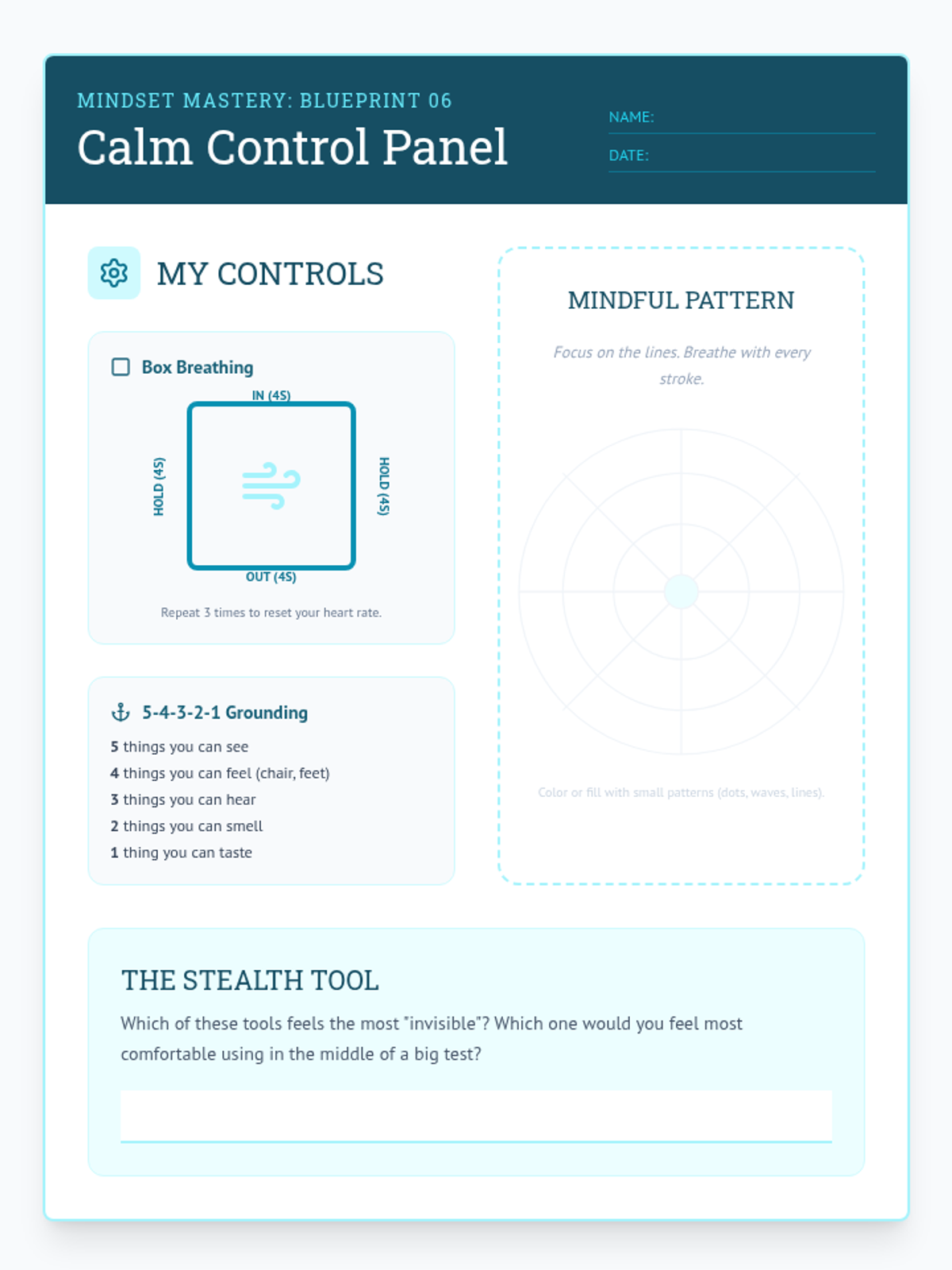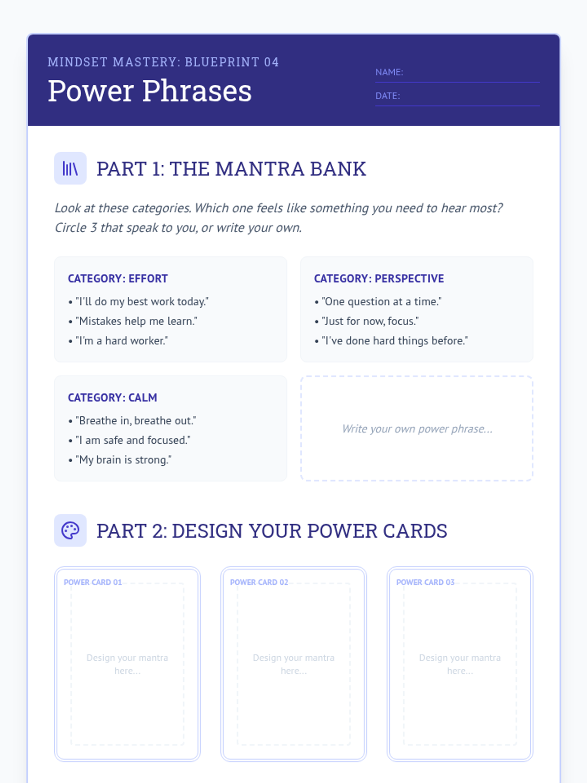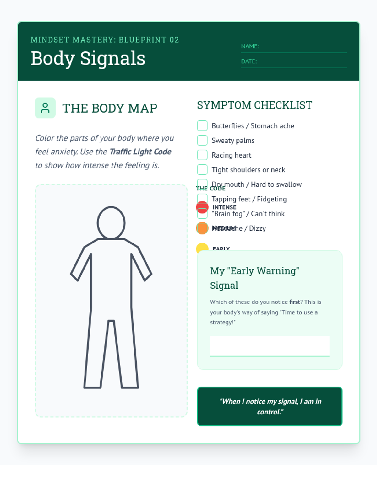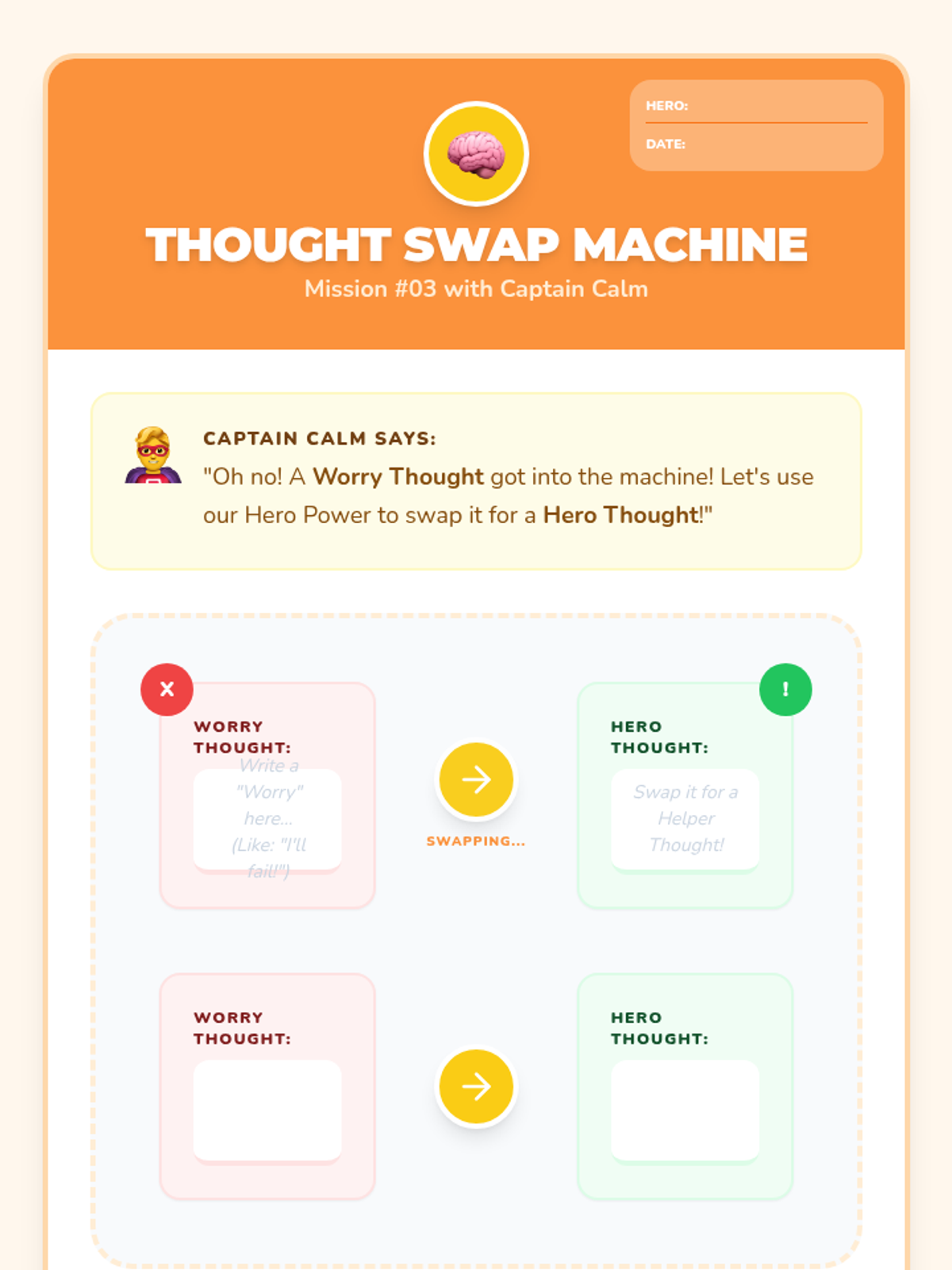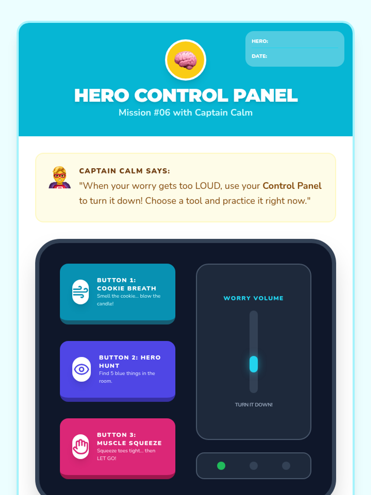 An 8-session counseling group for 2nd and 3rd graders to tackle test anxiety. Guided by Captain Calm, the Mindset Hero, students learn to spot their "Worry Voice," listen to their body, and use "Power Words" and "Chill-Out Tools" to feel brave and ready for tests.
