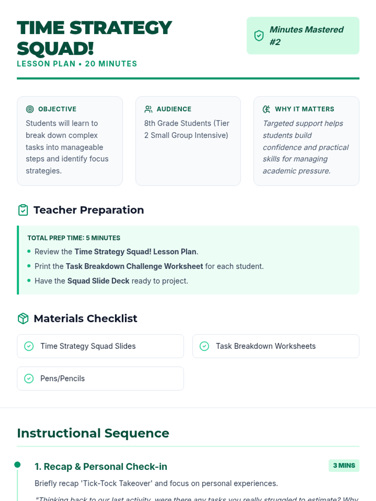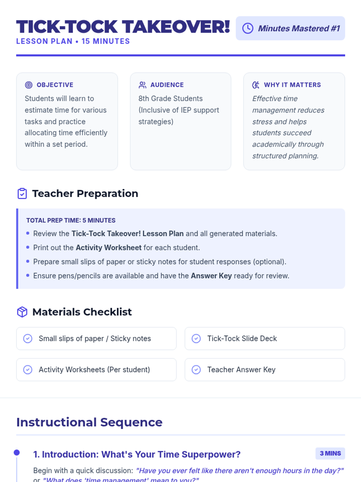 A two-part series on time management skills, focusing on time estimation and task decomposition to help 8th-grade students manage their academic and personal lives more effectively.
