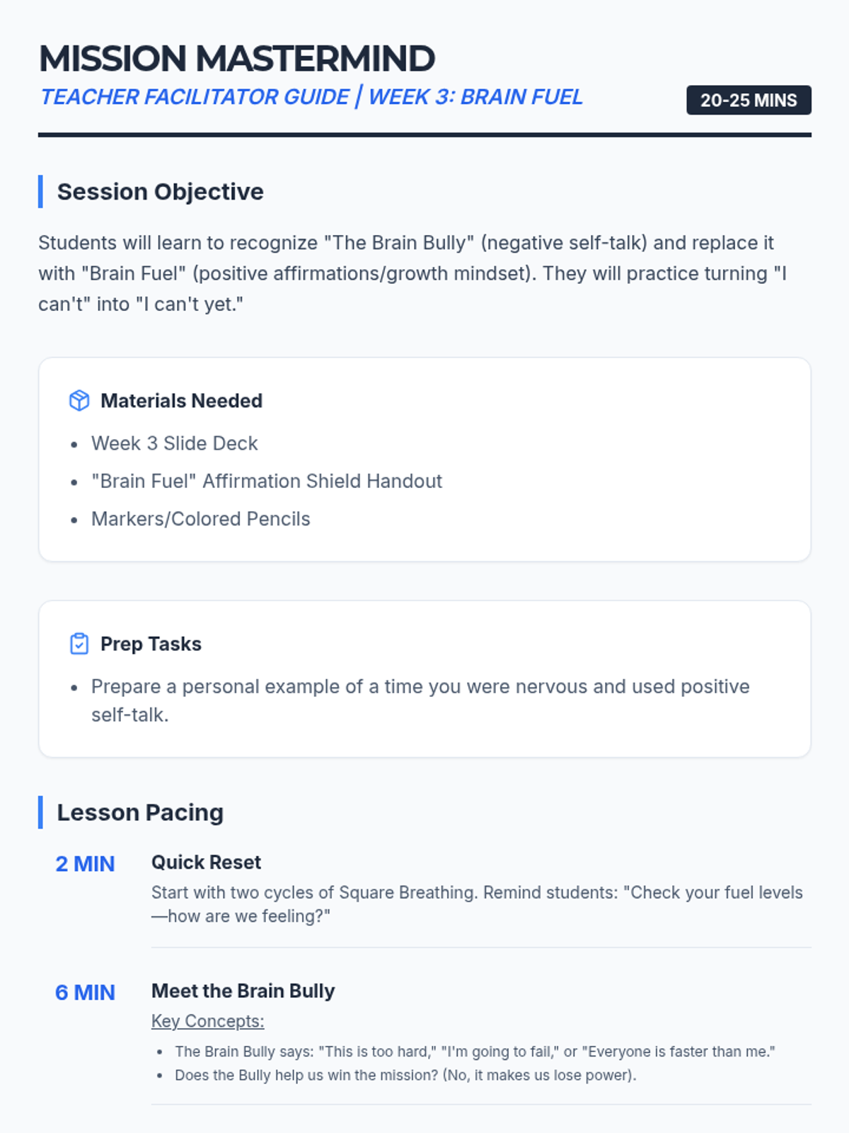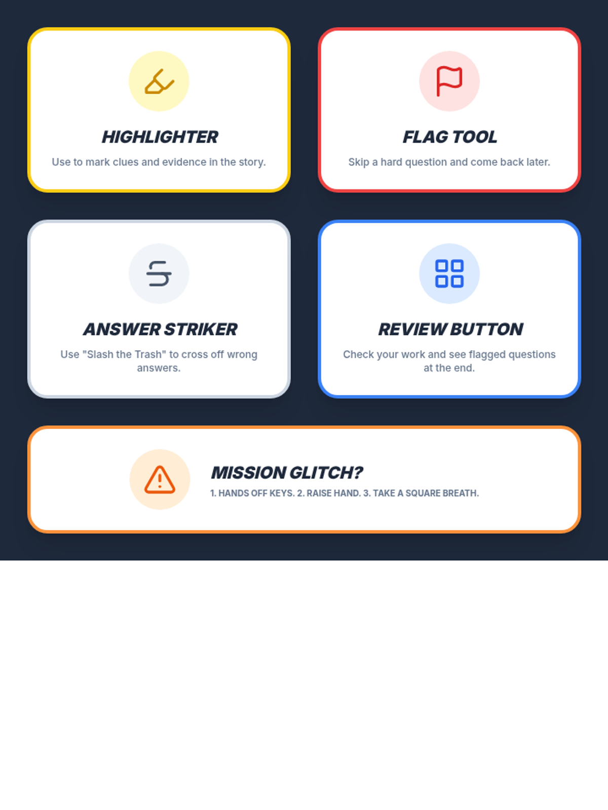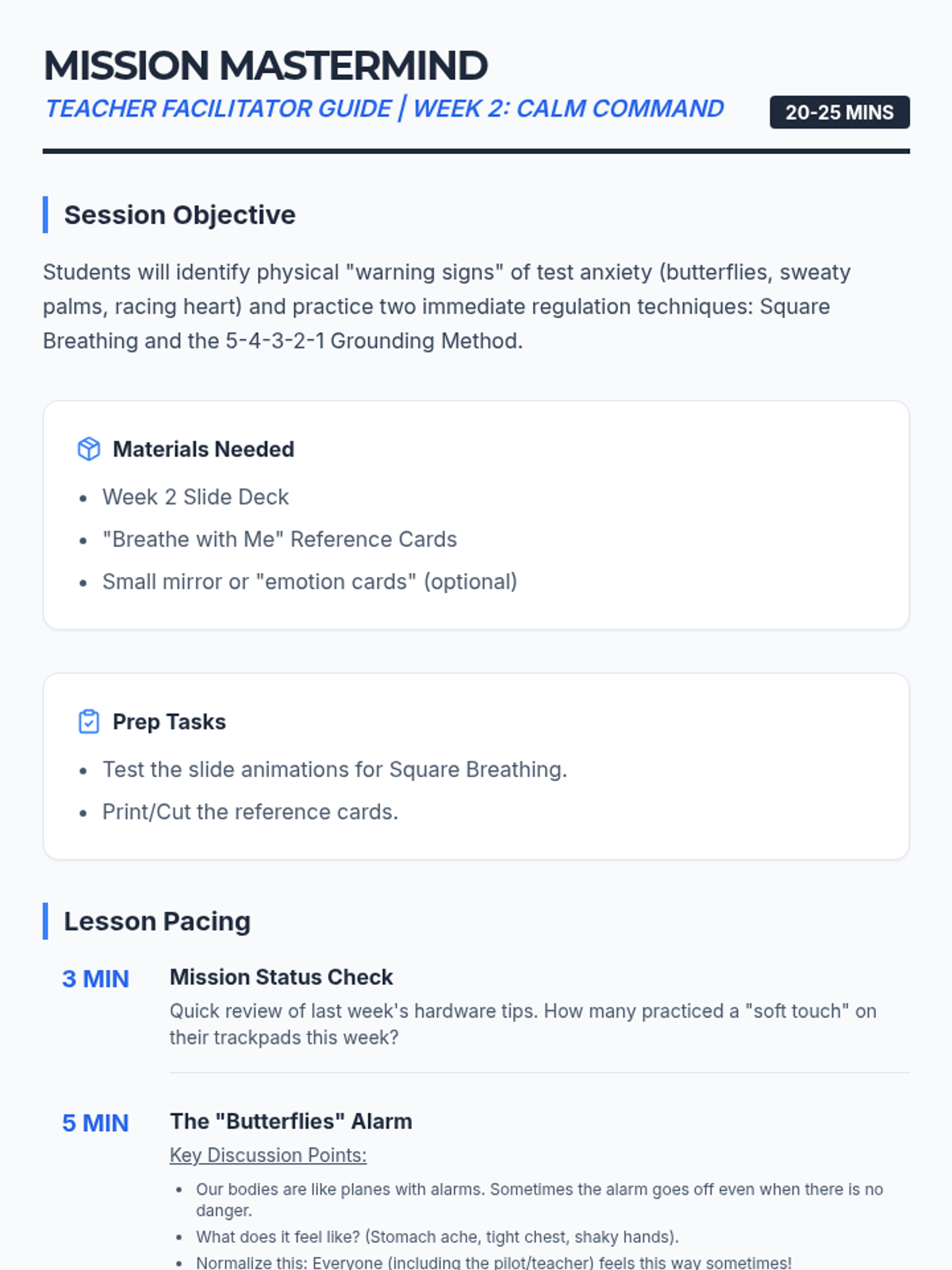 A 6-week small group counseling and test-prep sequence designed for 2nd and 3rd graders preparing for the IRead assessment. It combines emotional regulation, positive mindset, general test-taking strategies, and specific digital literacy skills for the Chromebook testing interface.