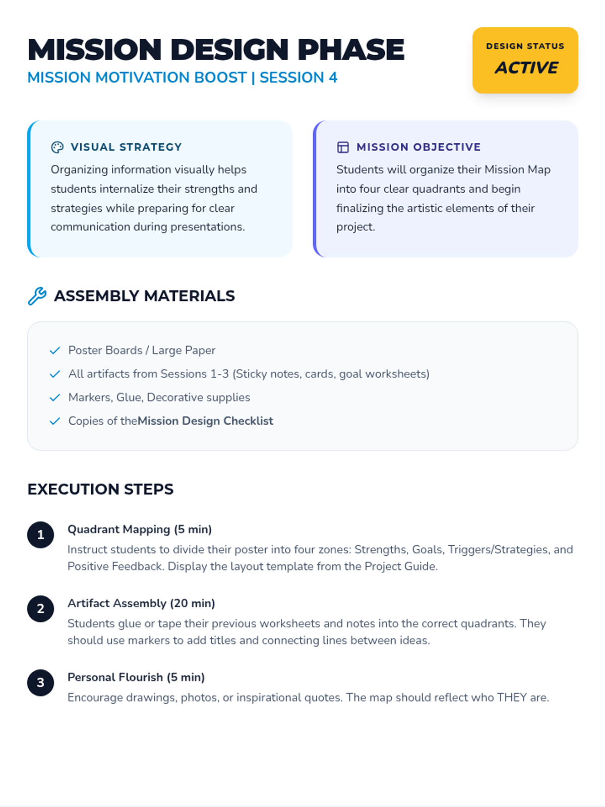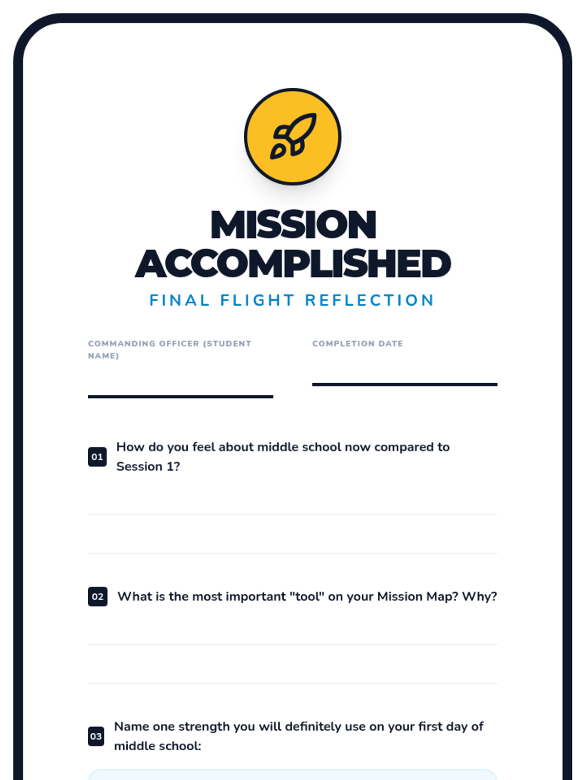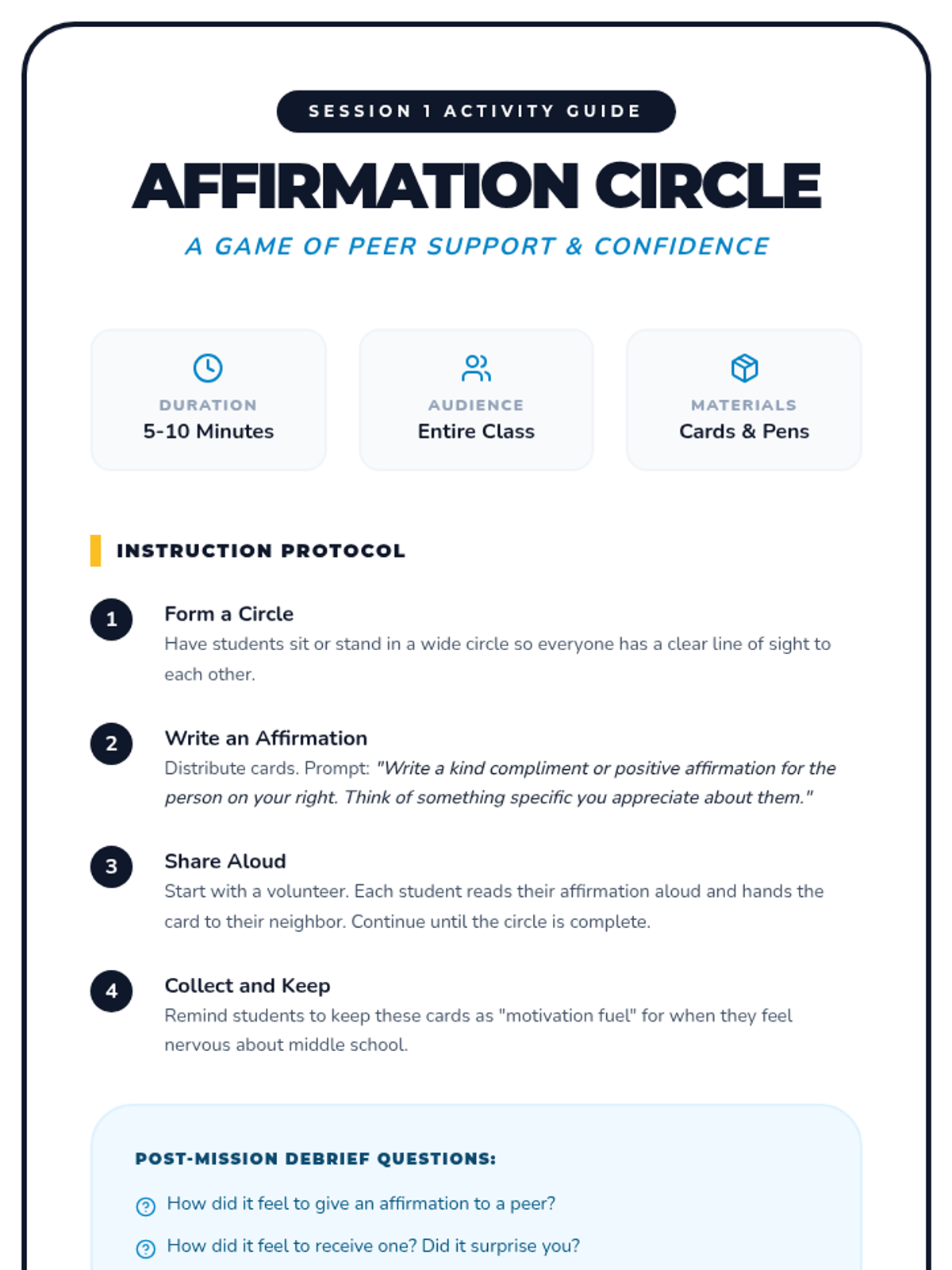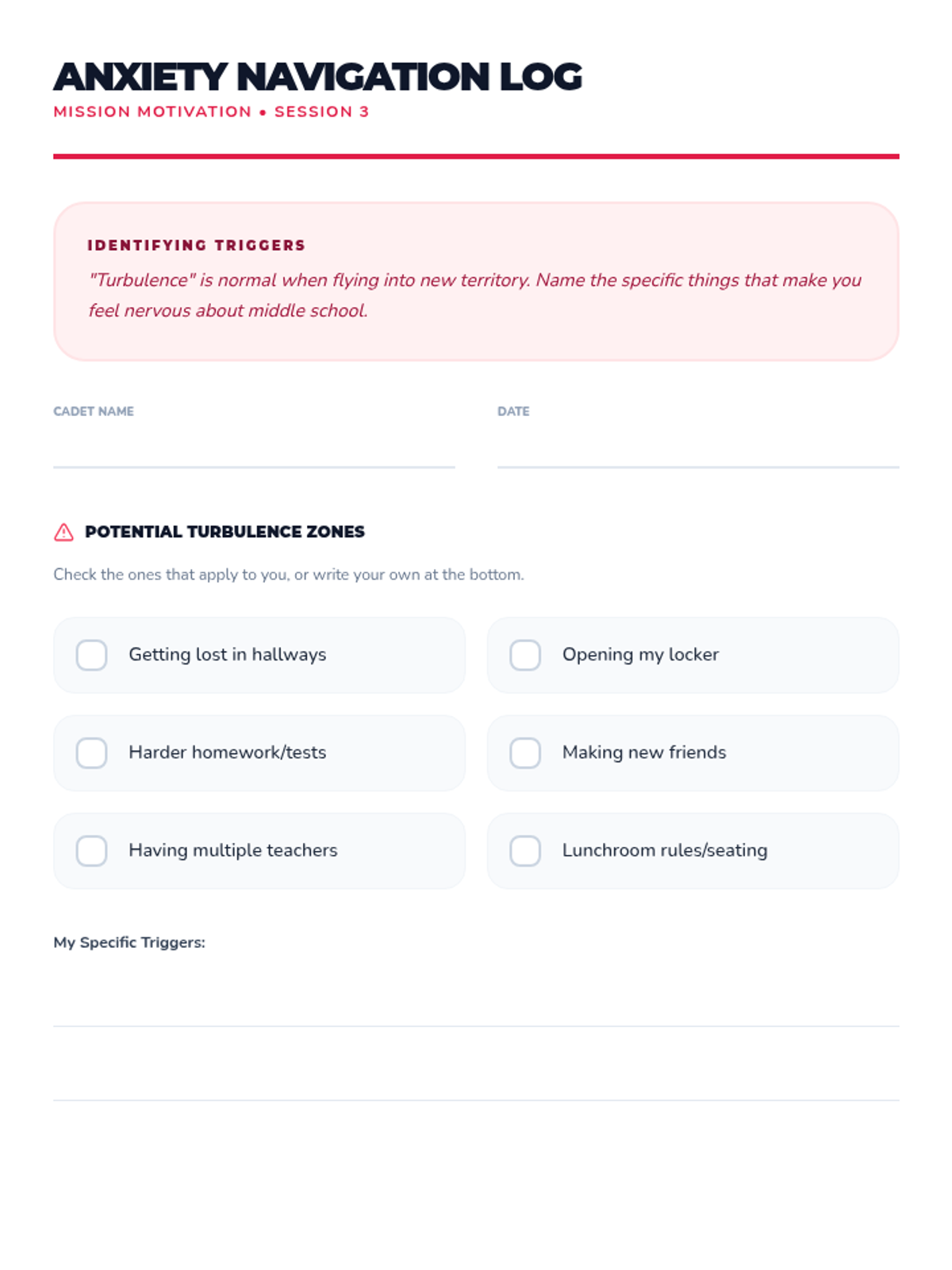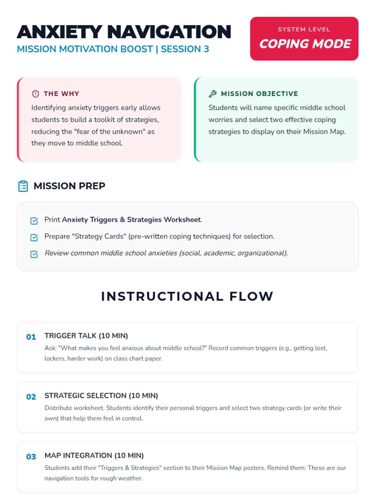 A 6-session journey for 5th graders to build confidence, manage anxiety, and develop motivation through a personalized project as they prepare for middle school.