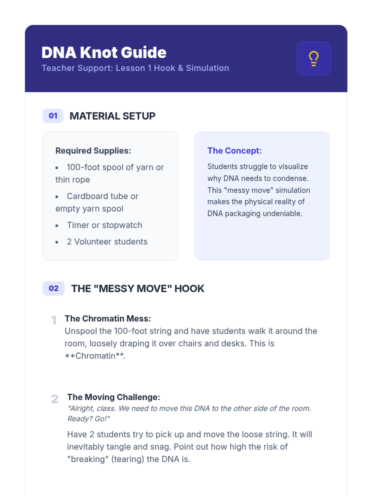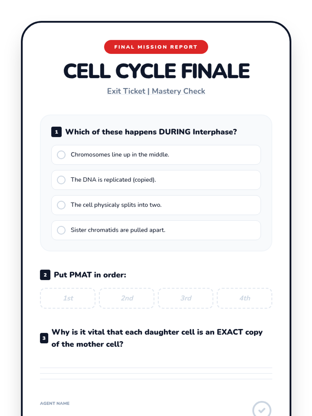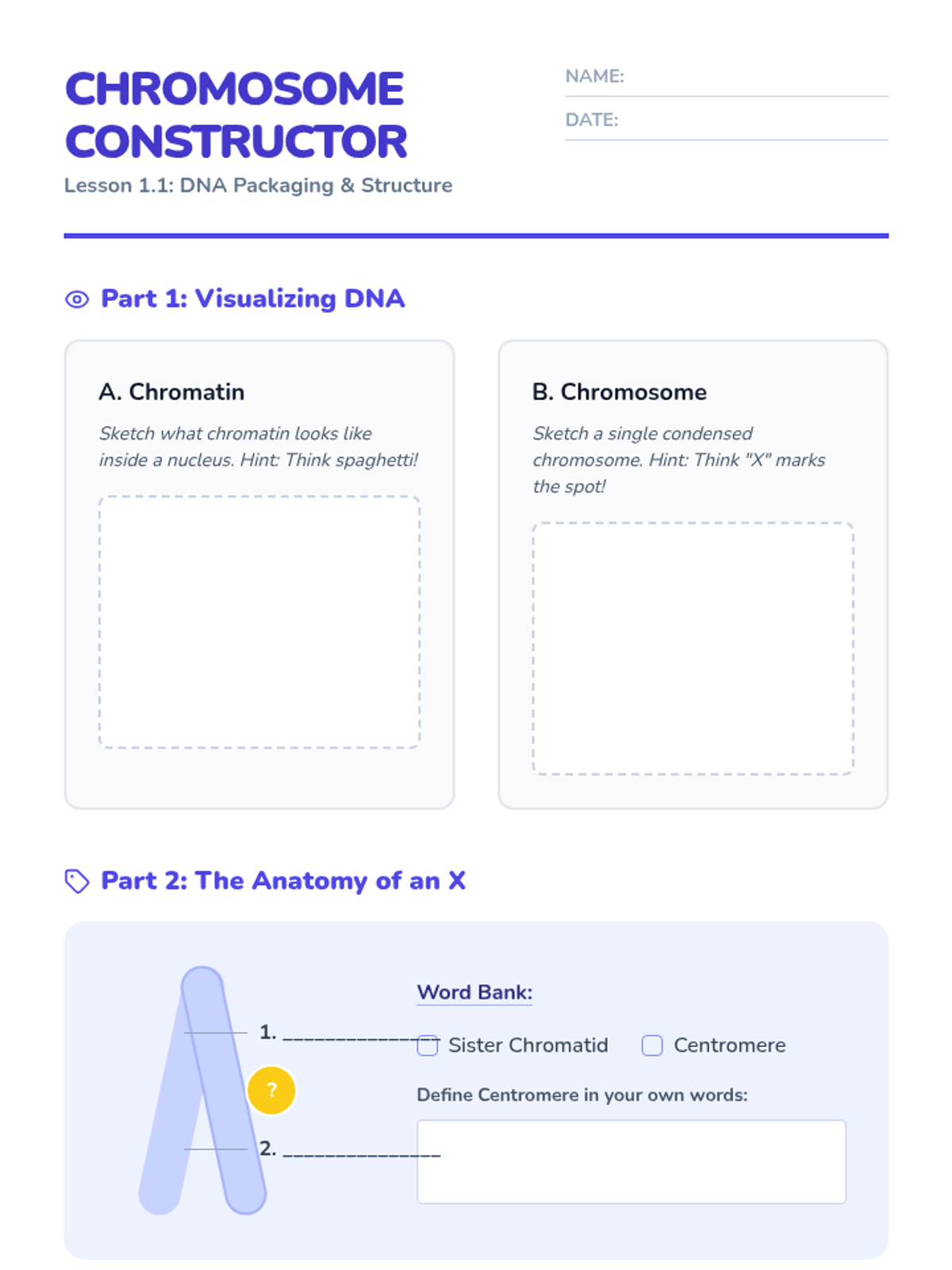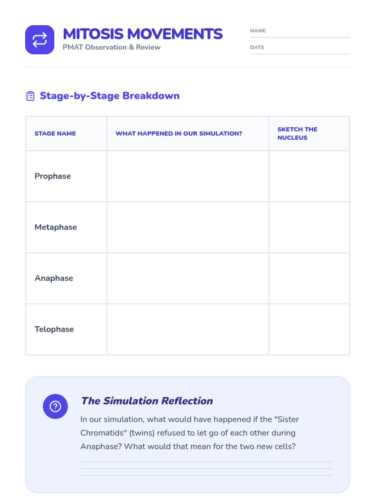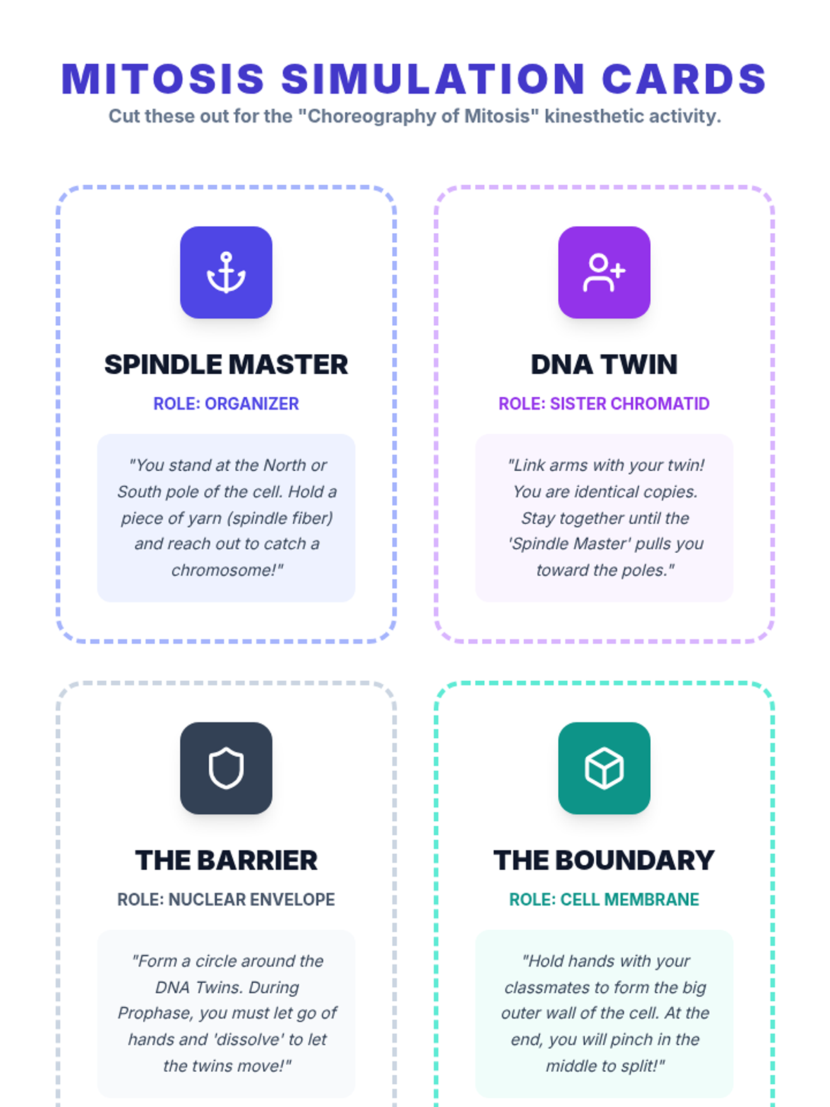 A comprehensive 7th-grade life science sequence that explores the cell cycle and mitosis through hands-on modeling, simulations, and stop-motion animation, focusing on DNA packaging and accurate genetic distribution.