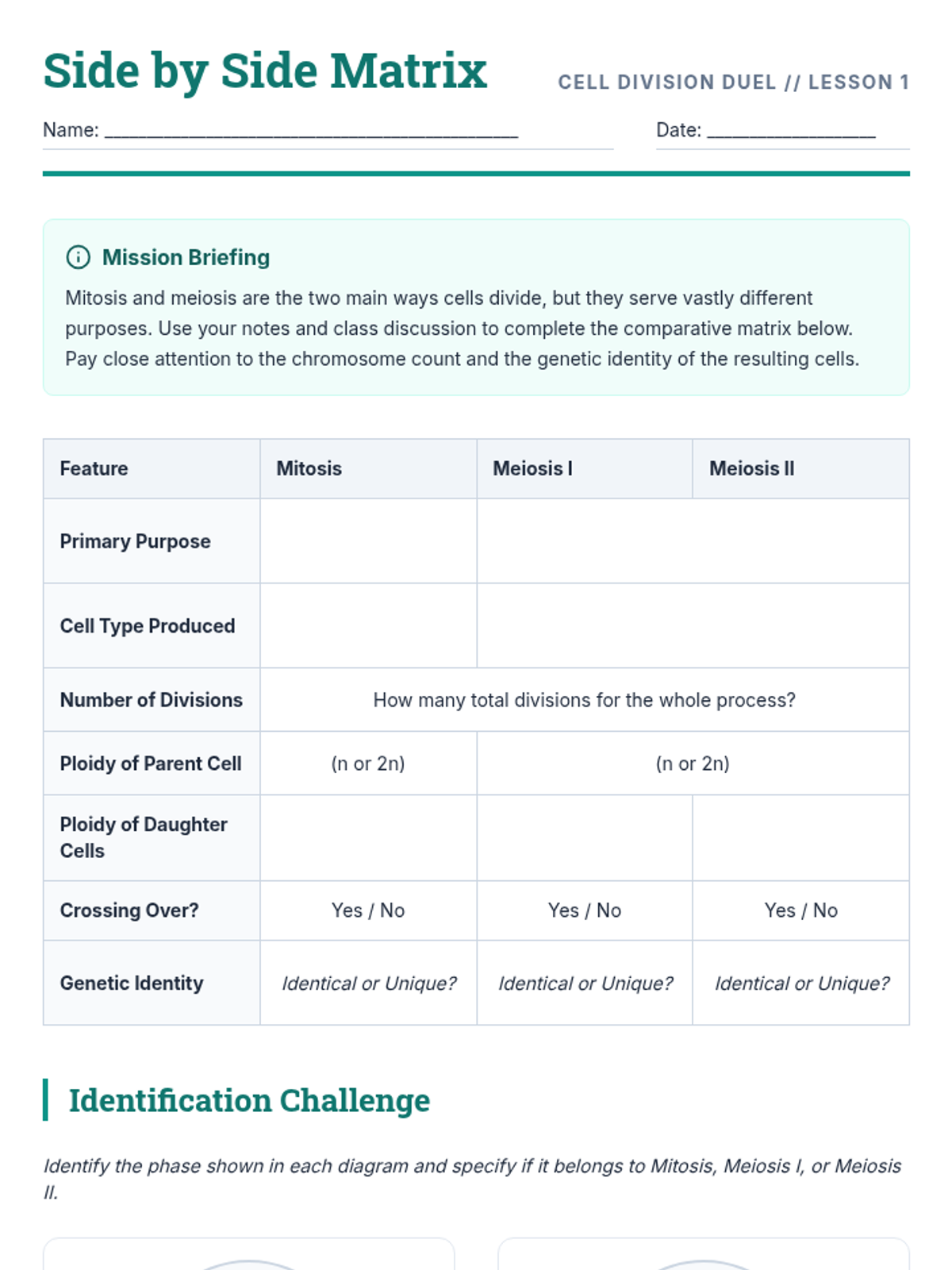 A comprehensive unit on cellular reproduction, focusing on the mechanics of mitosis, DNA replication, and the cell cycle. Students will move from broad overviews to detailed phase analysis using visual-heavy instruction.