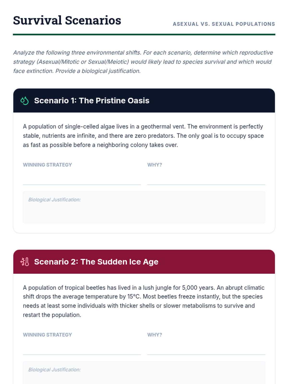 A comparative study of asexual and sexual reproduction strategies, focusing on the mechanisms of mitosis and meiosis, their evolutionary implications, and the consequences of chromosomal errors.
