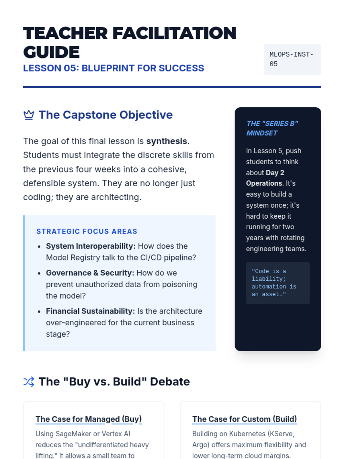A graduate-level engineering sequence focusing on the lifecycle management, scalability, and reproducibility of AI systems using MLOps practices. Students transition from notebook-based research to production-grade engineering, covering containerization, data versioning, orchestration, and scalable serving.