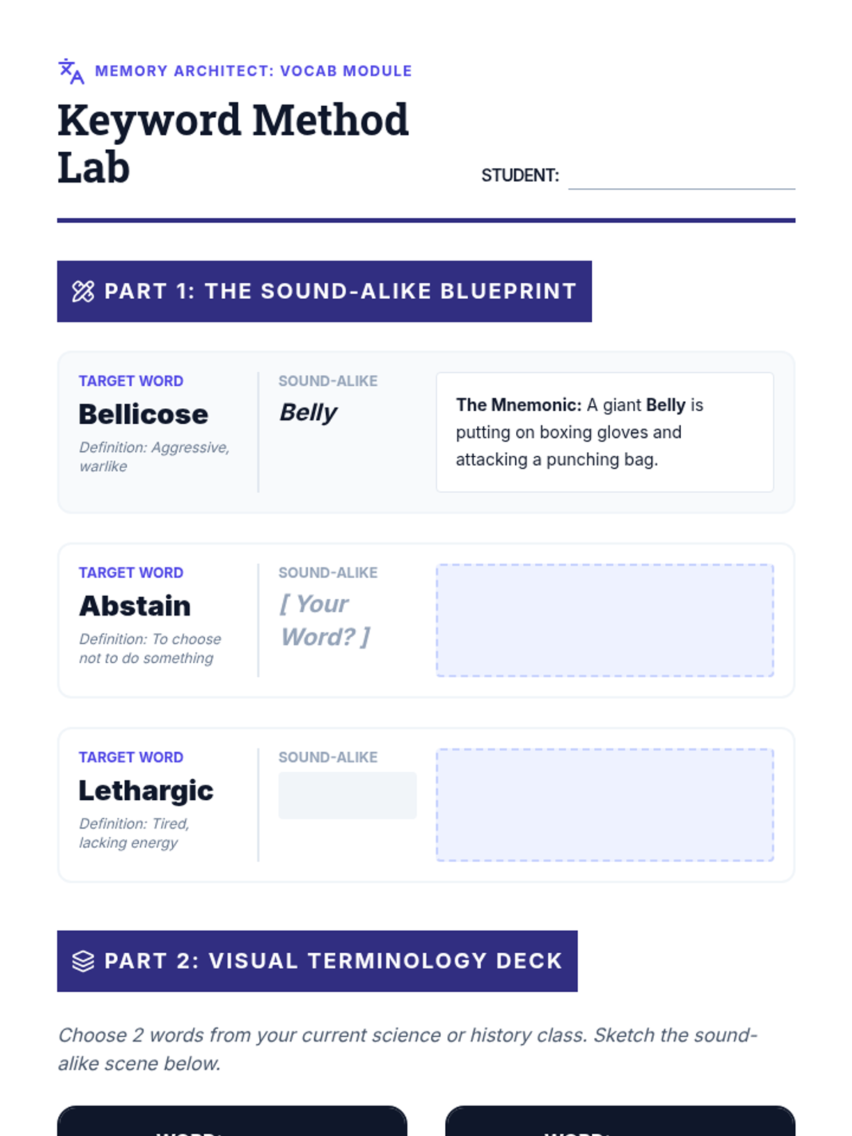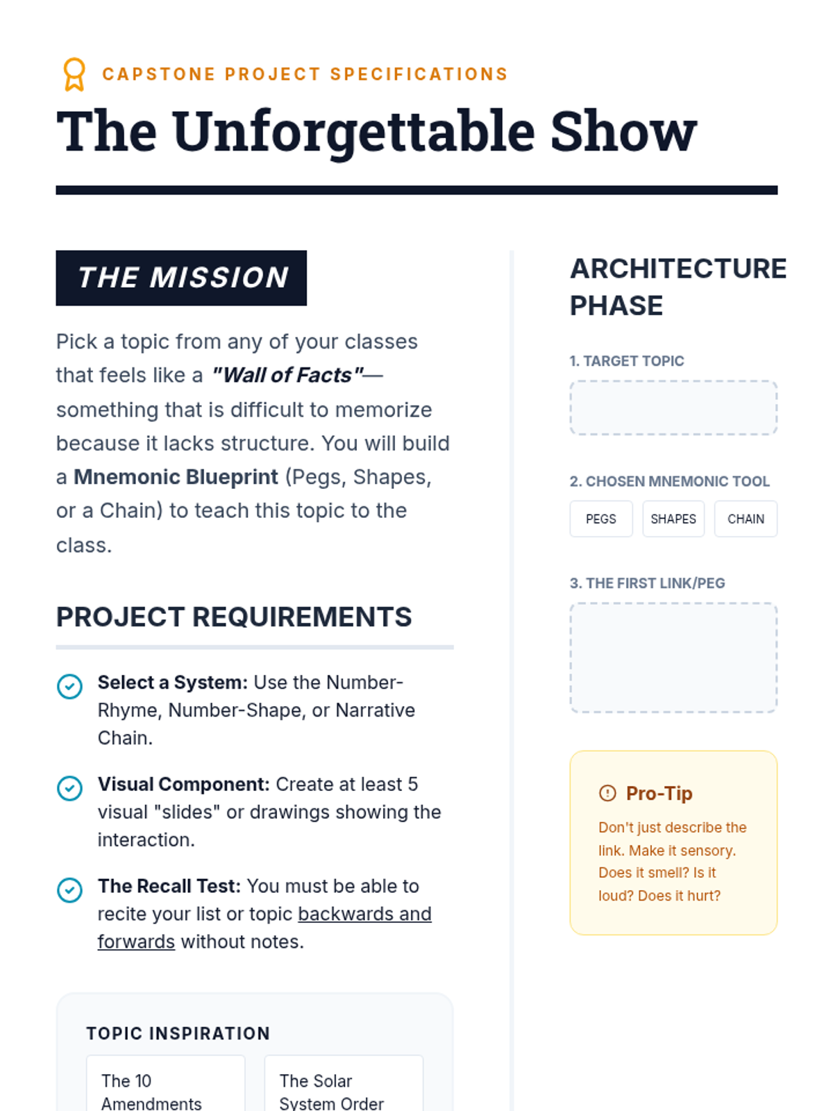 This sequence teaches 11th-grade students advanced mnemonic techniques like the Peg System and Narrative Chaining to support working memory and prevent information fragmentation. Students move from fixed associations to creative storytelling, culminating in a project where they teach complex content using these methods.