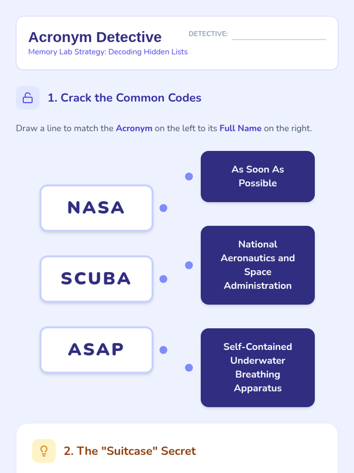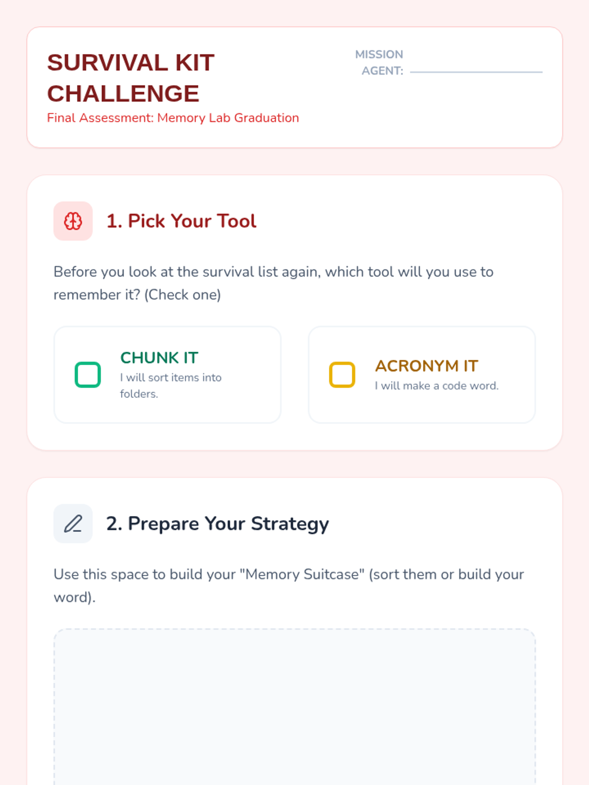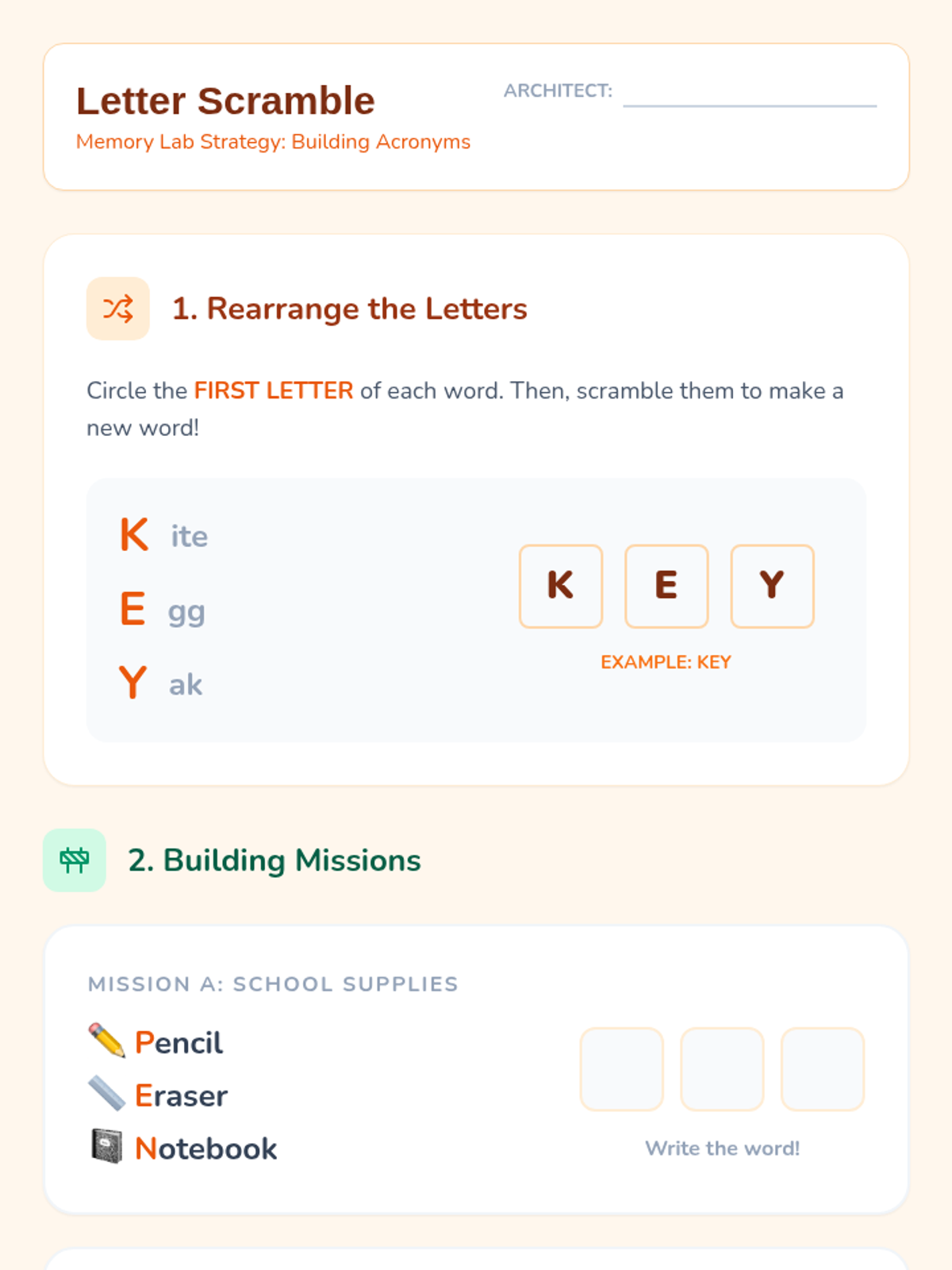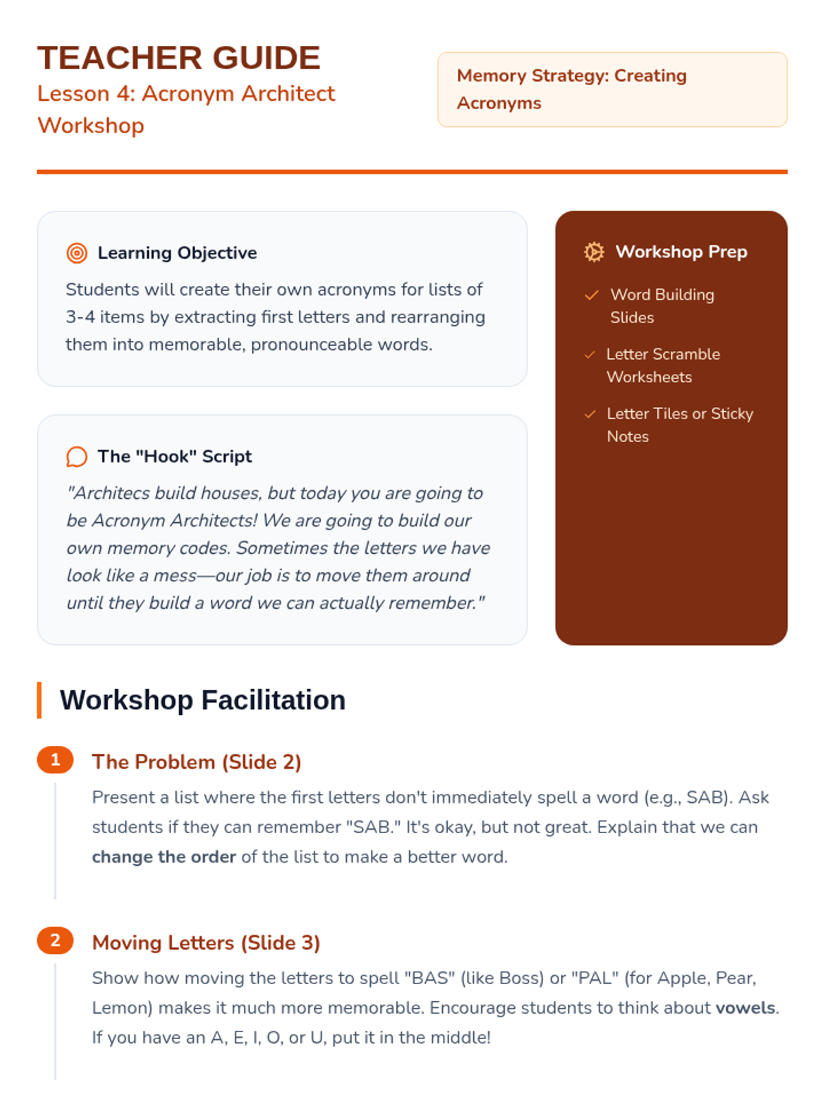 This sequence teaches 3rd-grade students cognitive strategies for memory support. Students learn to chunk numerical and semantic information and progress to creating and using acronyms to facilitate data retrieval and reduce cognitive load.