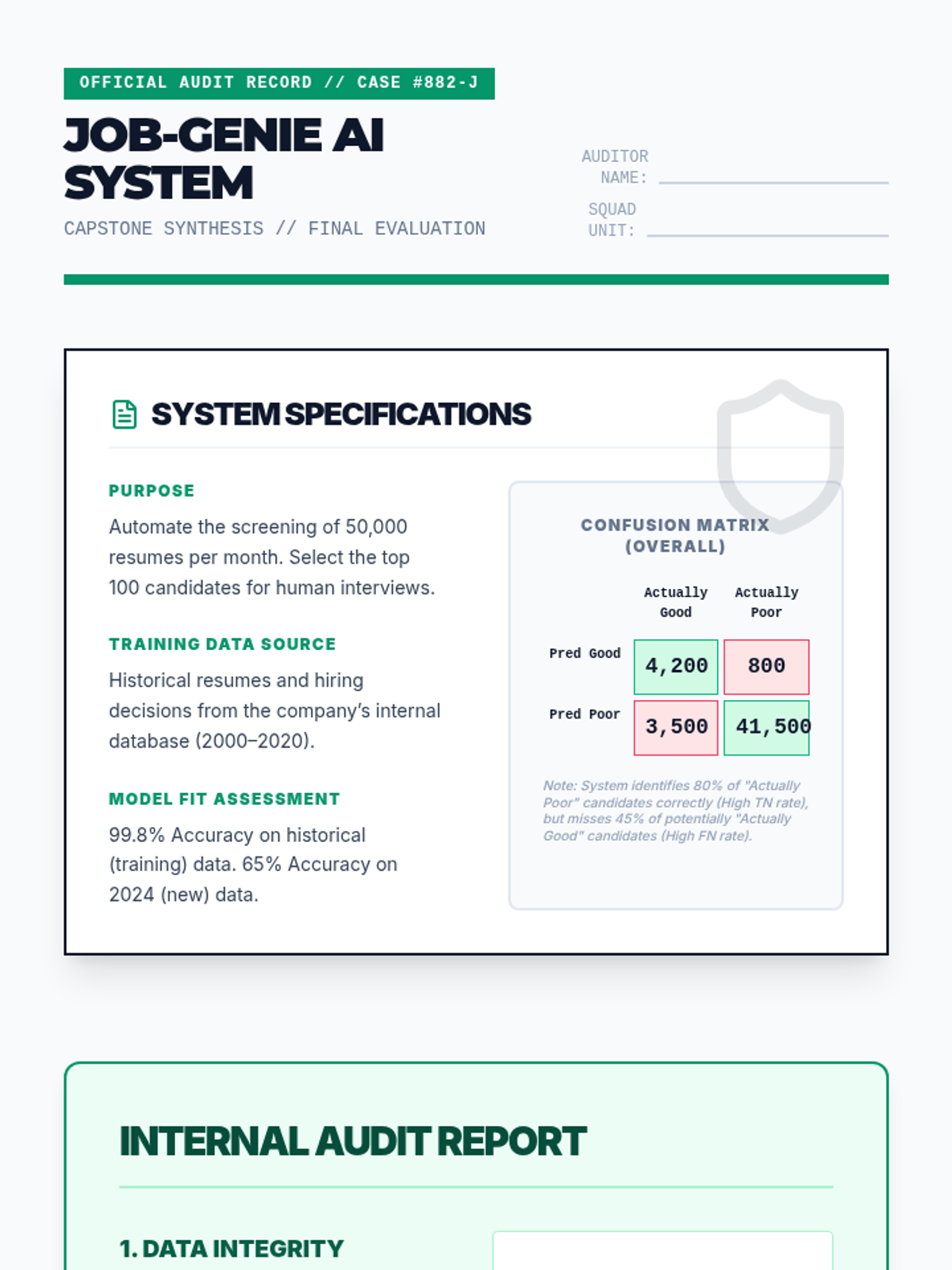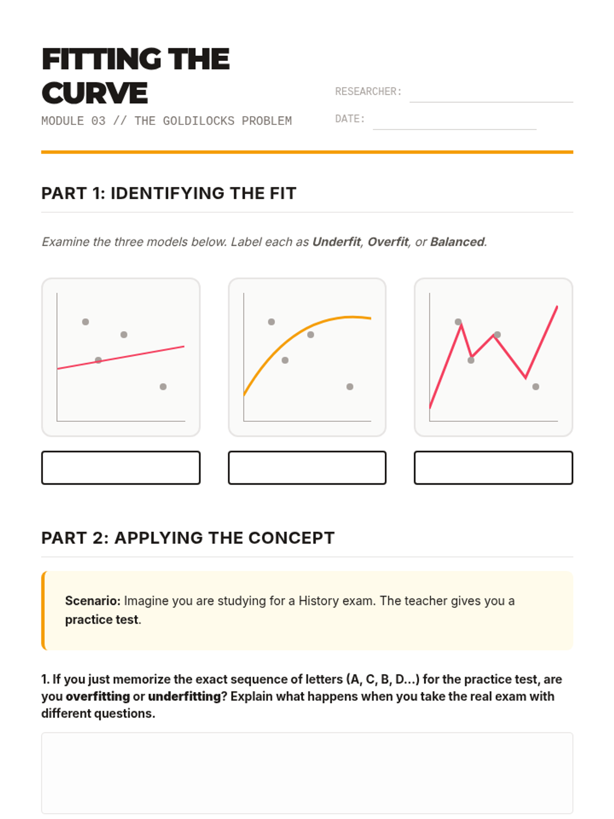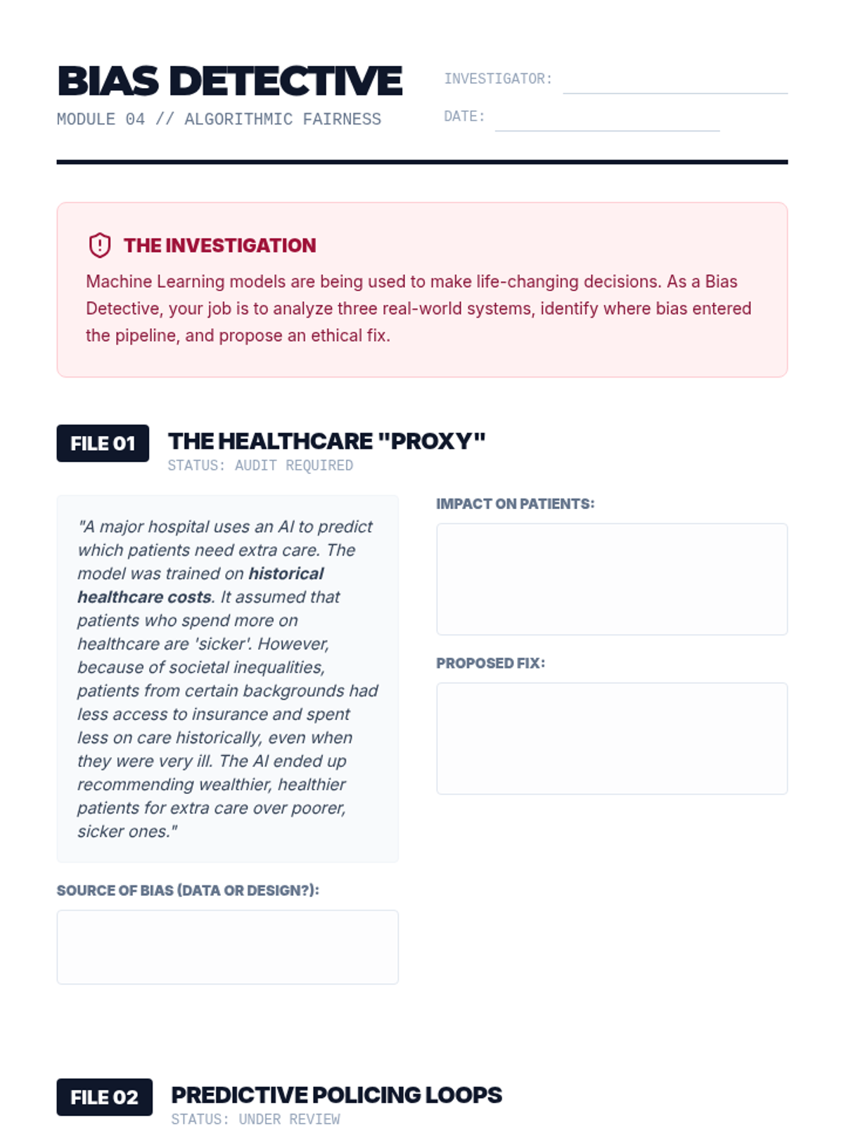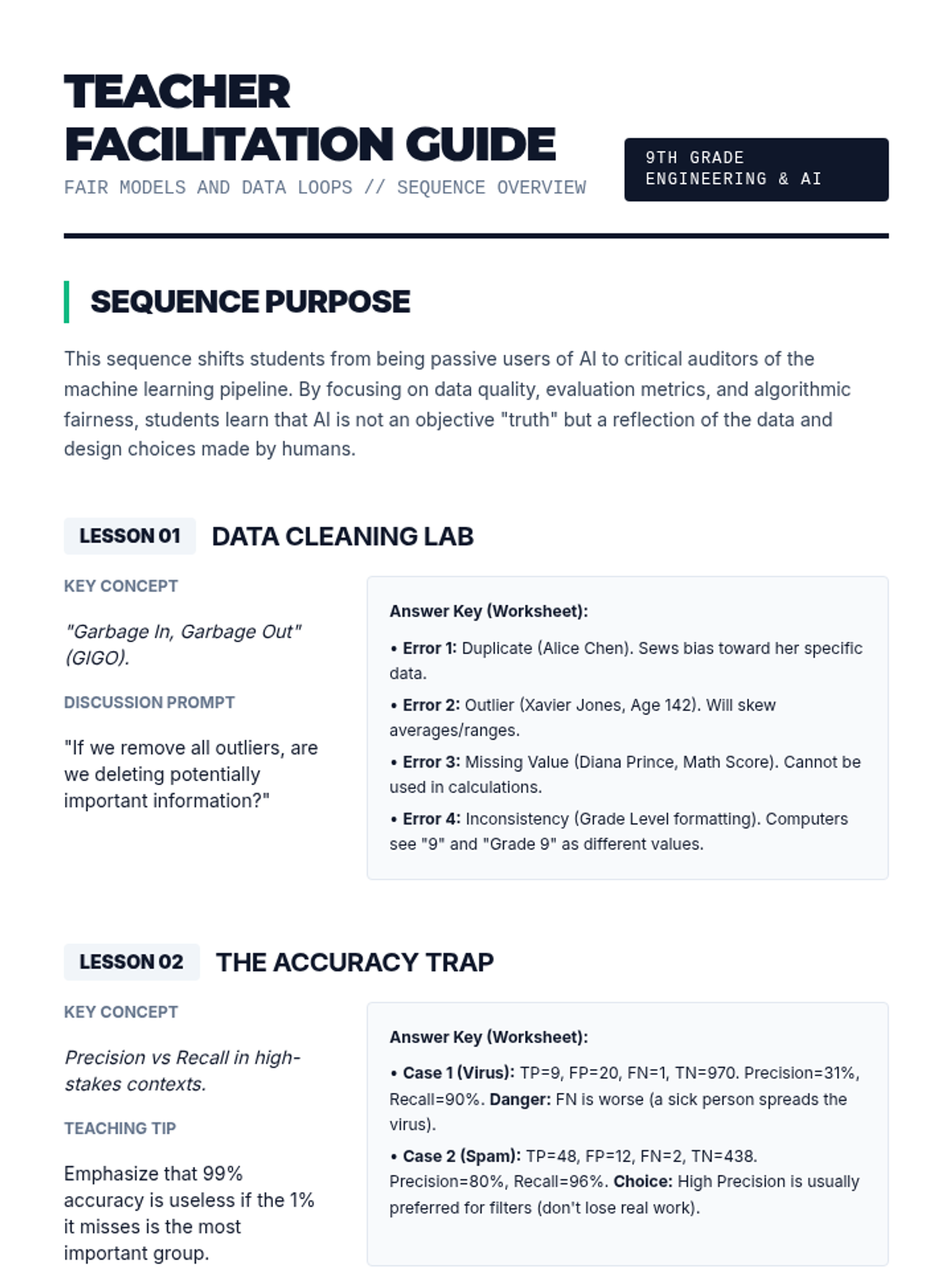 This sequence explores the 'hidden' half of machine learning: how we prepare data, evaluate performance beyond simple accuracy, and ensure that AI systems are fair and ethical. Students transition from technical data cleaning to sociotechnical auditing, preparing them to be critical developers in the AI era.