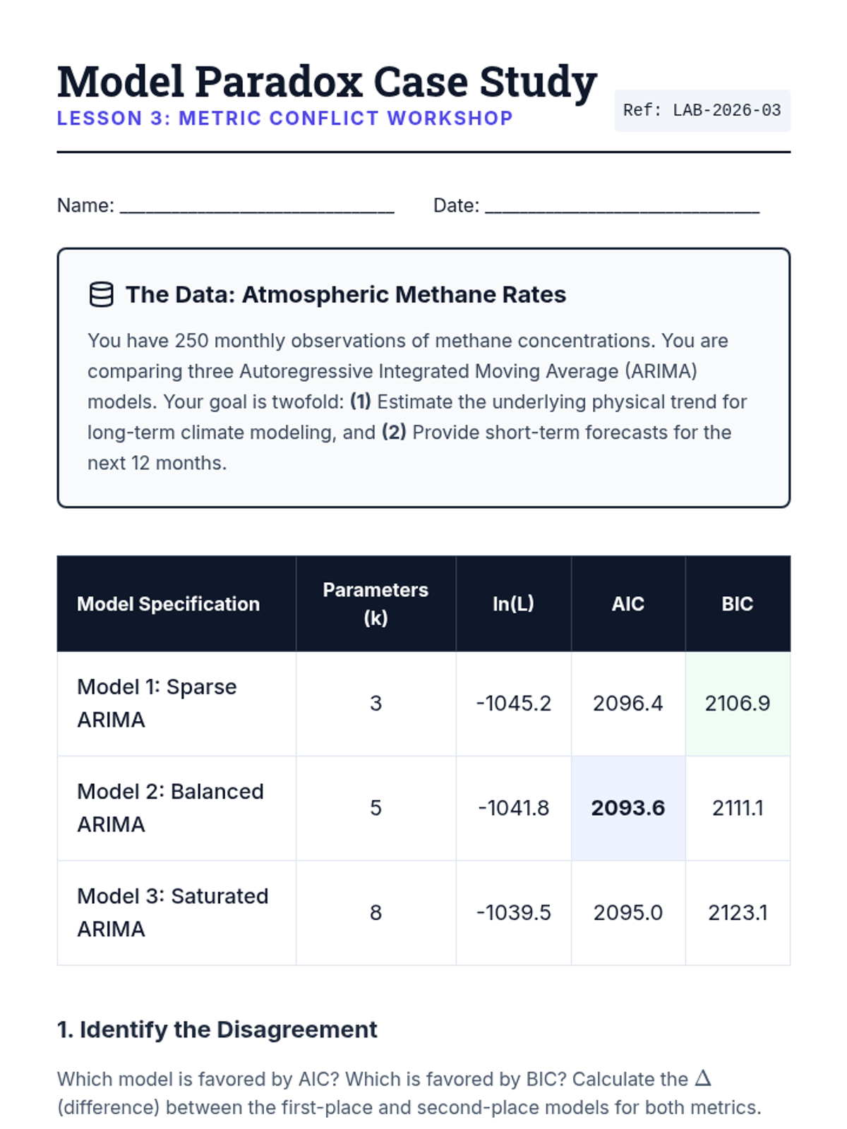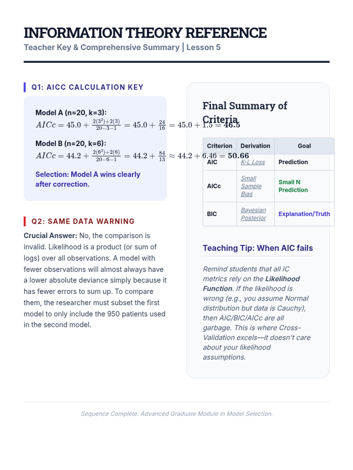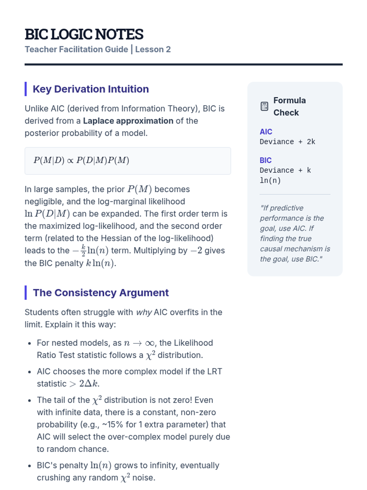 A graduate-level exploration of probabilistic model selection, focusing on AIC and BIC, their information-theoretic foundations, and practical application in statistical modeling.