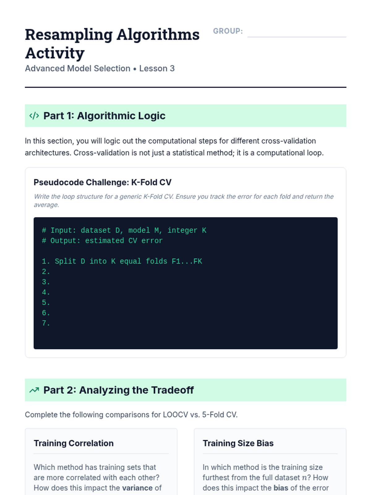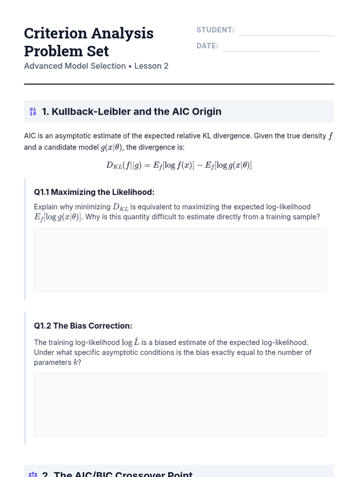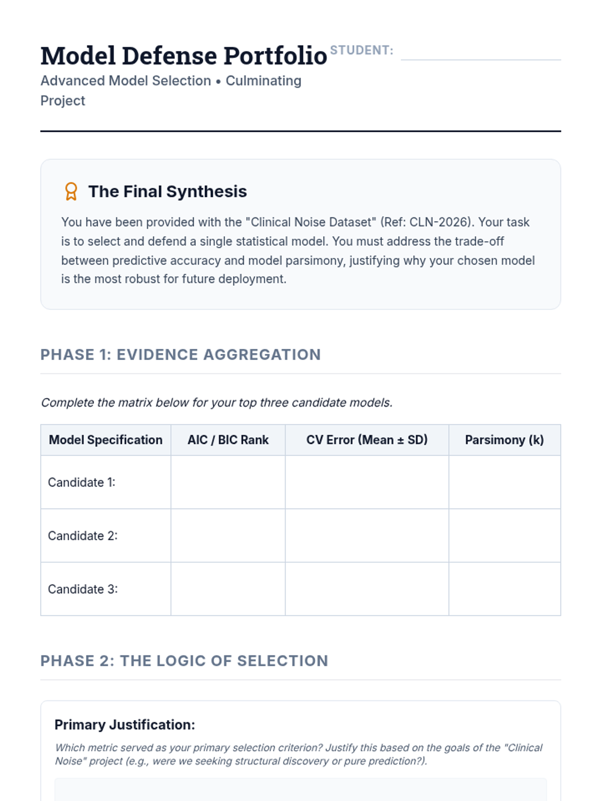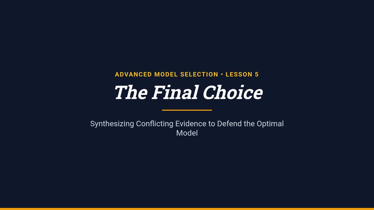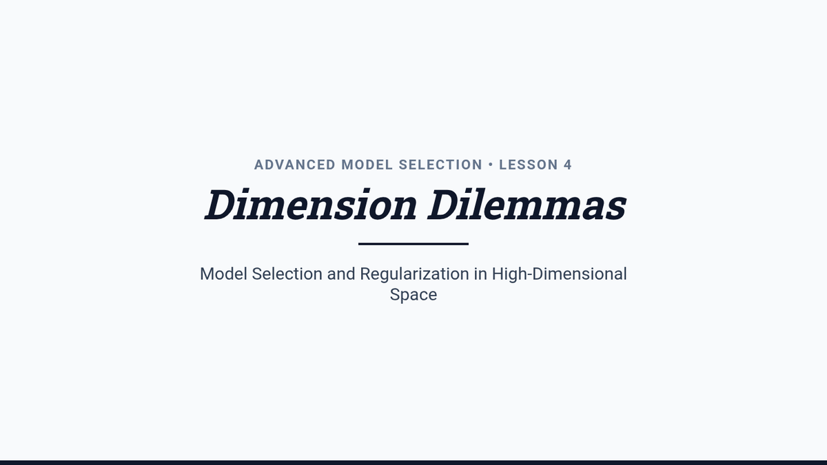 An advanced graduate-level sequence exploring the mathematical foundations of model selection, including bias-variance decomposition, information criteria (AIC/BIC), resampling methods, and high-dimensional diagnostic strategies.