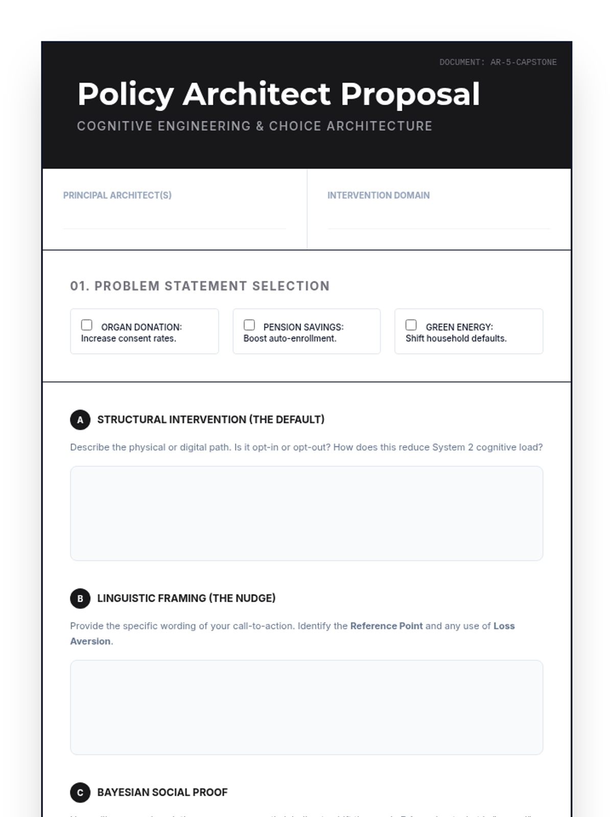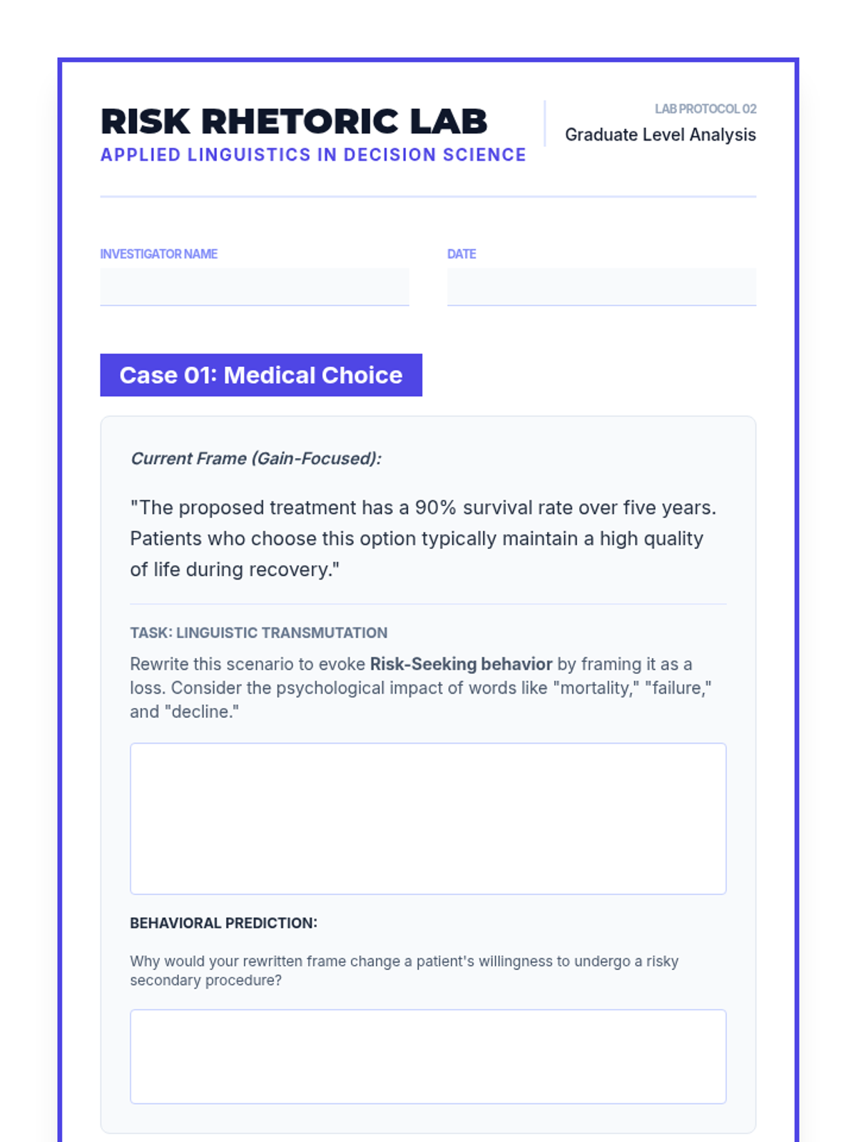 A graduate-level sequence exploring cognitive psychology, decision-making, and the linguistic structures that shape human thought. Students investigate Dual-Process Theory, Prospect Theory, and Bayesian models to understand the gap between normative rationality and human heuristics.