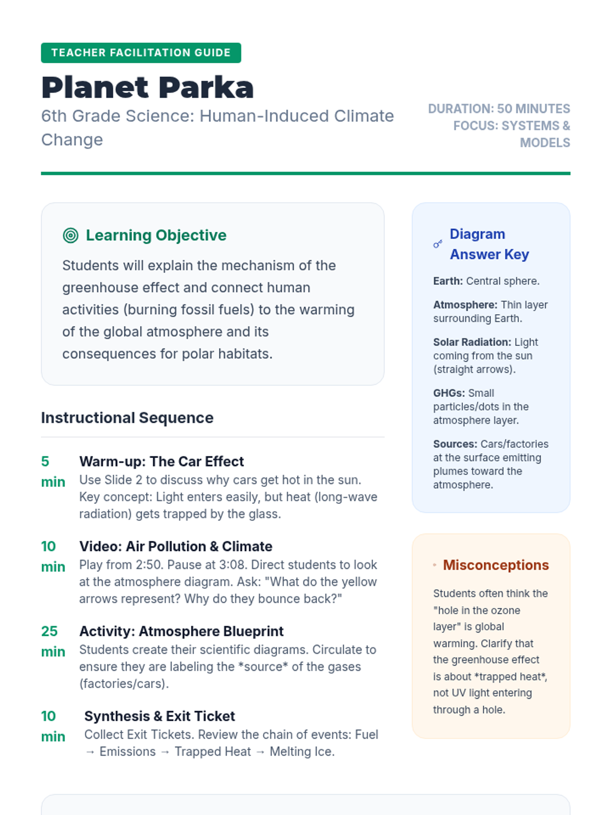 A lesson sequence exploring the greenhouse effect and human impact on climate change for 6th-grade students. This sequence focuses on the mechanics of heat trapping, the role of fossil fuels, and the consequences for the Arctic.
