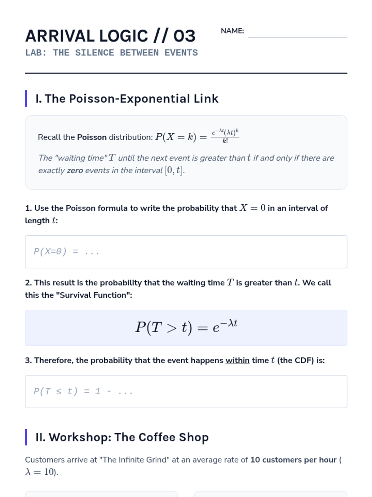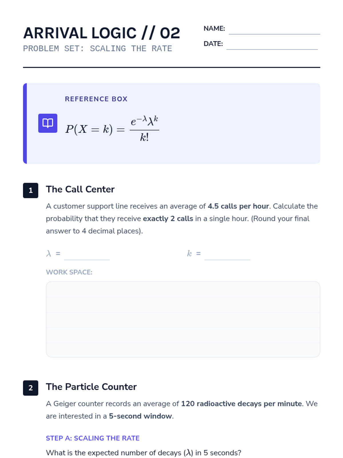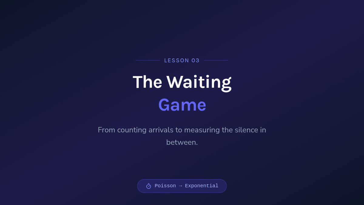 A 12th-grade statistics sequence exploring Poisson processes, transitioning from discrete counts to continuous time intervals and waiting times. Students will investigate arrival rates, the exponential distribution, and the unique memoryless property through inquiry and simulation.