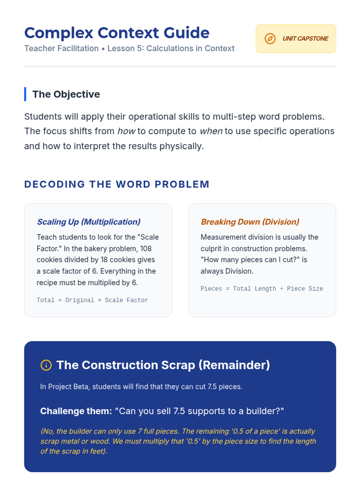 A four-day intensive unit on decomposing rectilinear figures to find total area, progressing from basic strategies to complex real-world architectural challenges. Students act as 'Blueprint Builders' to master vertical cuts, horizontal cuts, and additive/subtractive methods.