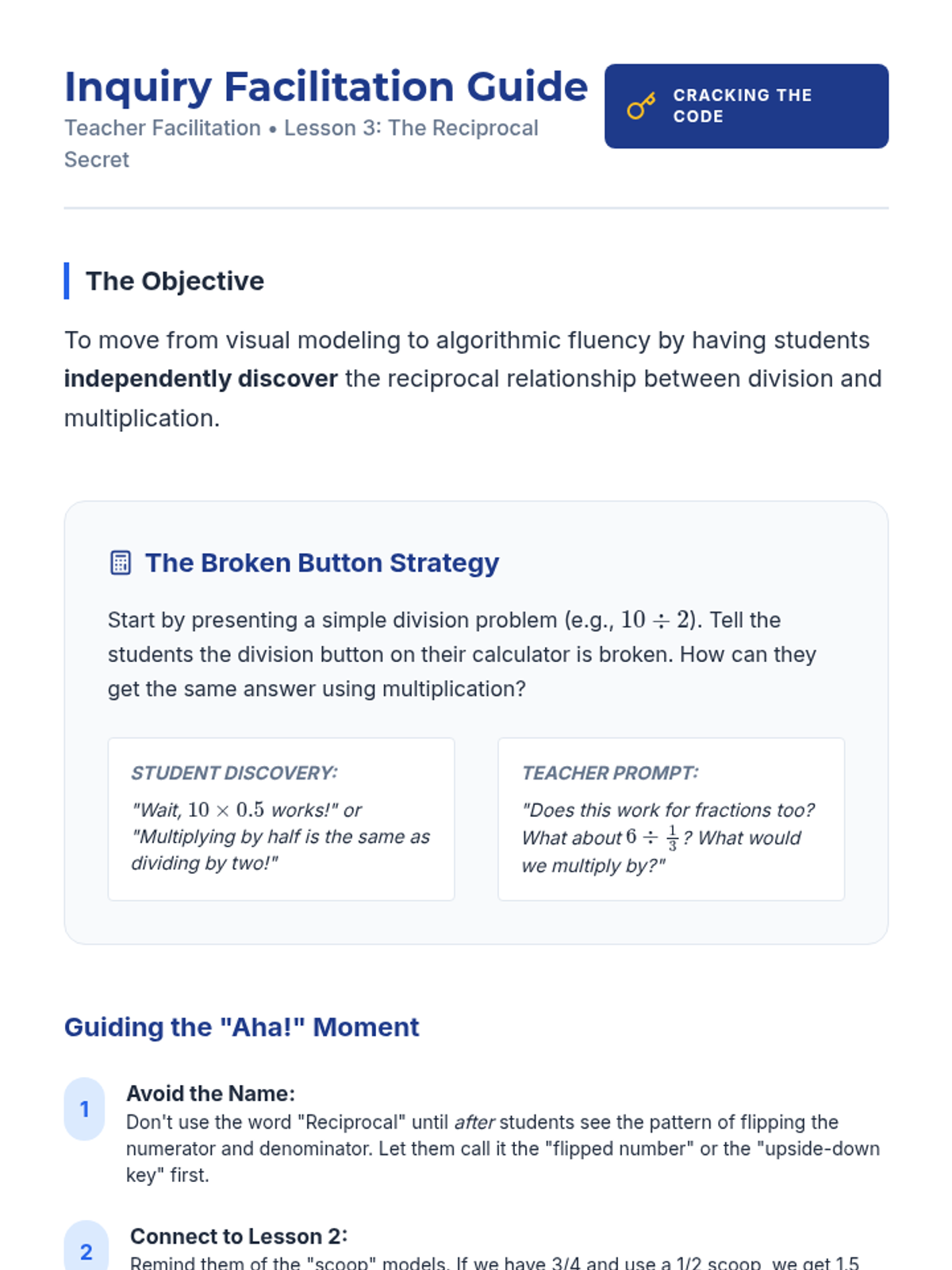 A comprehensive unit bridging concrete area models and abstract algorithms for multiplying and dividing fractions. Students move from 'taking a part of a part' to mastering reciprocals and mixed number operations in real-world contexts.