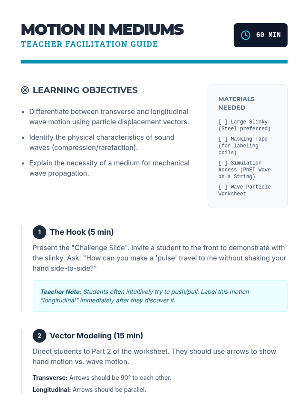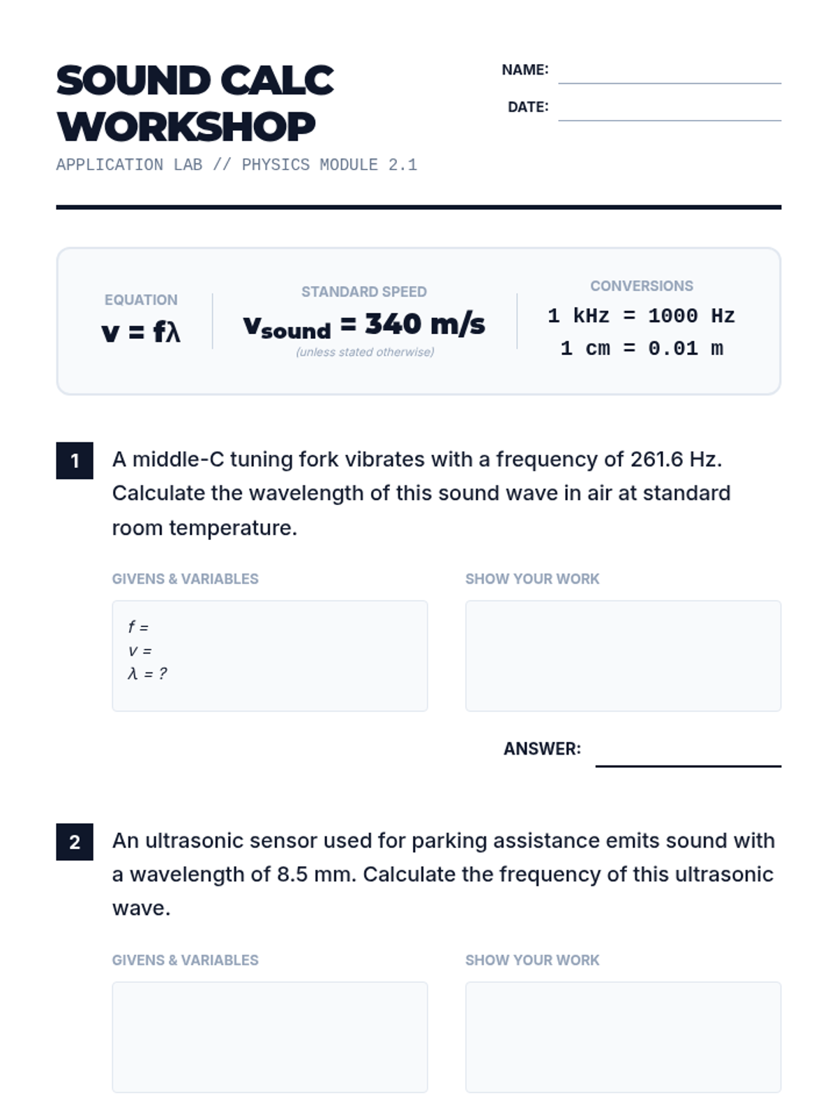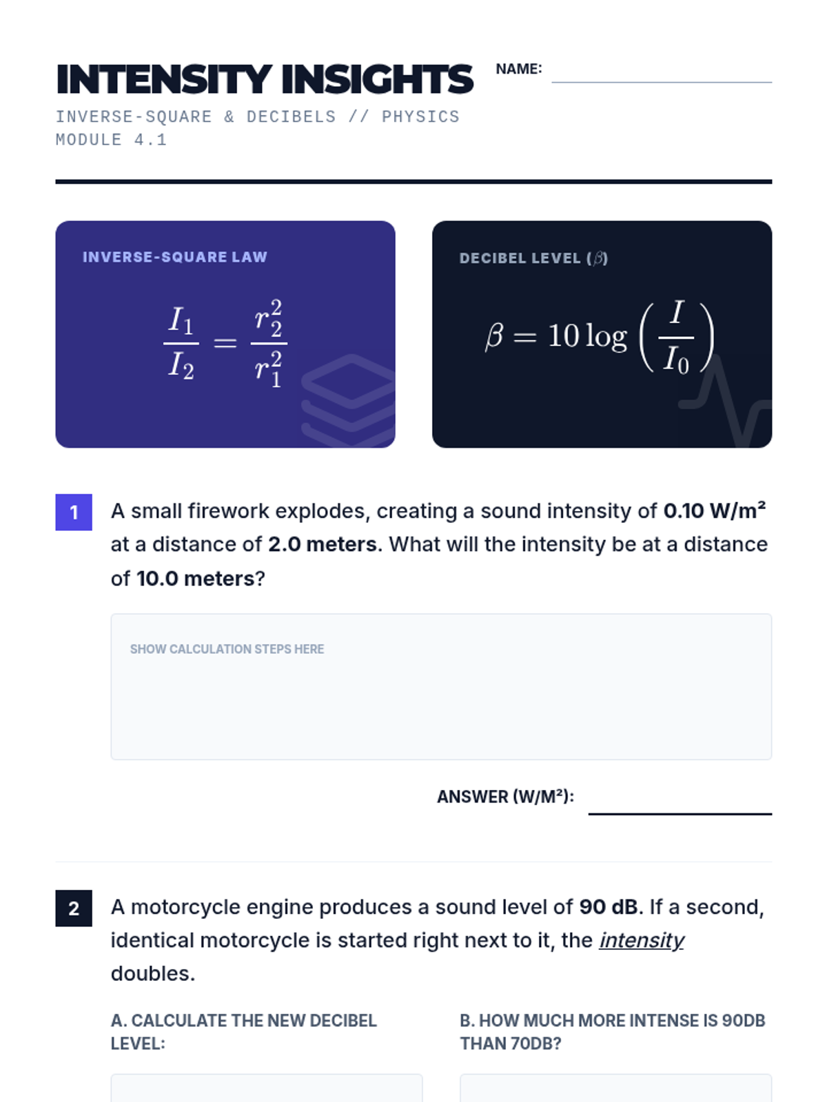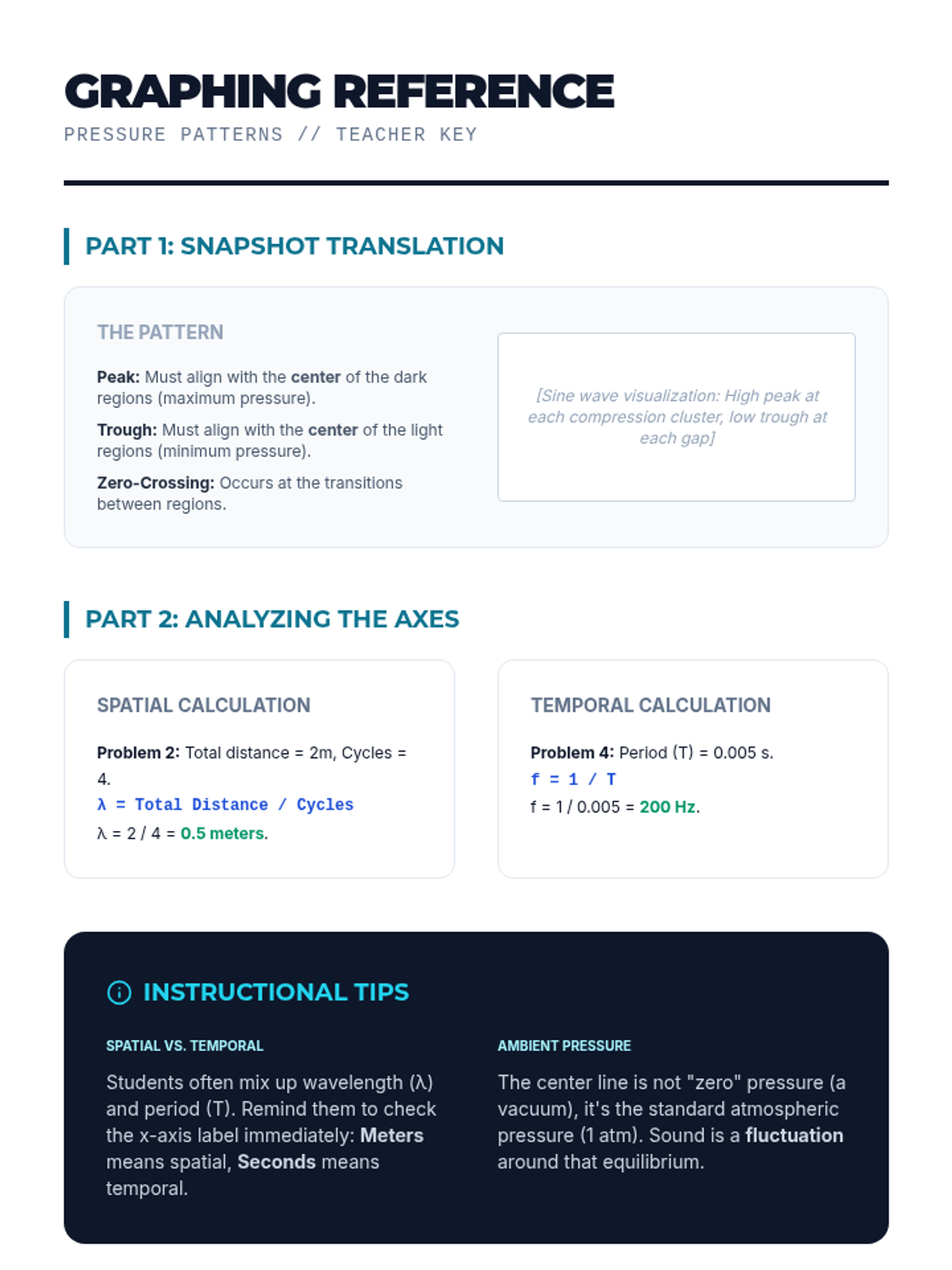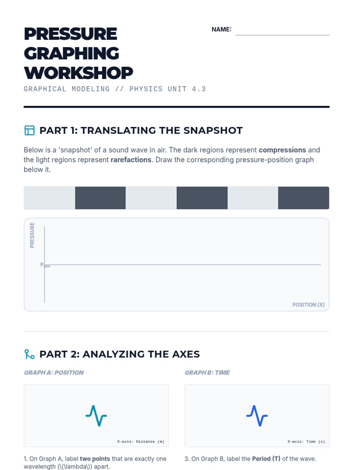 A comprehensive 11th-grade physics sequence focused on the mathematical and physical modeling of sound as a longitudinal wave. Students explore wave types, the wave equation, pressure graphing, and intensity scales.