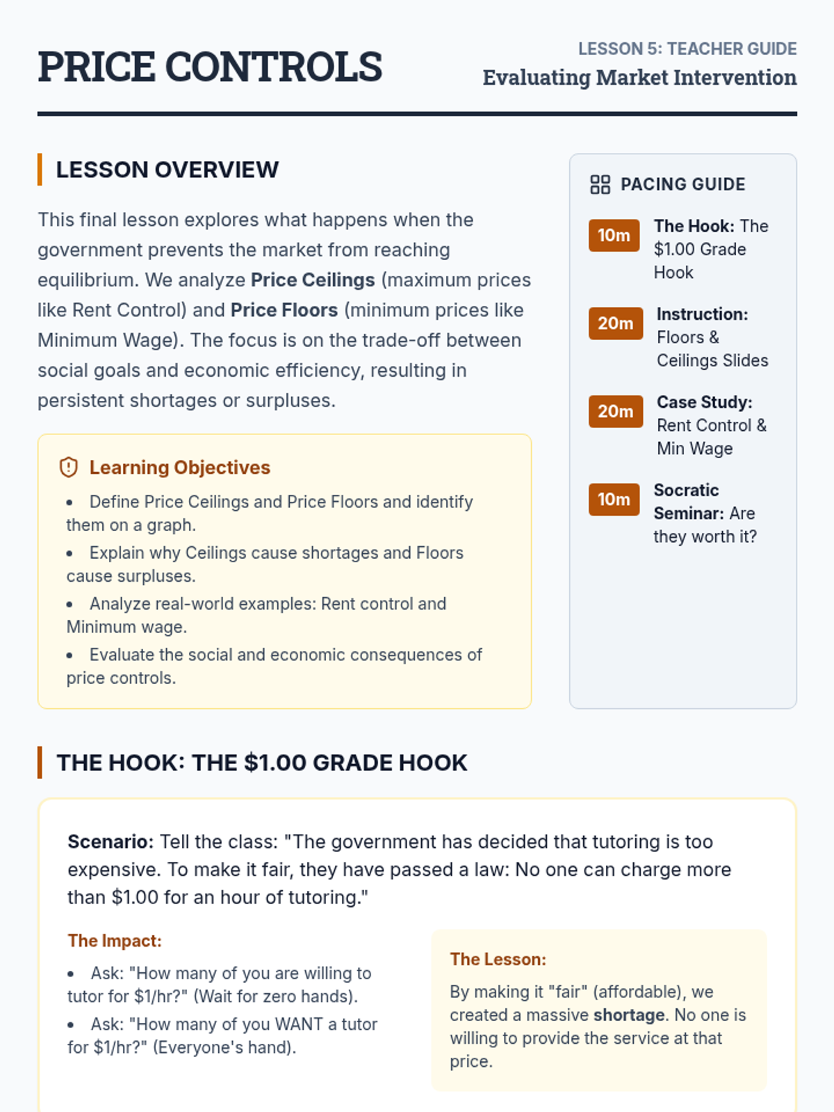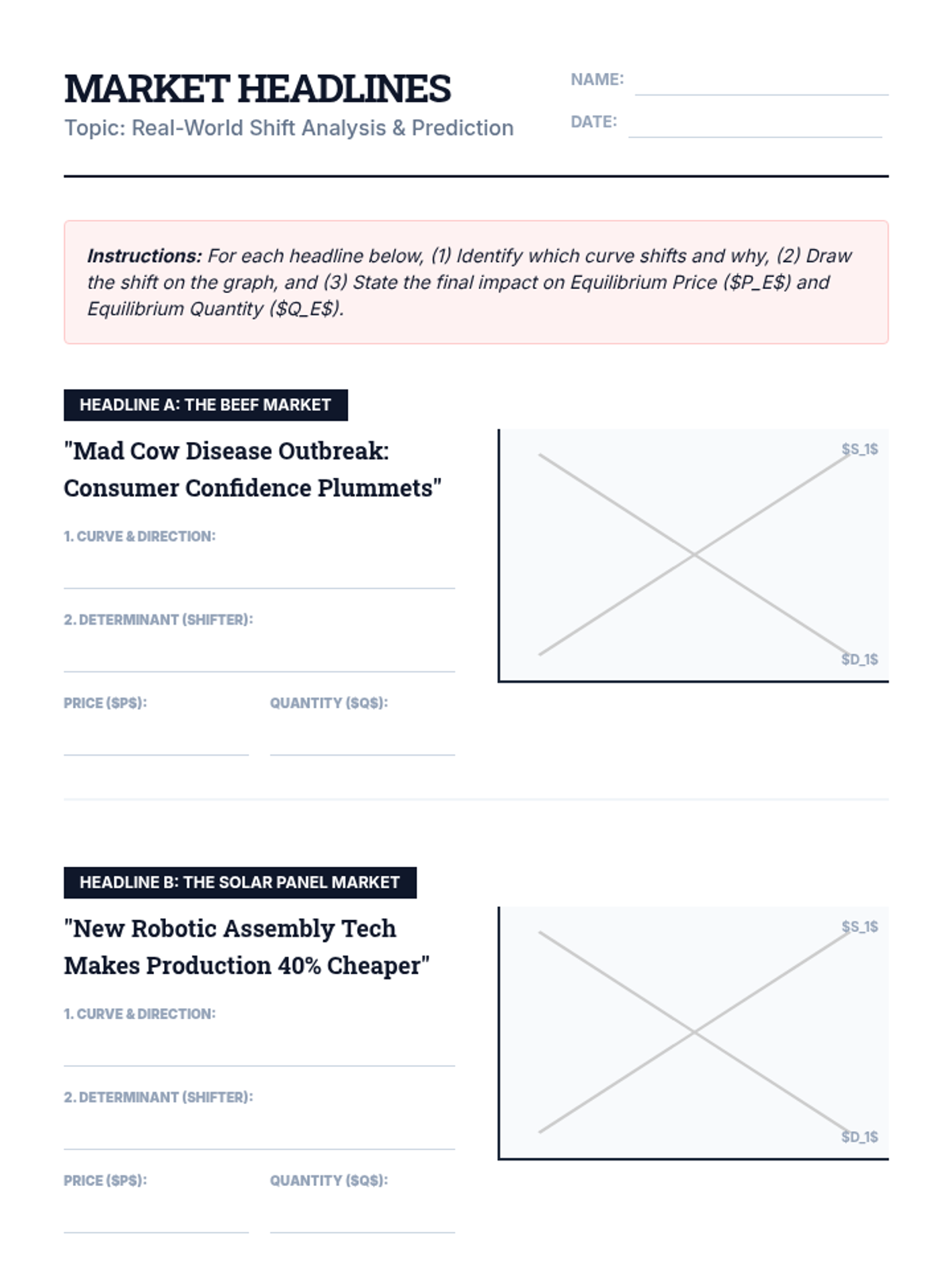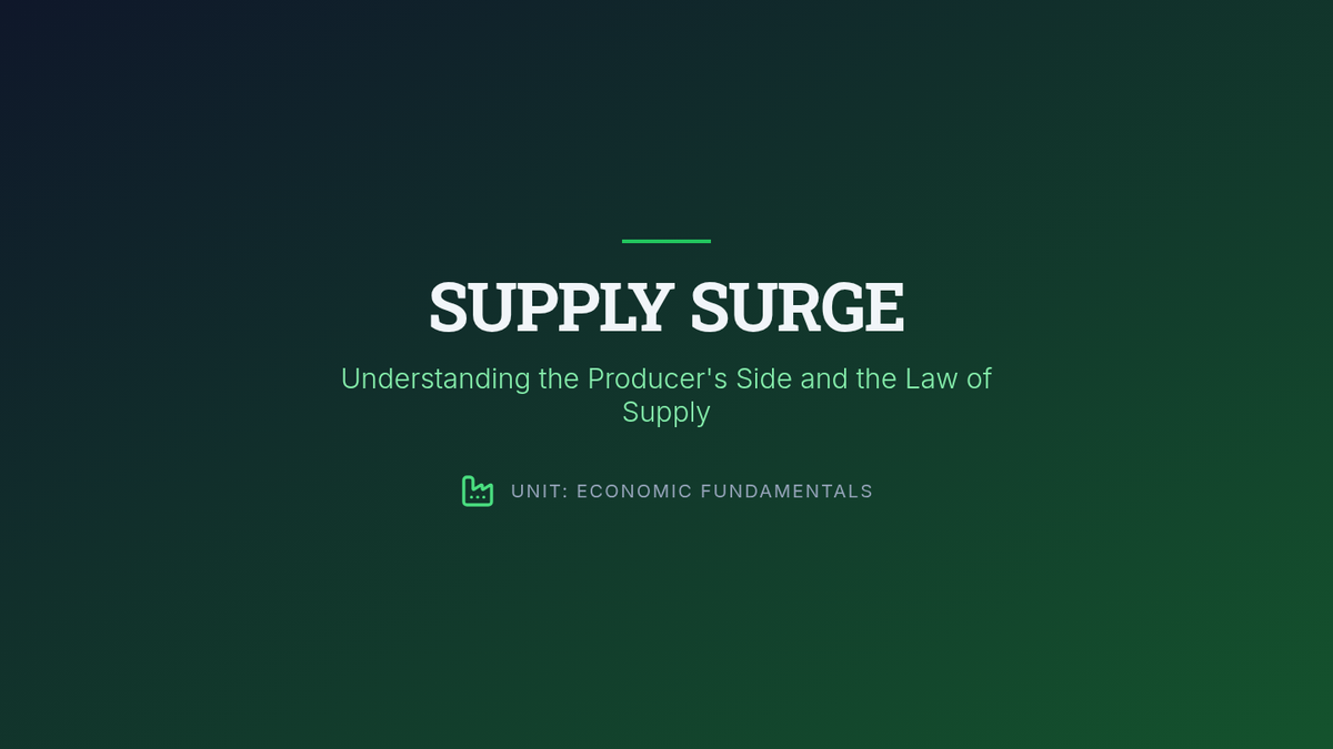 A comprehensive unit on the mechanics of supply and demand, focusing on graphing, equilibrium, and the impact of market interventions. Students will learn to predict price and quantity changes through visual analysis and real-world scenarios.