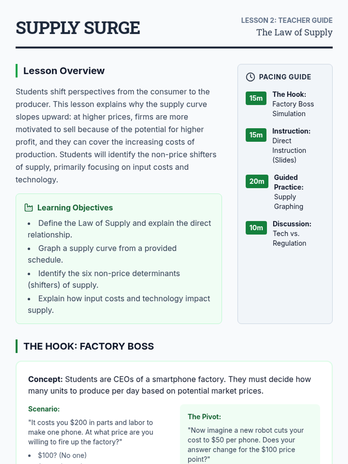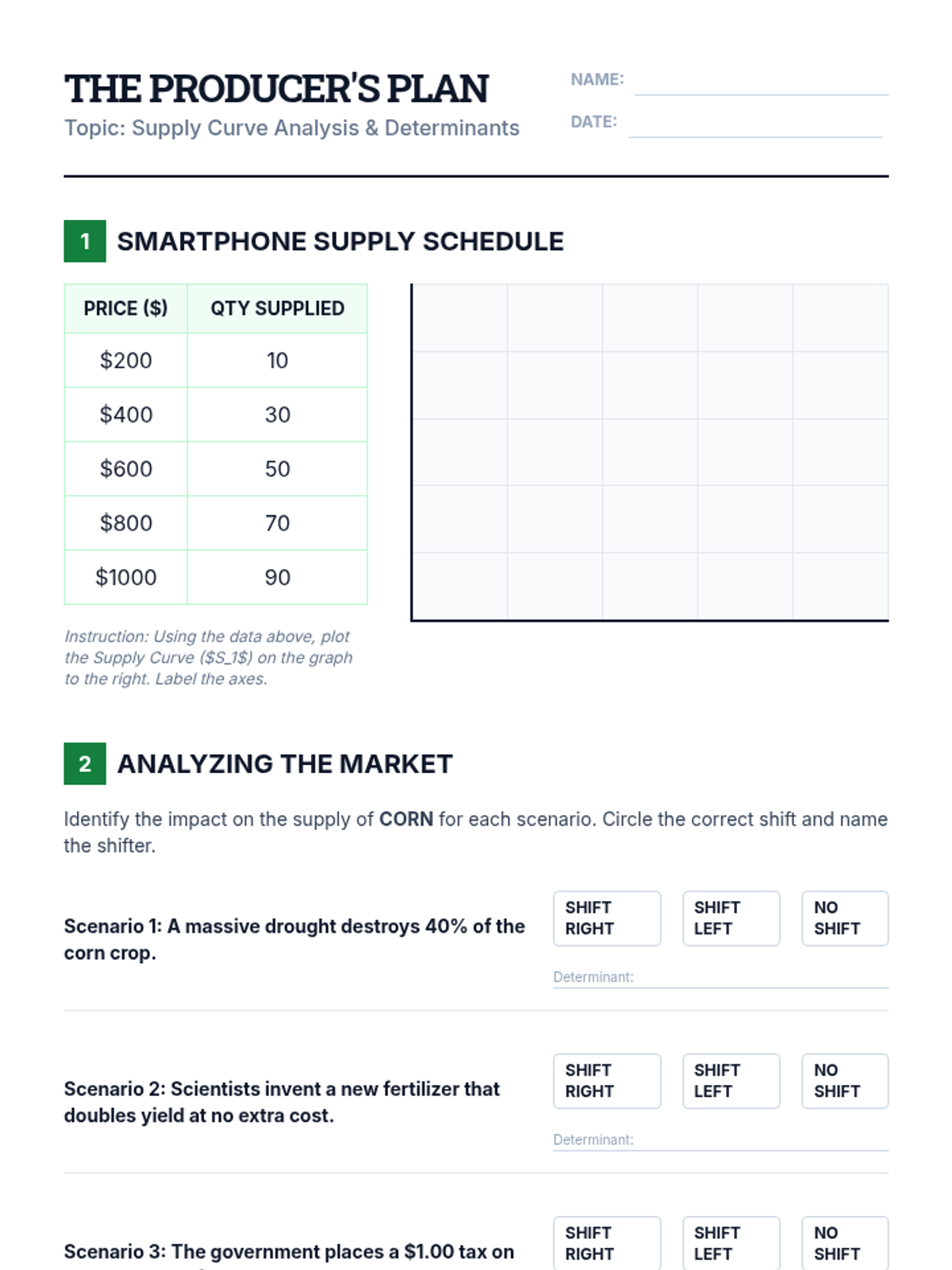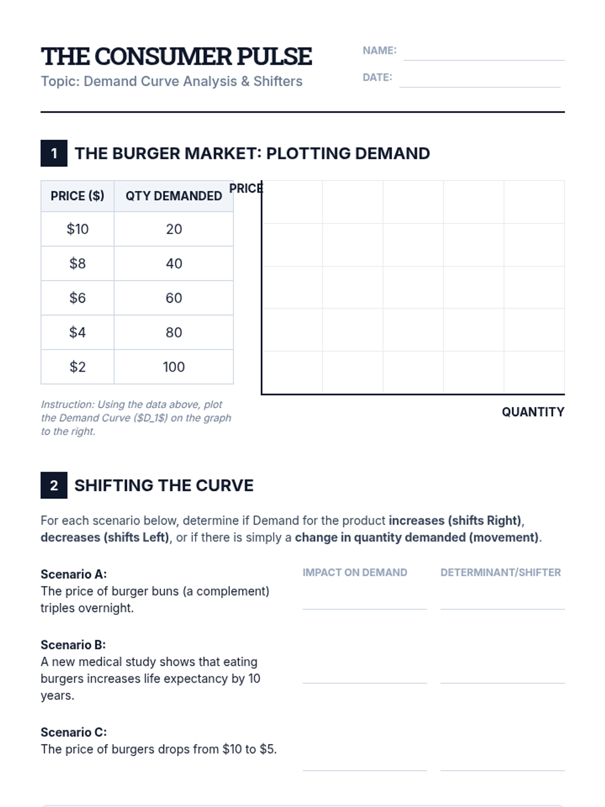 A comprehensive unit on the mechanics of supply and demand, focusing on graphing, equilibrium, and the impact of market interventions. Students will learn to predict price and quantity changes through visual analysis and real-world scenarios.