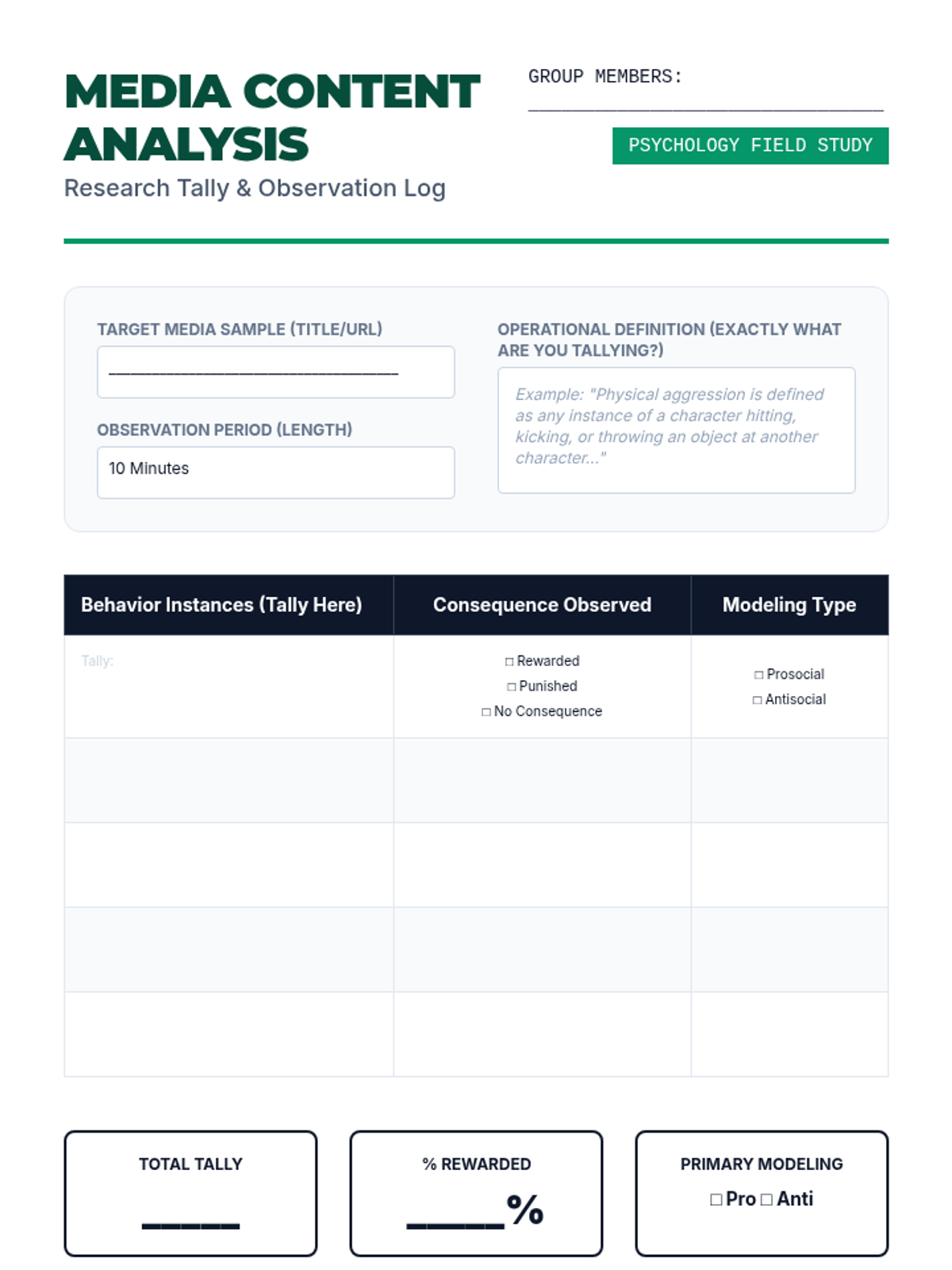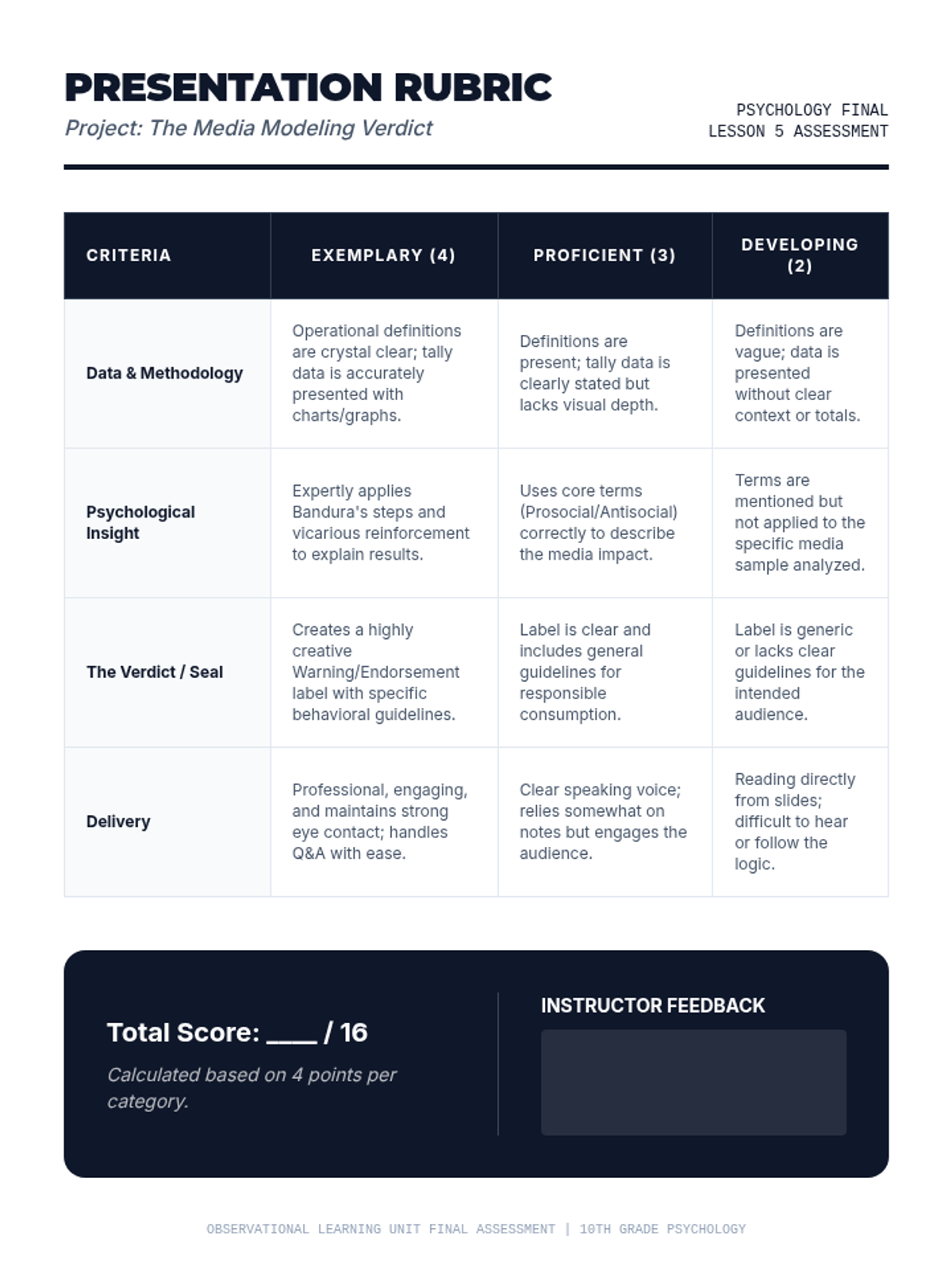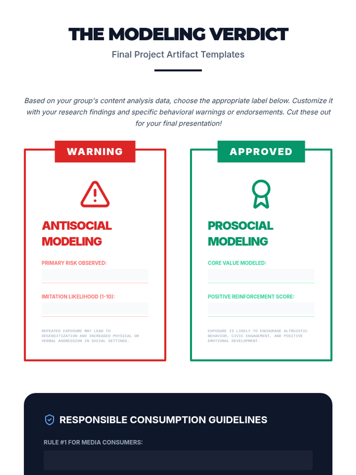 A project-based sequence where students investigate the 'Prosocial' and 'Antisocial' effects of observational learning in contemporary media, culminating in a content analysis presentation.