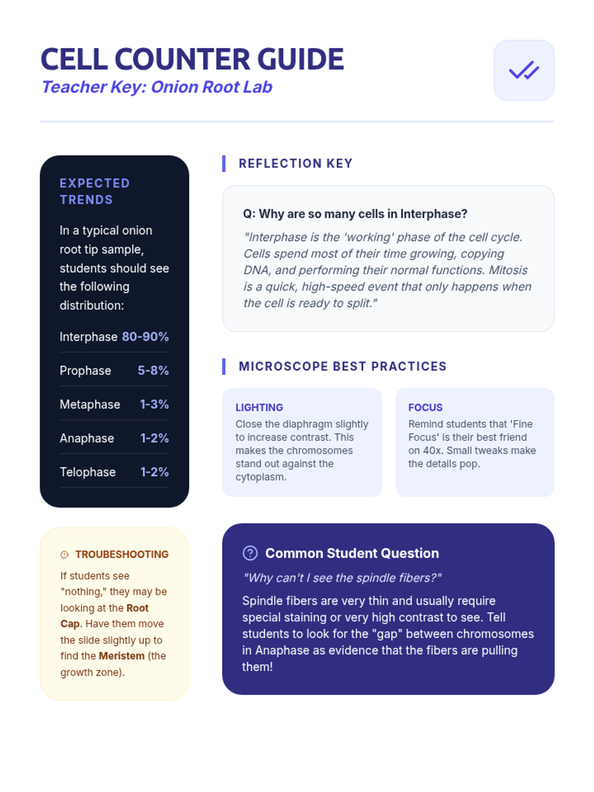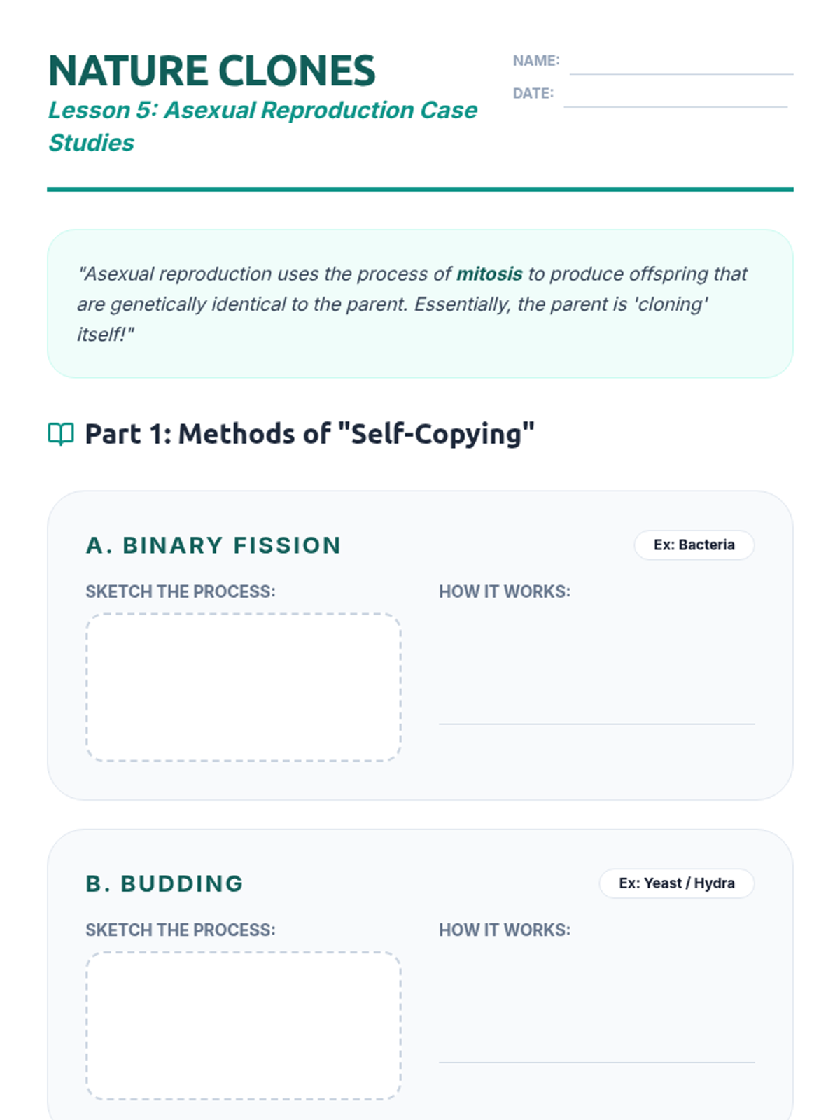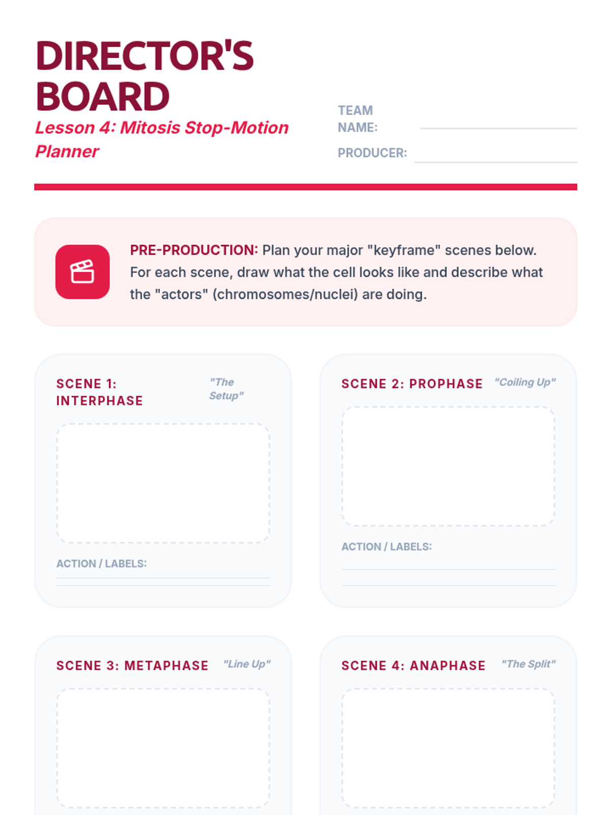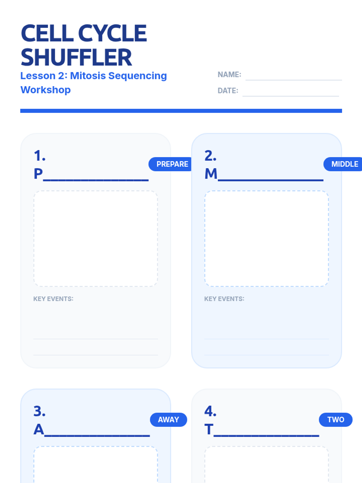 This sequence explores the mechanics of mitosis and asexual reproduction through modeling, lab observations, and digital storytelling. Students learn how cells package DNA and divide into identical daughter cells, ensuring genetic continuity across generations.
