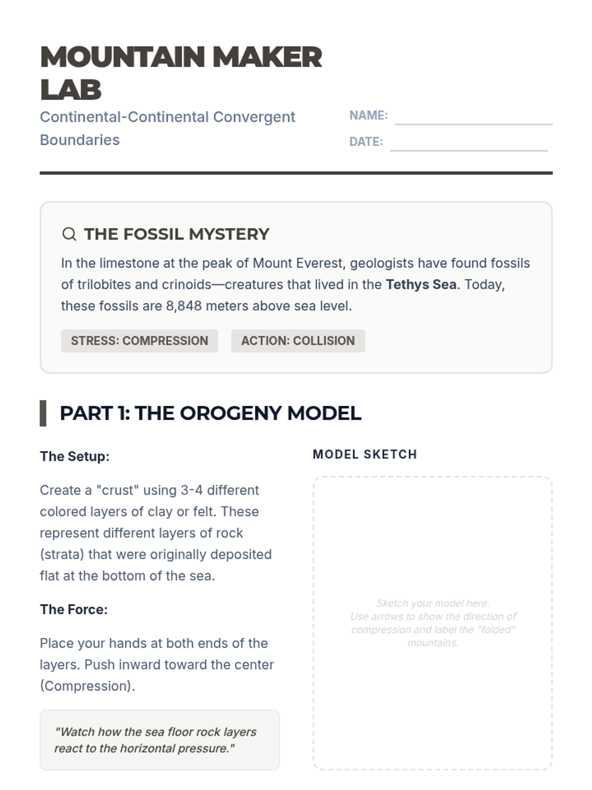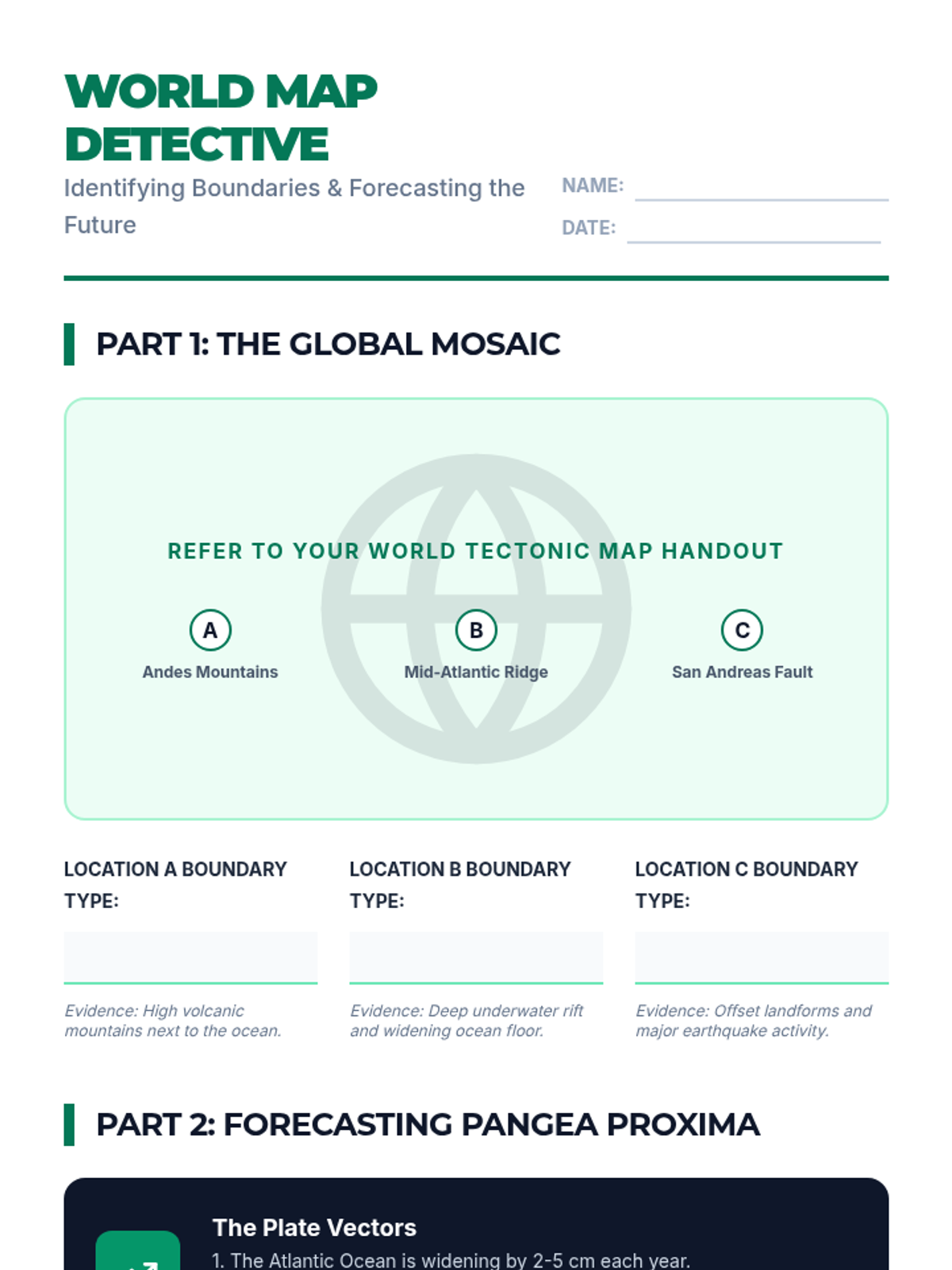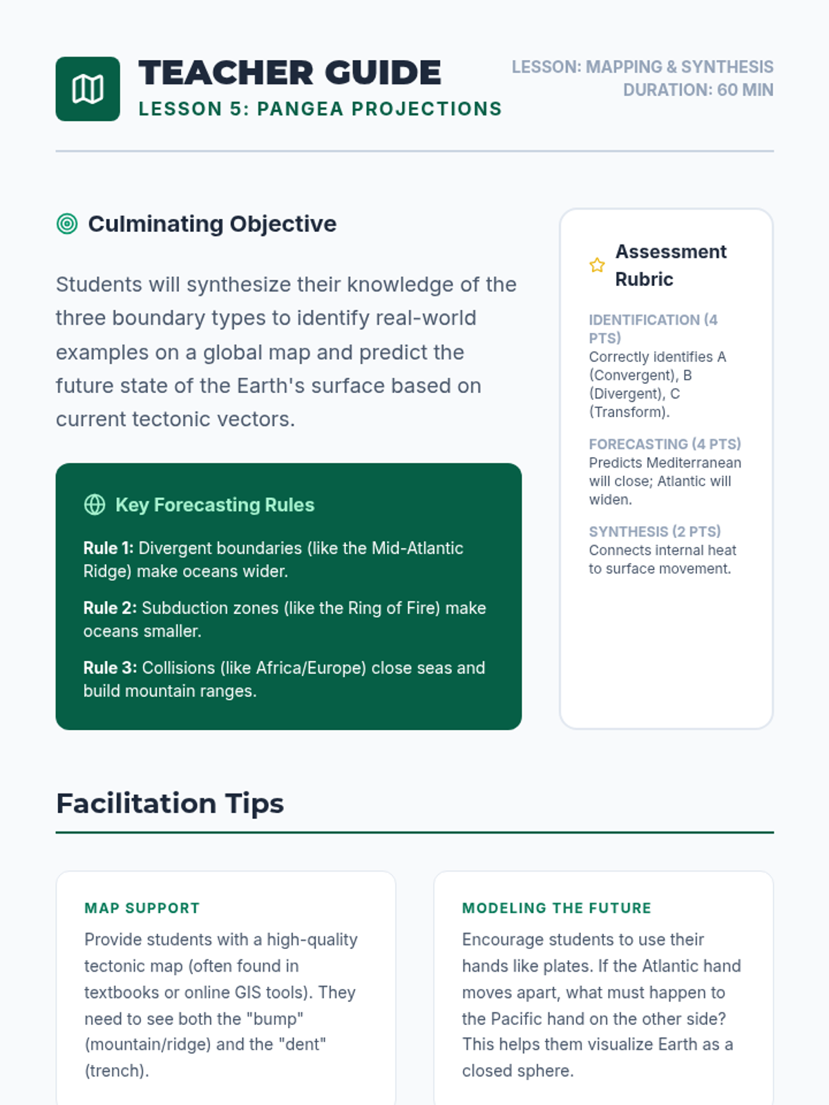 A hands-on workshop sequence where students model the three main types of plate boundaries to understand the forces and landforms that shape our planet's surface. Students progress from specific boundary simulations to global mapping and future geological forecasting.