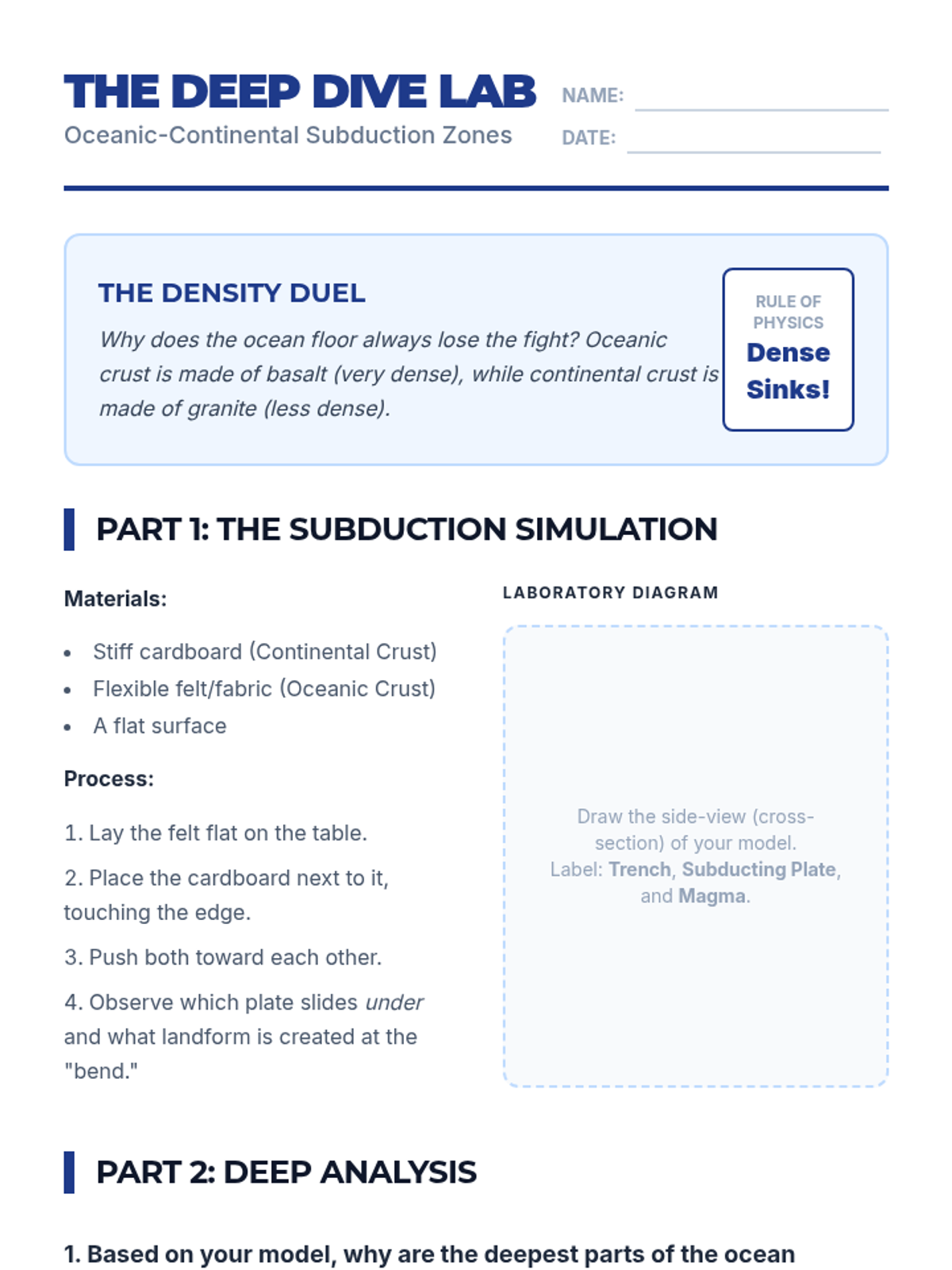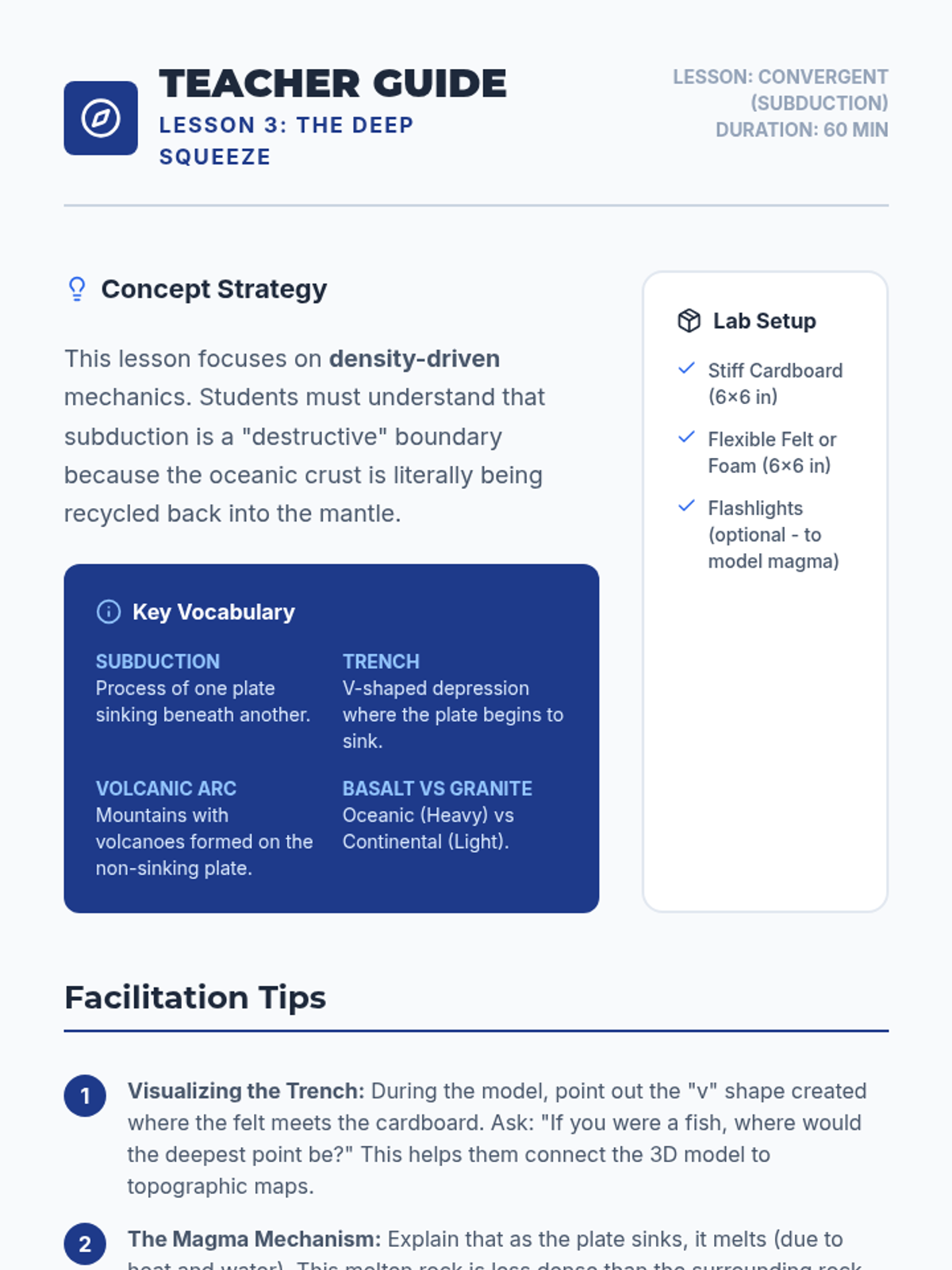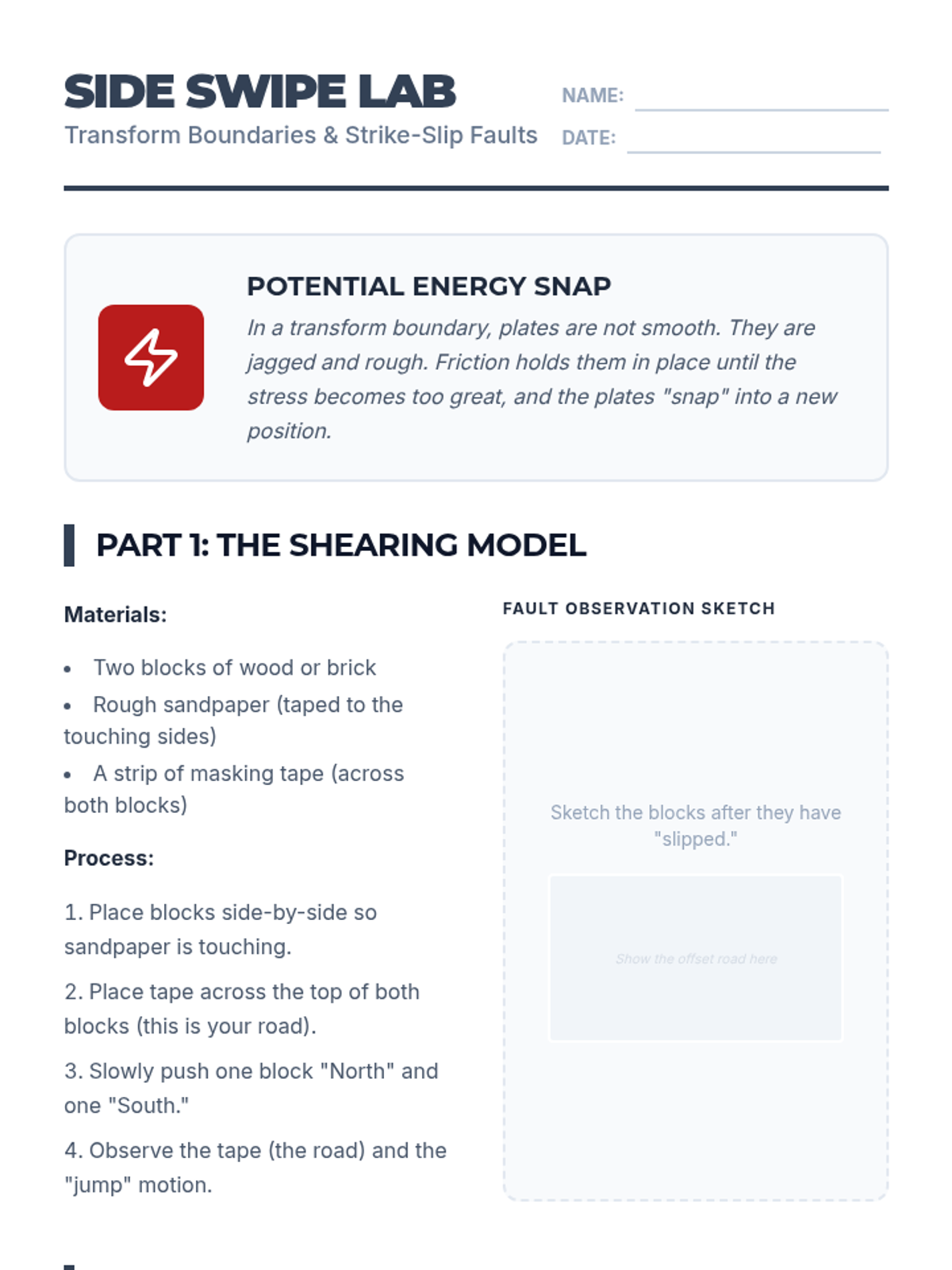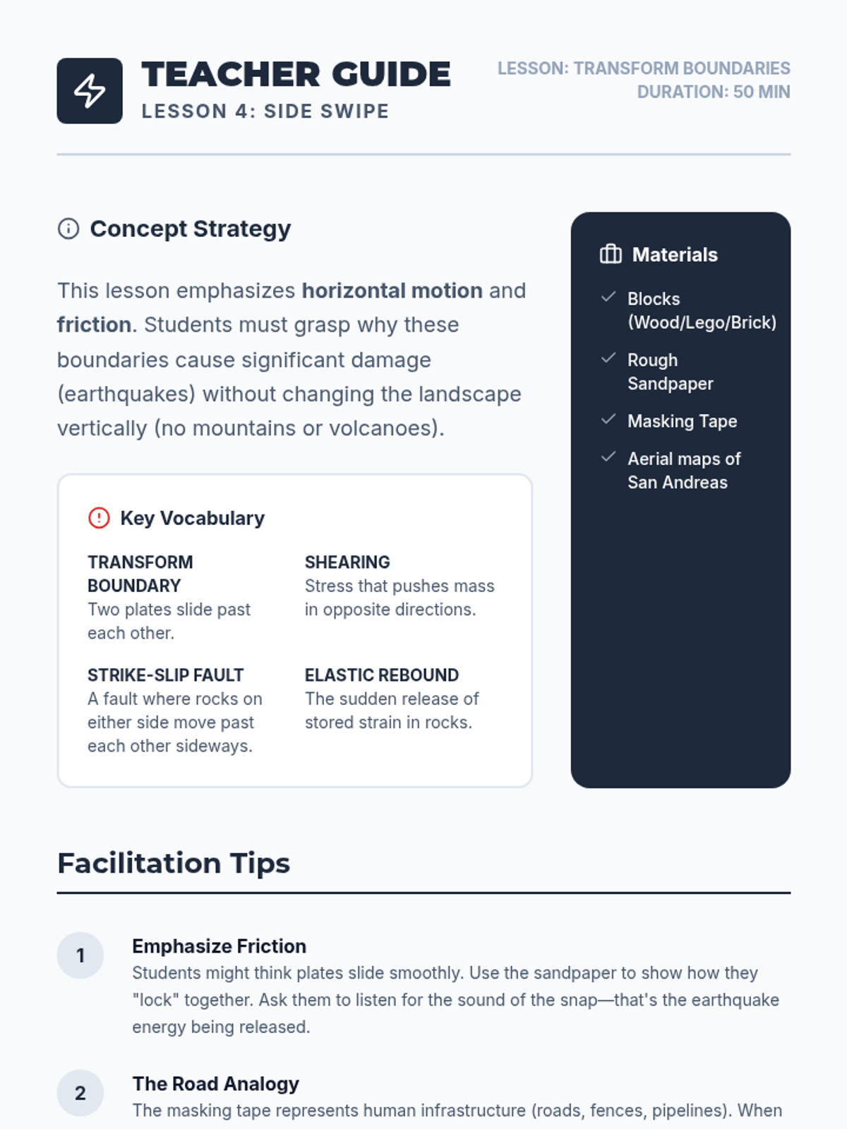 A hands-on workshop sequence where students model the three main types of plate boundaries to understand the forces and landforms that shape our planet's surface. Students progress from specific boundary simulations to global mapping and future geological forecasting.