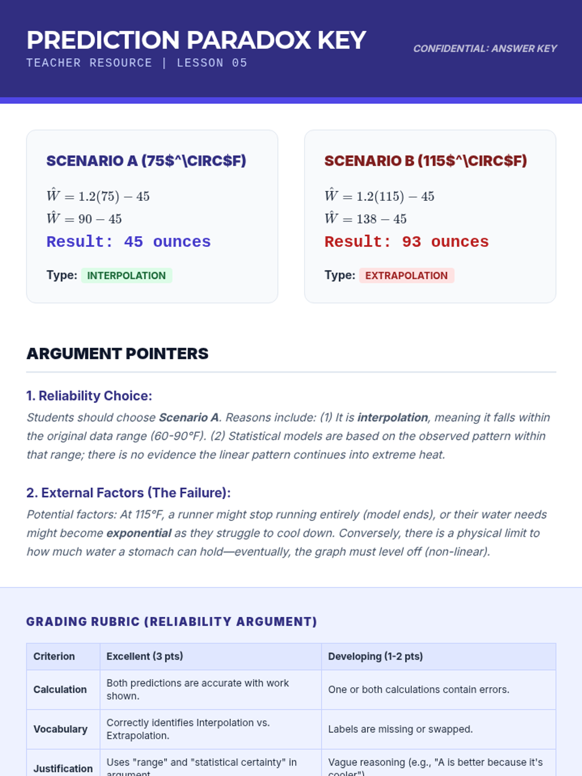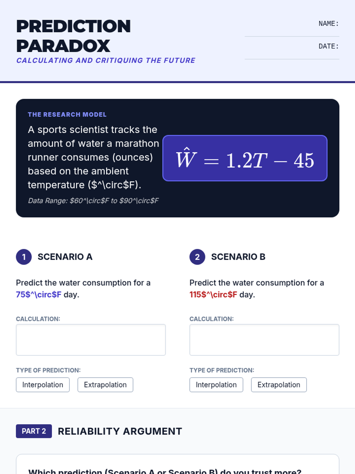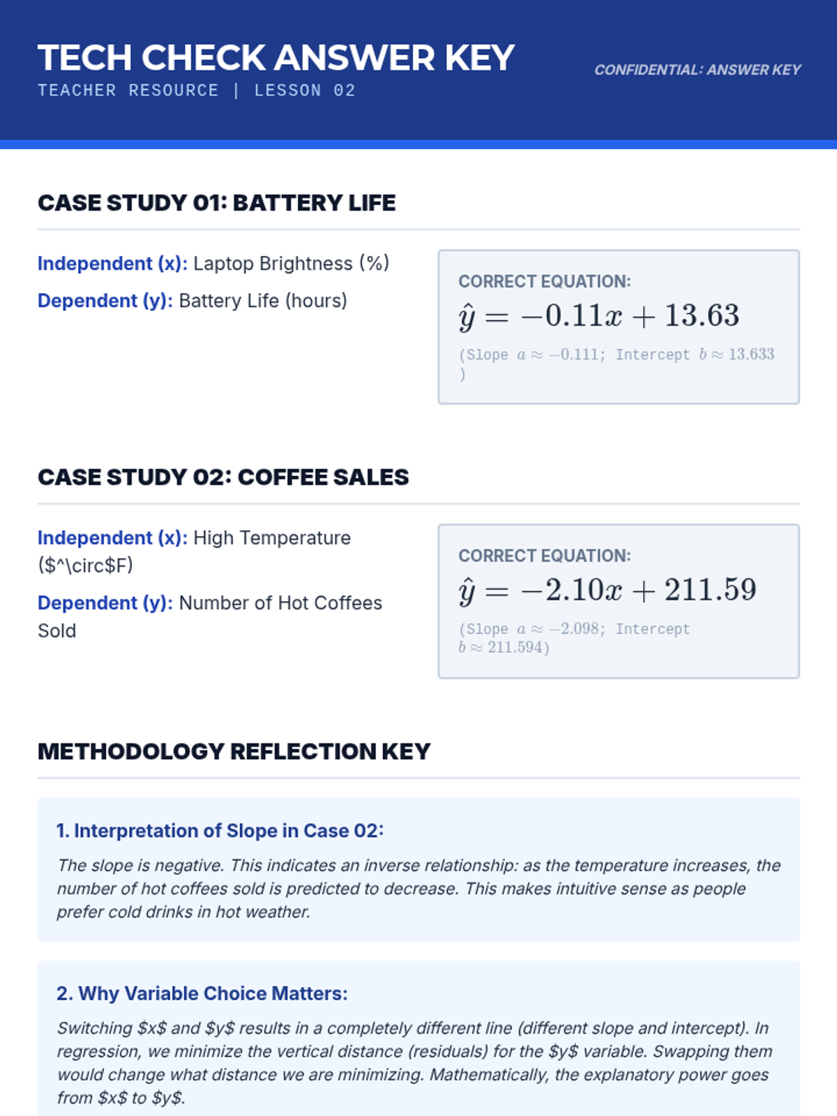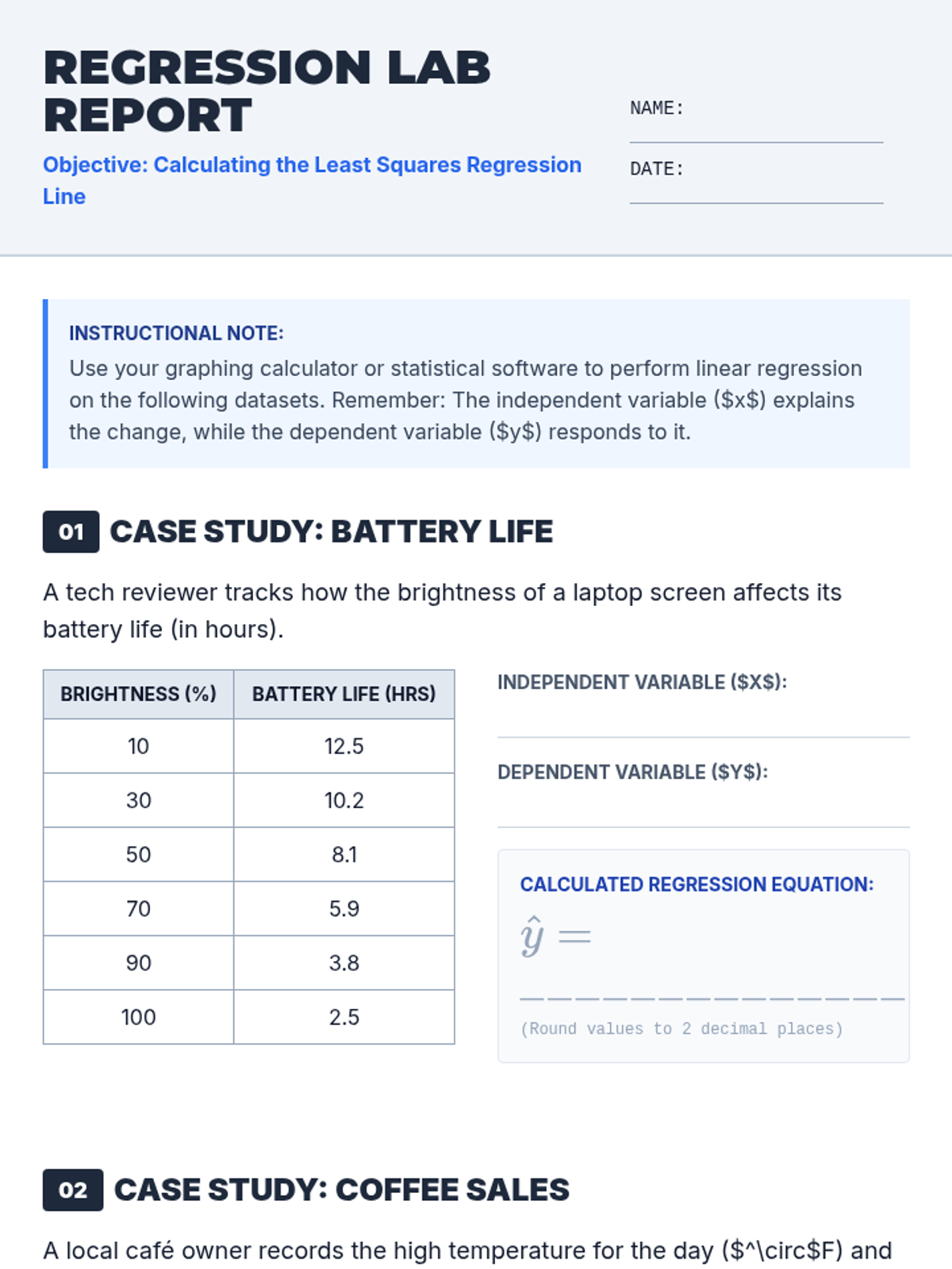 A comprehensive sequence for 11th-grade students on interpreting linear models. Students will progress from visualizing bivariate data to calculating regression lines and rigorously interpreting slope, y-intercepts, and the reliability of predictions.