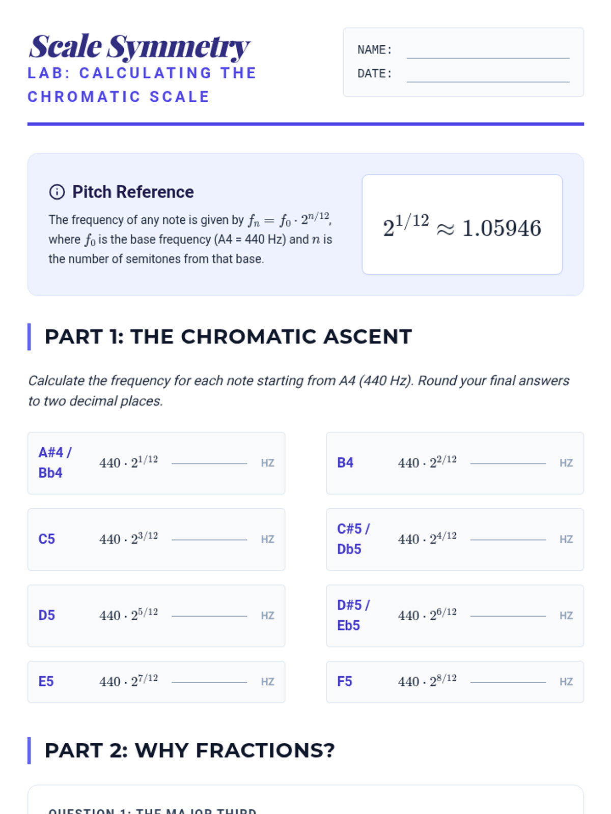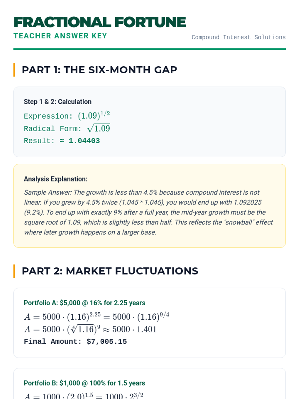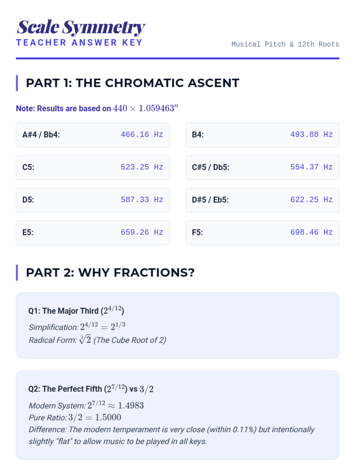 A project-based unit exploring the practical applications of rational exponents in biology, music, finance, and astronomy. Students analyze real-world models and synthesize their understanding through a final modeling project.