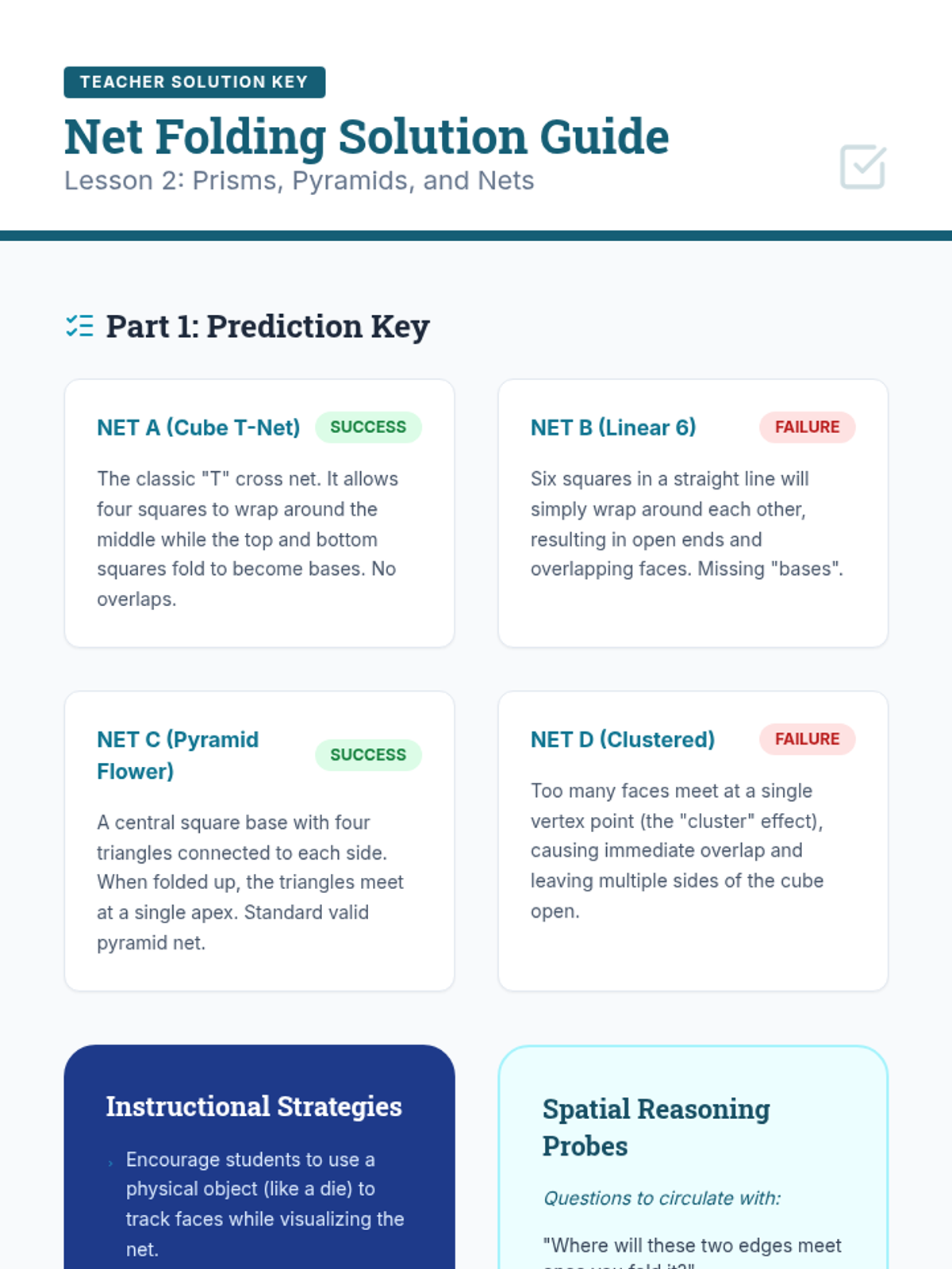 This sequence teaches 10th-grade students with academic support needs how to translate complex geometric text descriptions into accurate, solvable visual representations. It covers geometric vocabulary, 2D blueprints from word problems, 3D nets/transformations, and similarity modeling, culminating in a synthesis project.