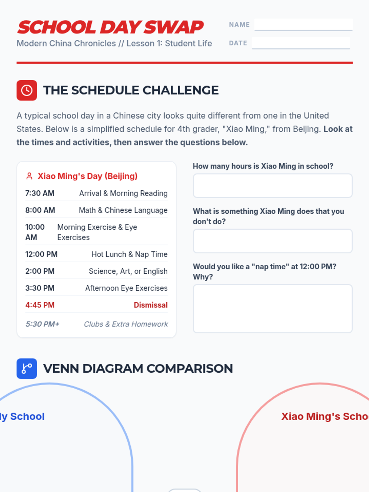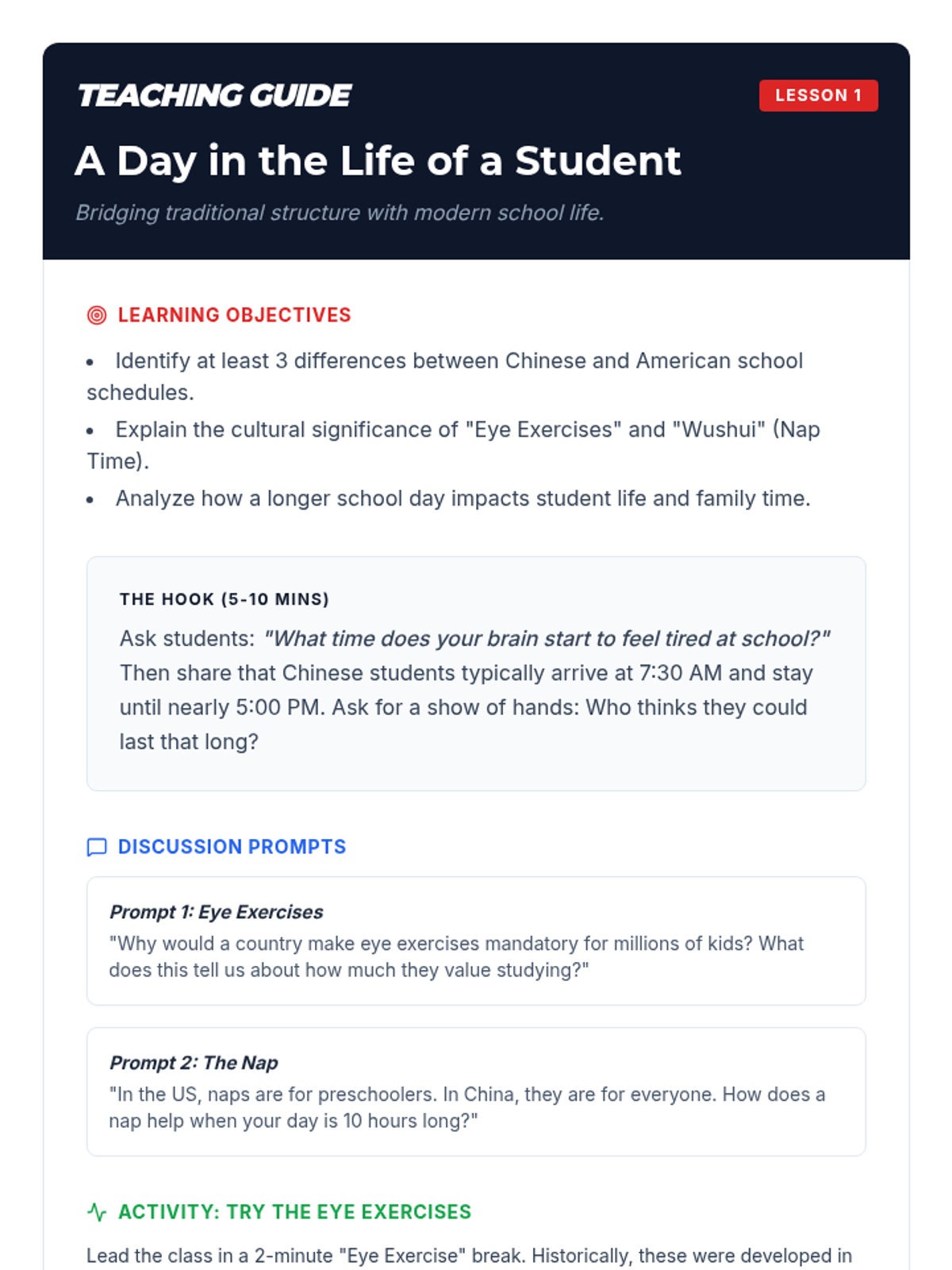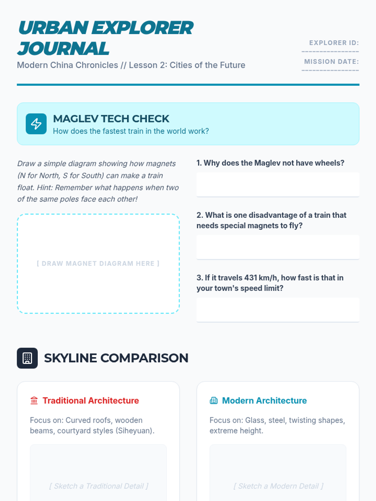 A 5-lesson unit exploring the intersection of ancient traditions and cutting-edge modernity in contemporary China, focusing on student life, urban innovation, pop culture, and conservation.