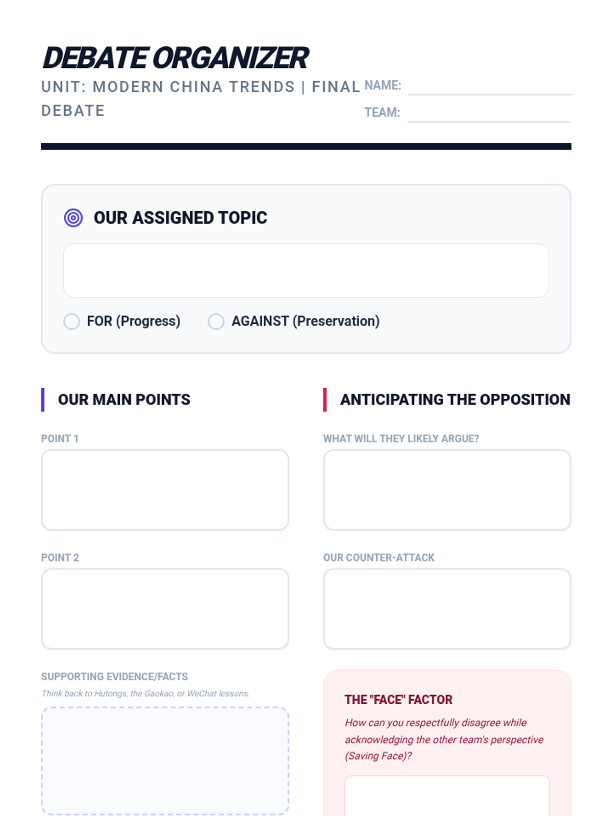 This sequence examines the intersection of traditional values and modern life in contemporary China, exploring how urbanization, technology, and globalization reshape society. Students analyze case studies ranging from city architecture to digital ecosystems and pop culture.