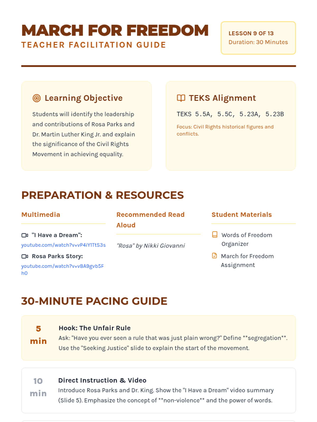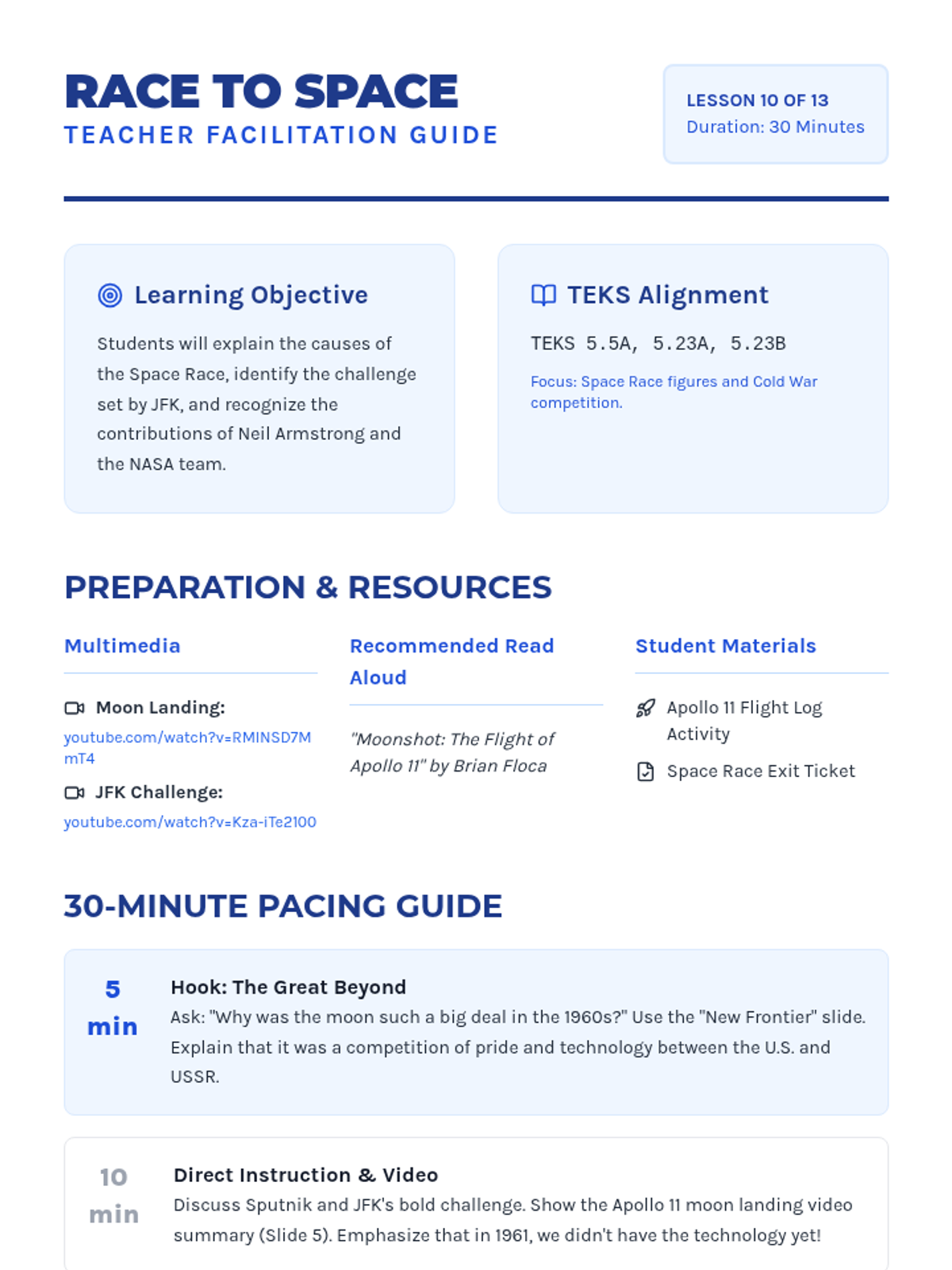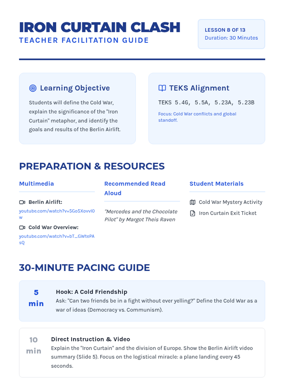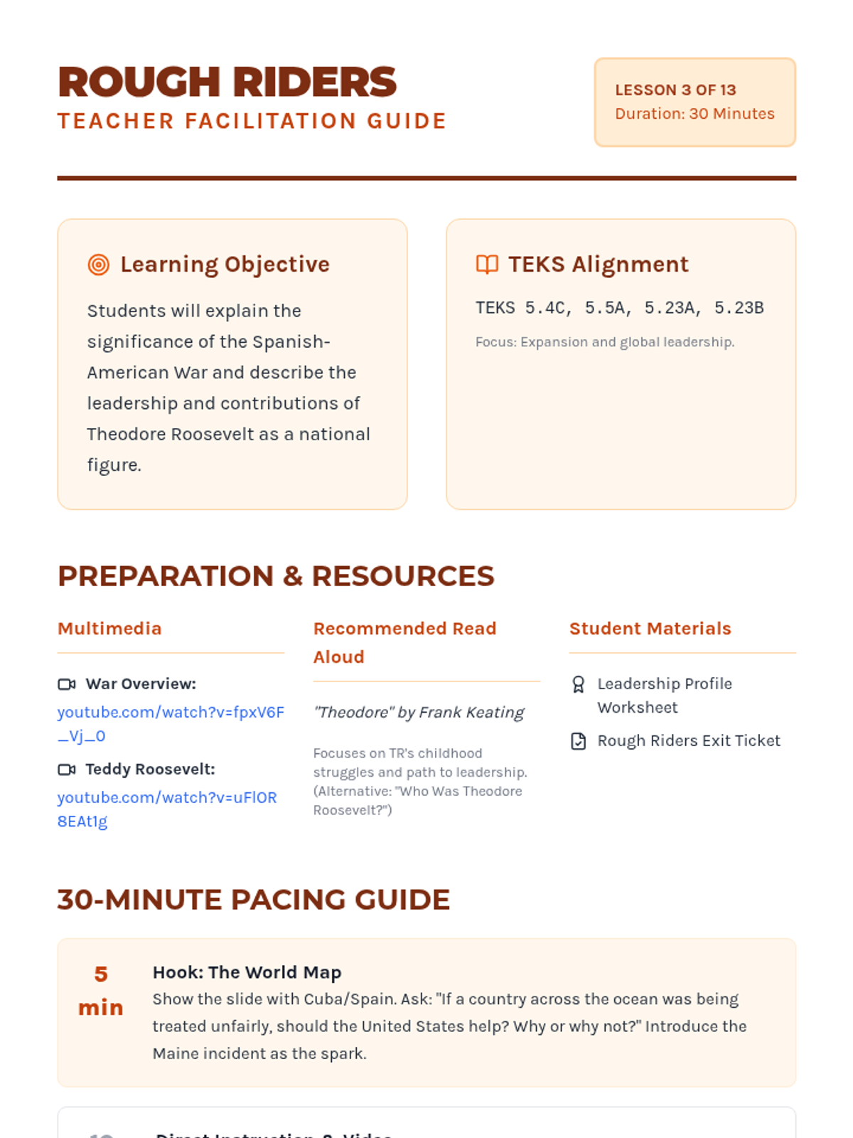 A 13-day journey through modern American history, from the Industrial Revolution to the present day, focusing on key historical figures and major conflicts as outlined in the 5th Grade TEKS. Each lesson is designed for a quick 30-minute block, integrating multimedia and primary source analysis.