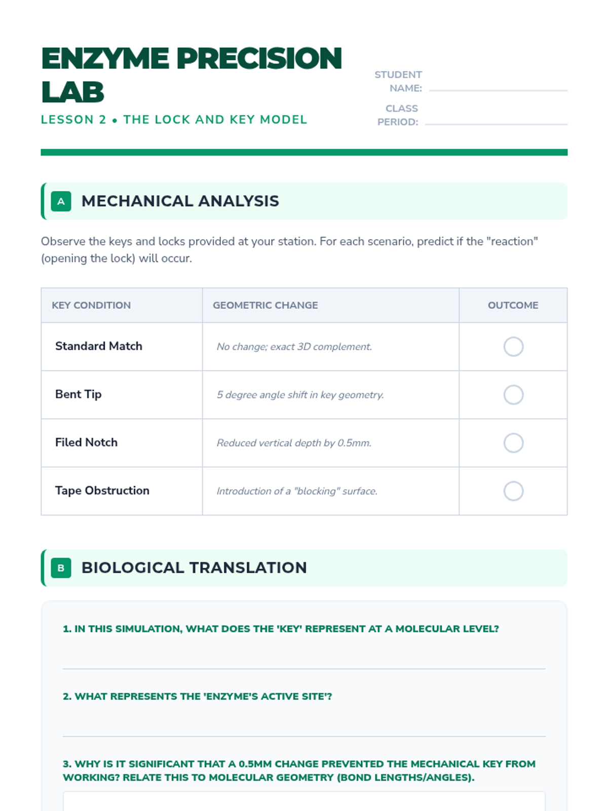A 5-lesson unit exploring the critical role of three-dimensional molecular geometry in biological systems, smell, enzymes, medicine, and protein folding. Students investigate how shape dictates function through case studies, simulations, and a design challenge.
