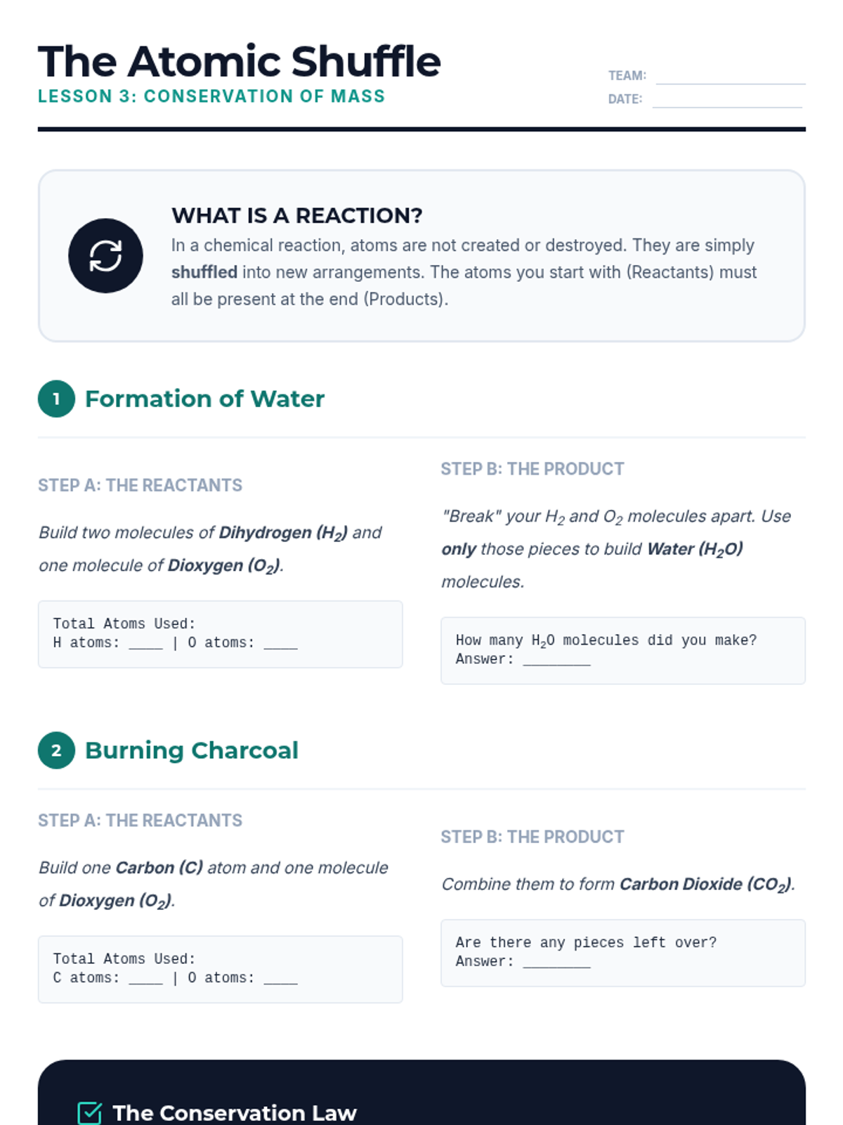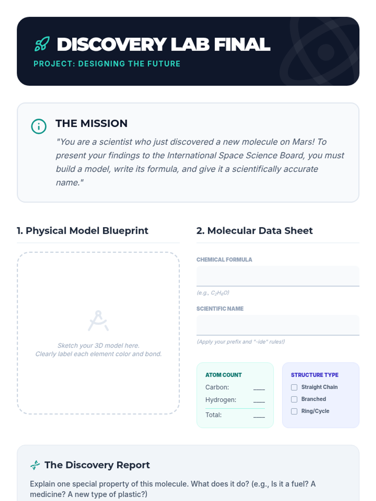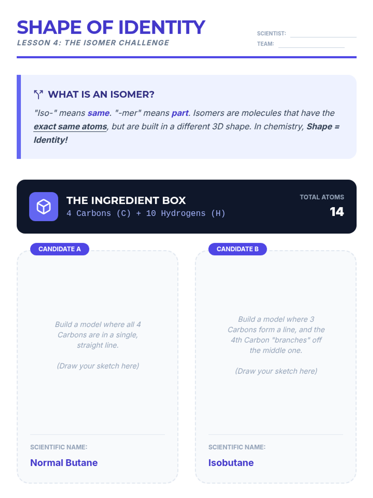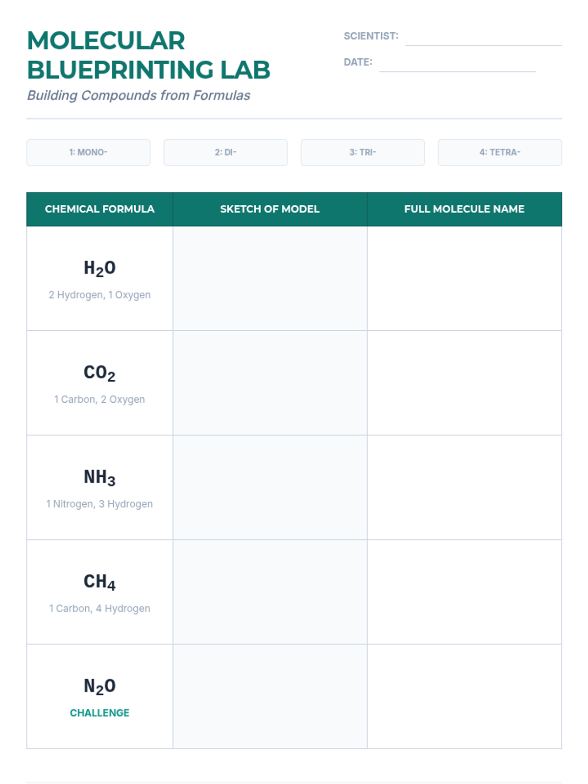 A hands-on chemistry sequence for 7th-grade students focusing on the relationship between molecular structure and nomenclature. Students build 3D models to understand subscripts, prefixes, conservation of mass, and isomers.
