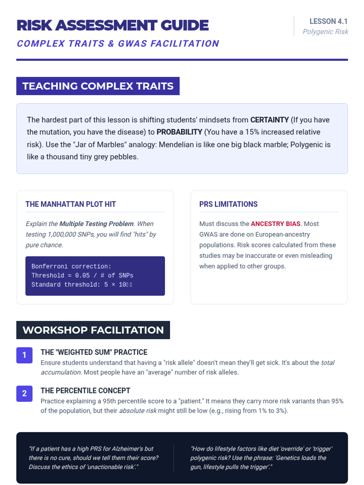 This sequence uses a case-study methodology to connect molecular genetics to clinical pathology, examining how mutations in metabolic pathways and structural proteins result in systemic disease, culminating in the study of polygenic risk and personalized medicine.
