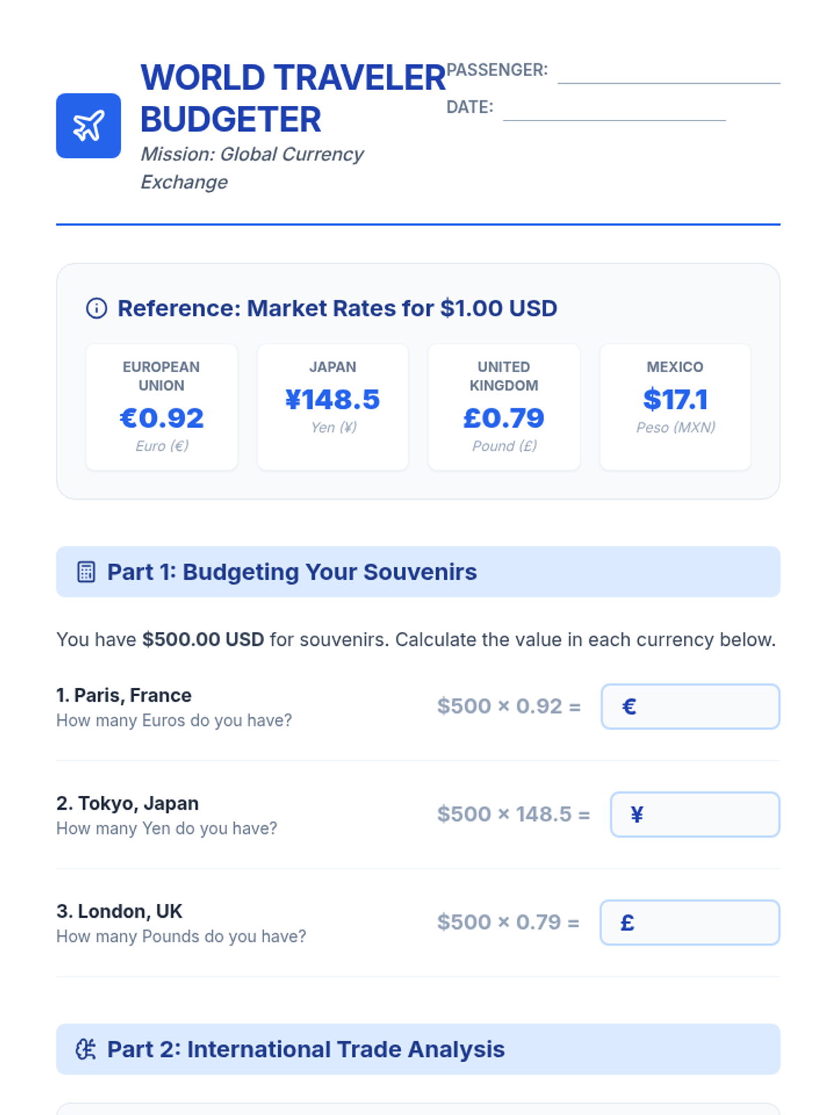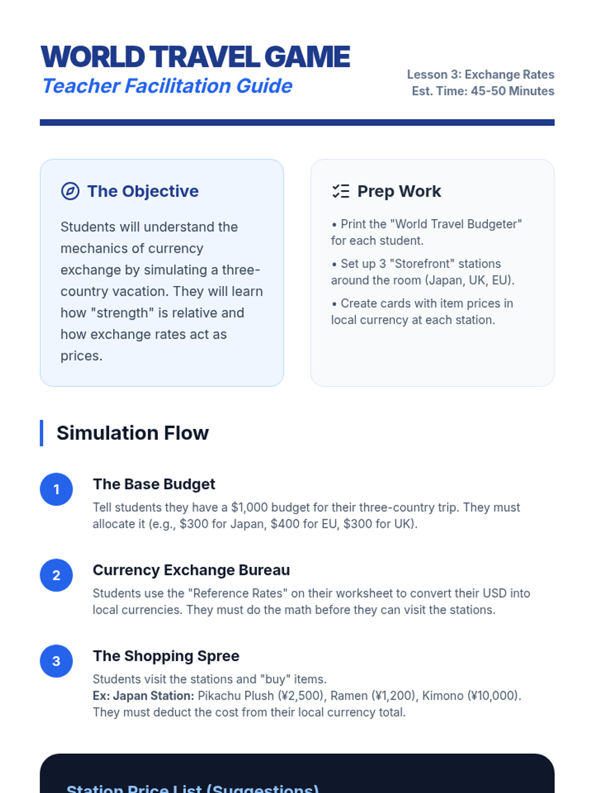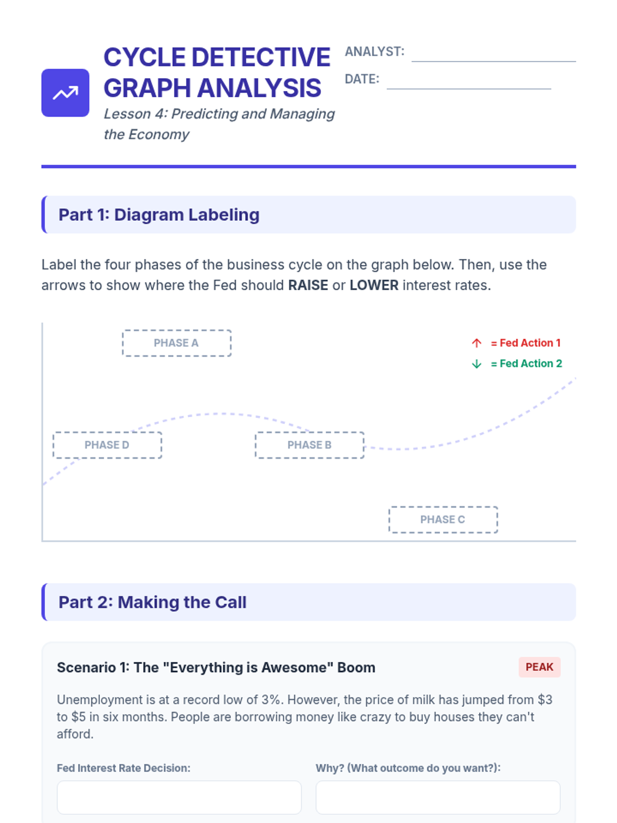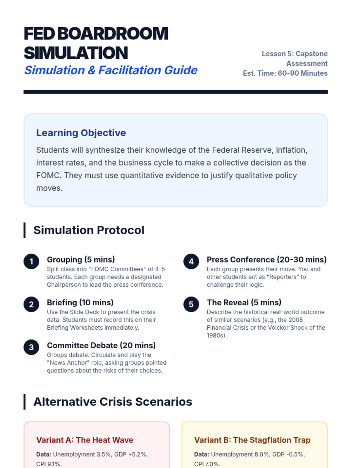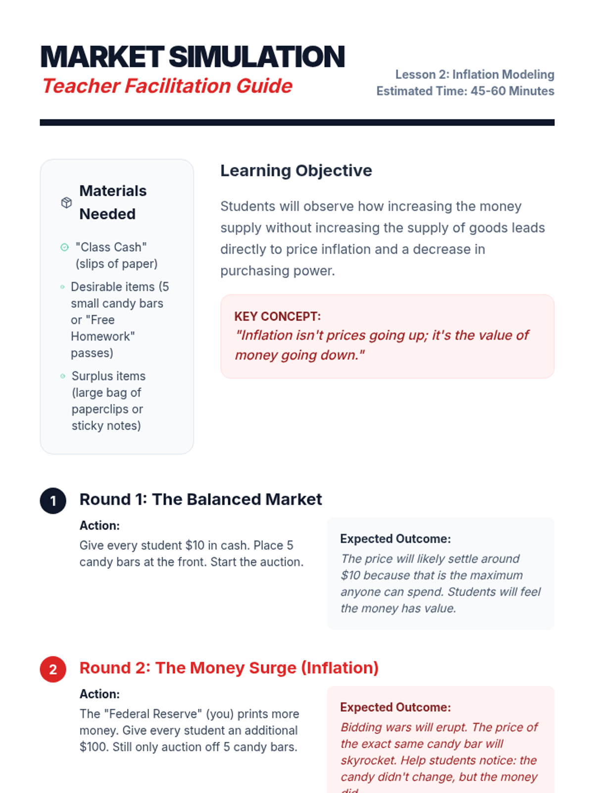 This 6th-grade economics sequence moves beyond personal finance to explore macroeconomics, focusing on central banking, inflation, global currency exchange, and the business cycle. Students engage in simulations and role-plays to understand how the Federal Reserve and global markets maintain economic stability.
