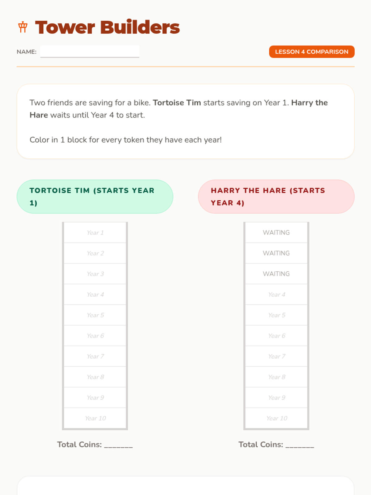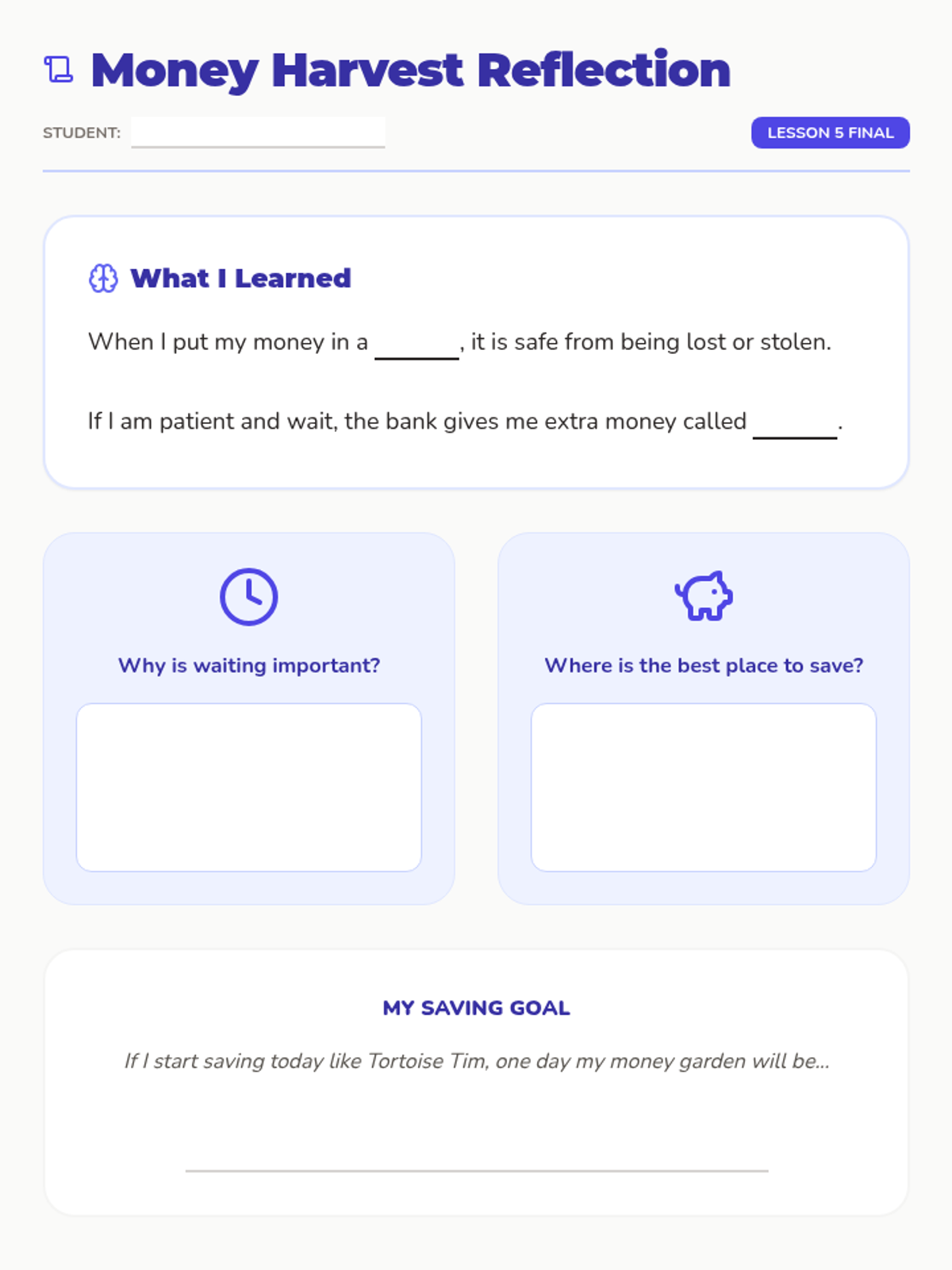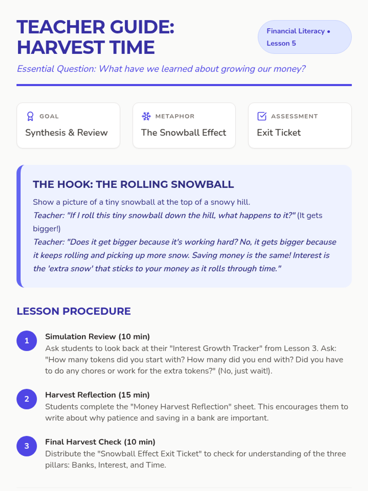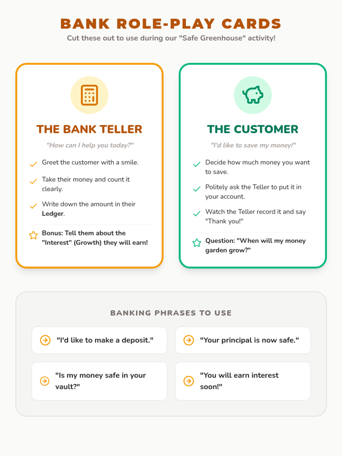 This sequence introduces 2nd-grade students to the concept of interest and money growth using a garden metaphor. Students explore how saving money in a bank leads to growth over time through simulations and hands-on activities.
