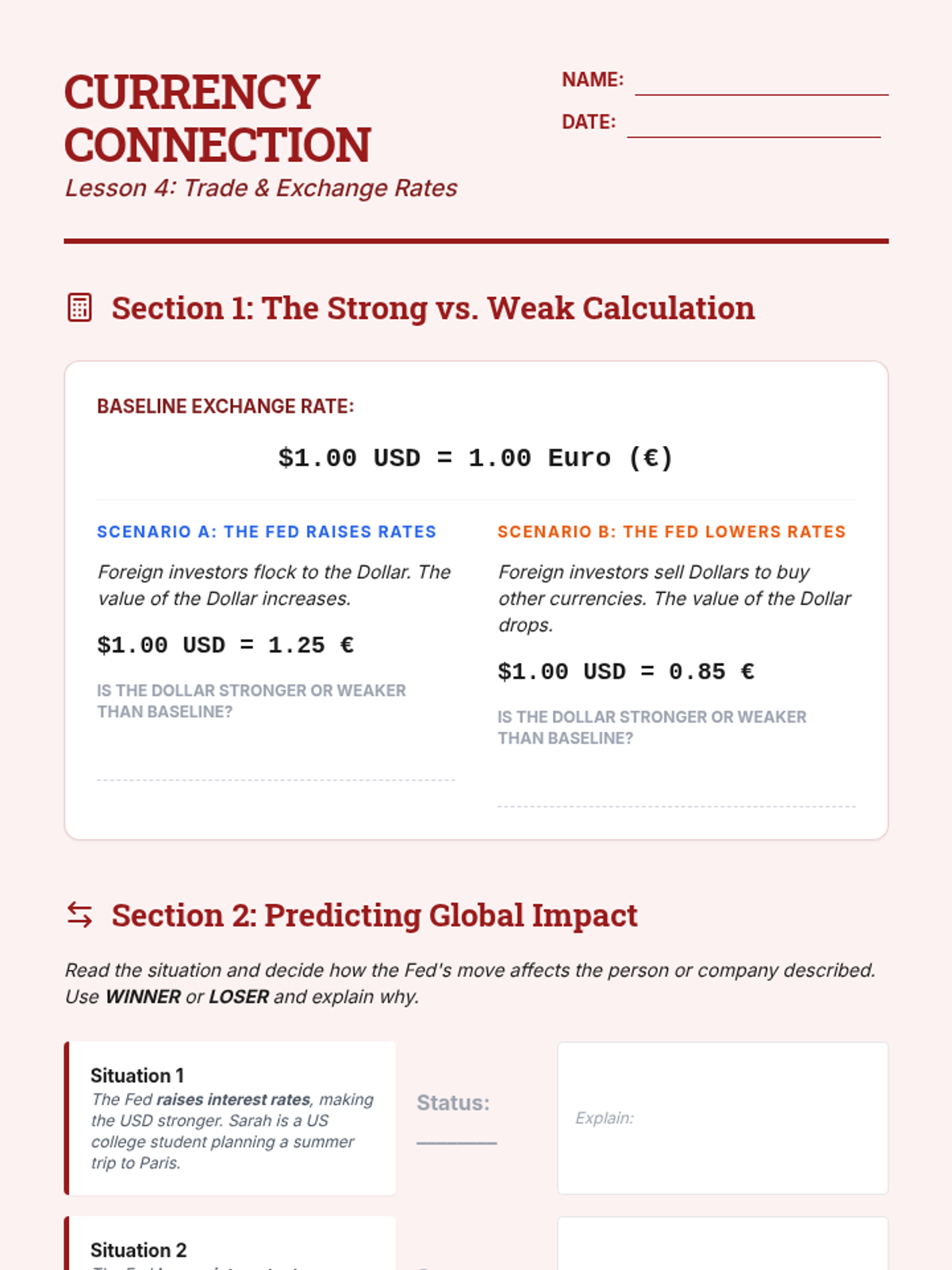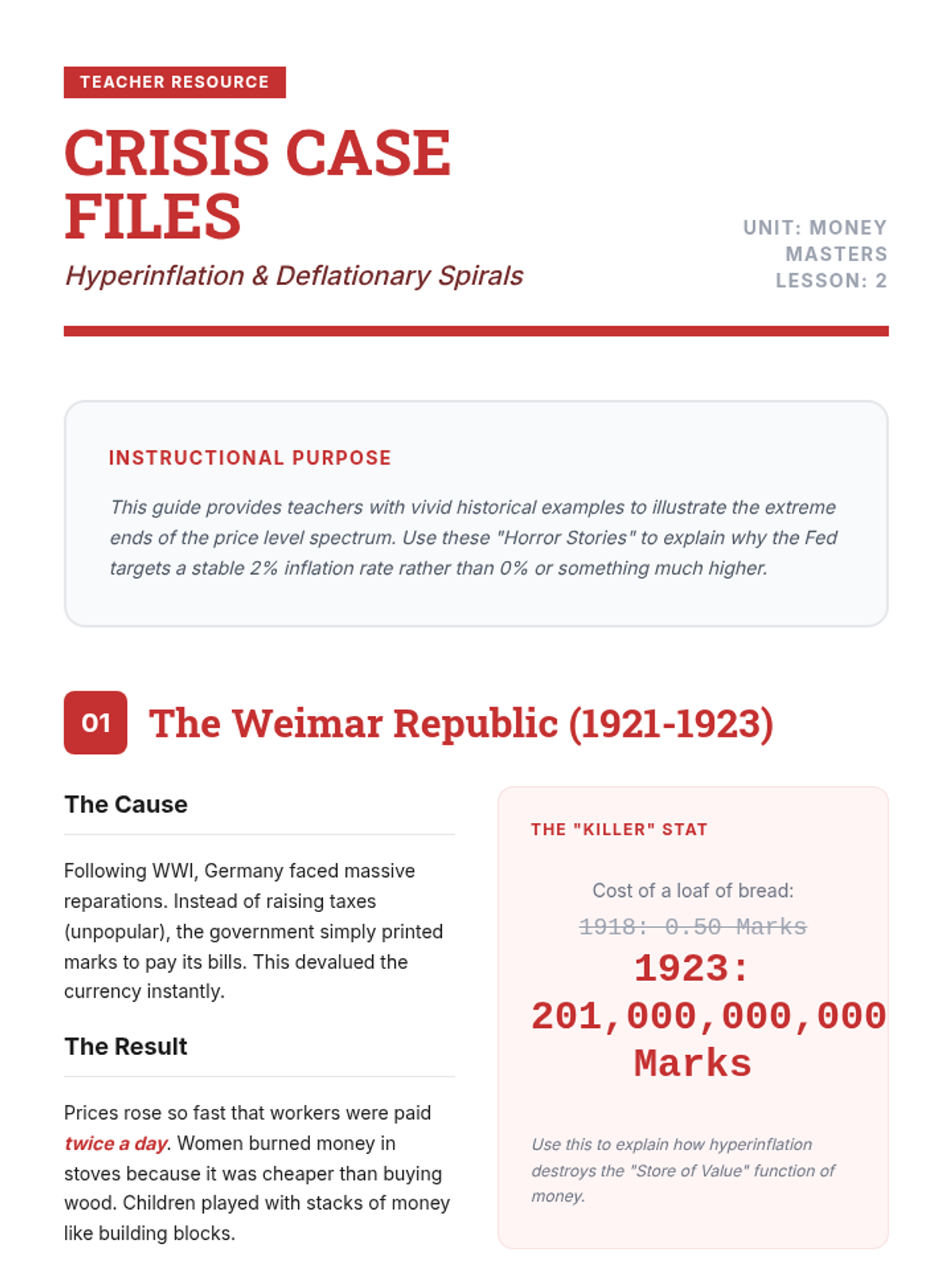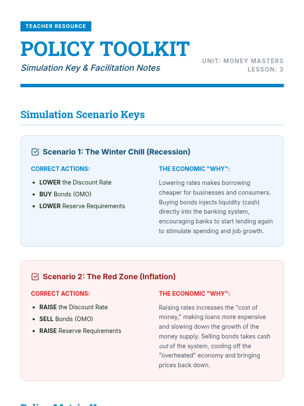 A comprehensive high school economics unit exploring the Federal Reserve, monetary policy tools, inflation, and the global and personal impact of central banking decisions.