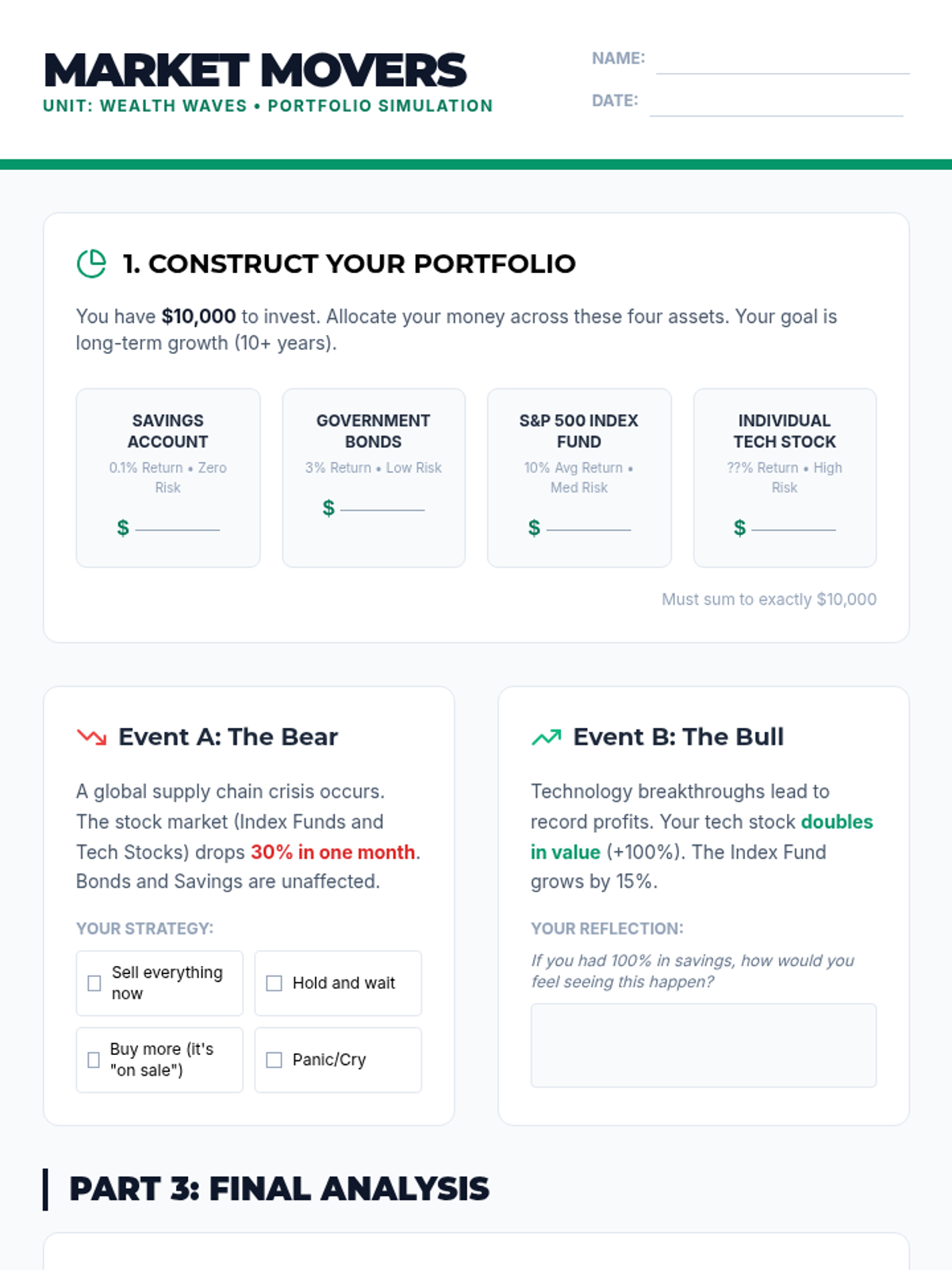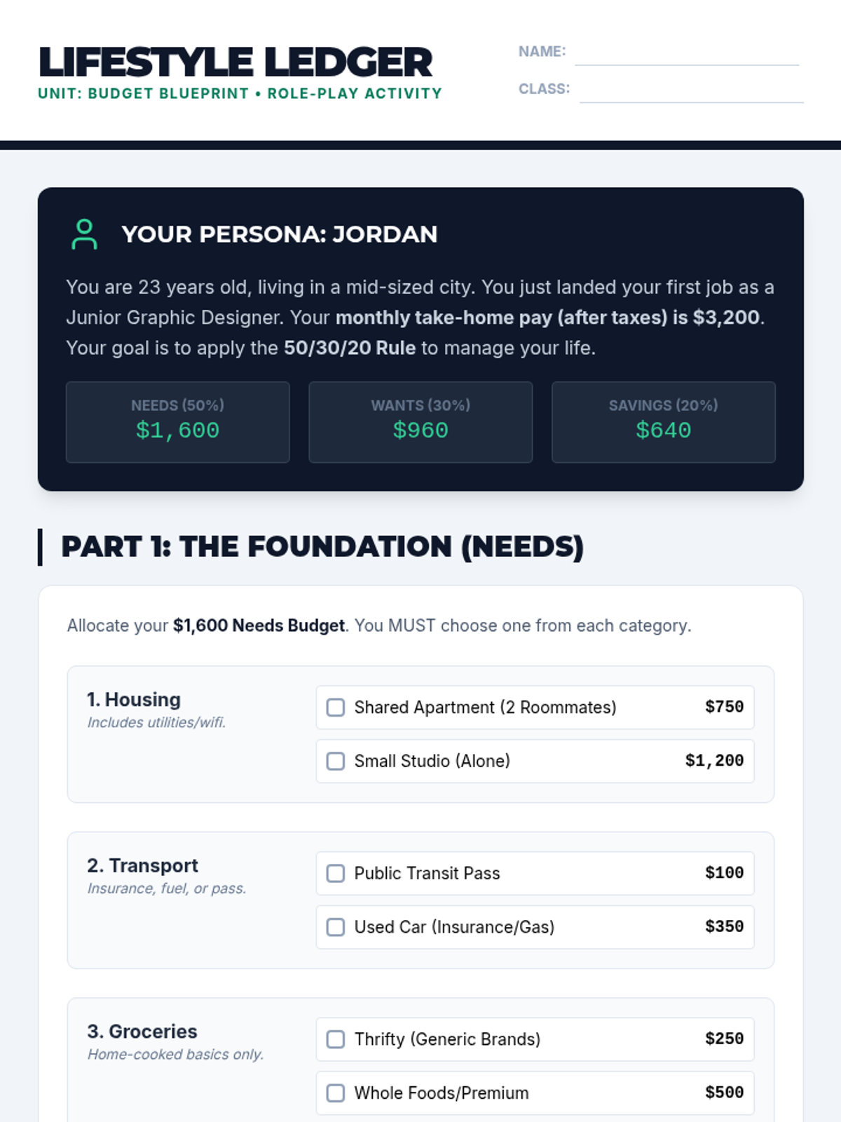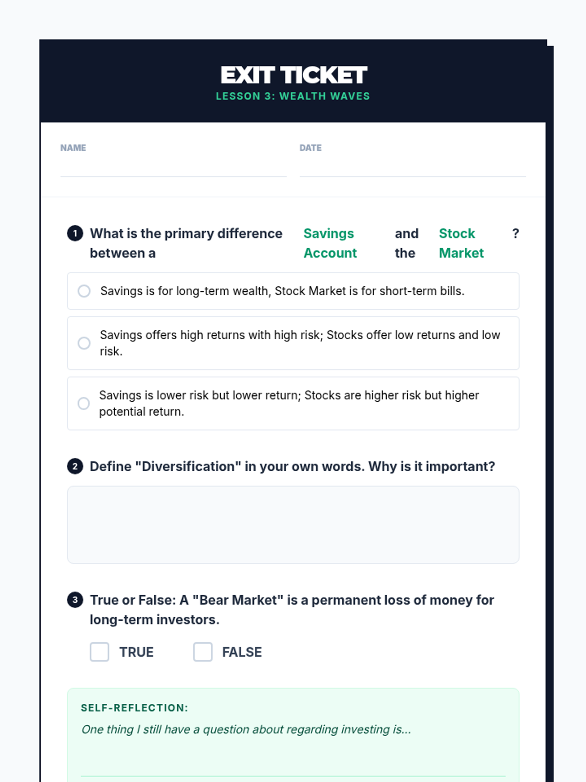 A comprehensive financial literacy series for secondary students covering the core pillars of personal finance: saving, budgeting, and investing. Students move from basic habits to long-term wealth building through practical simulations and real-world math.