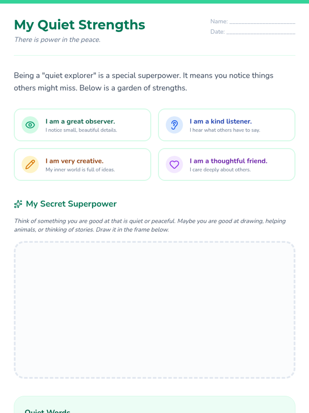 A series of empowering lessons designed to build self-esteem, positive self-talk, and internal motivation in girls through creative activities and reflection.