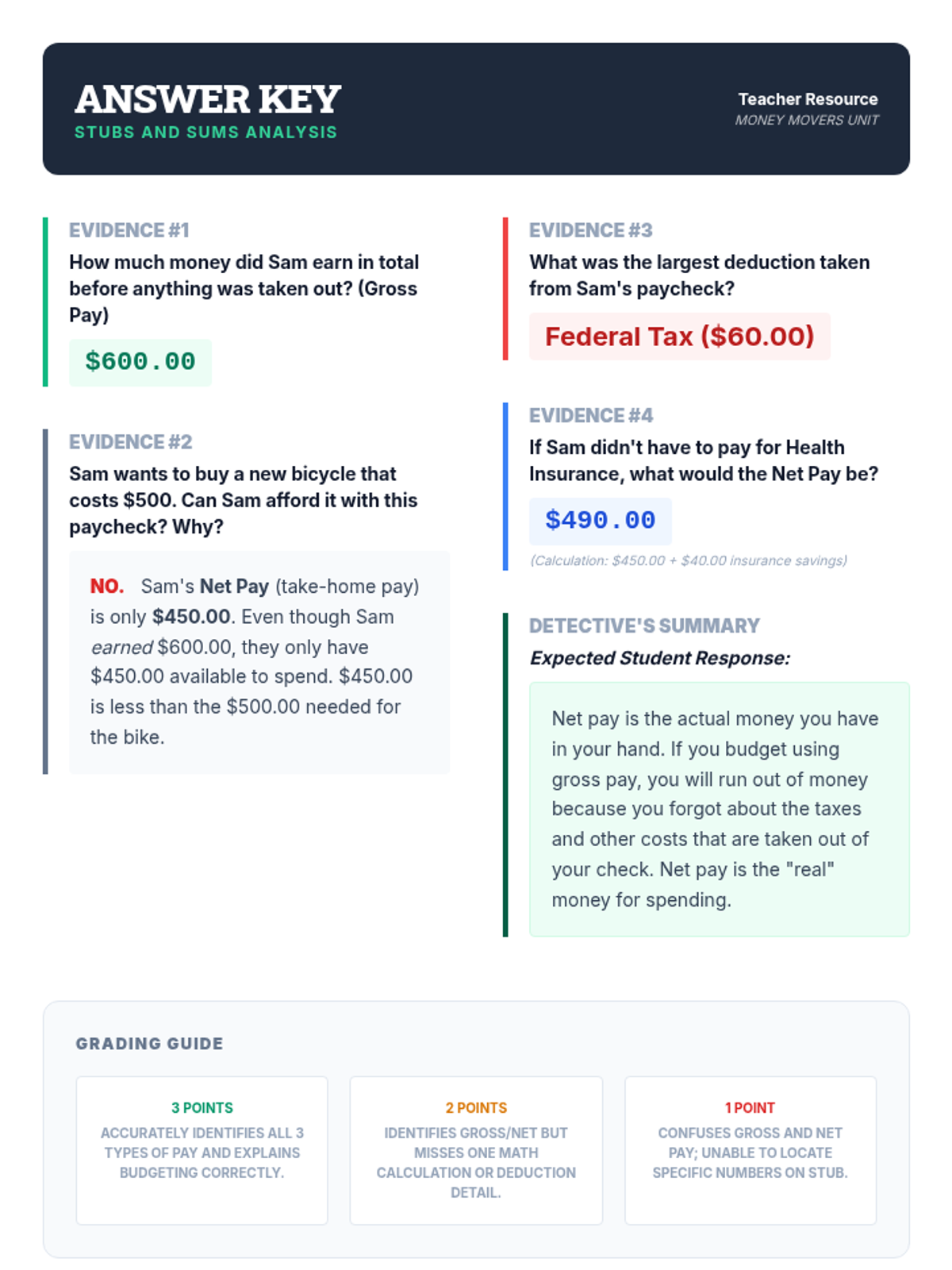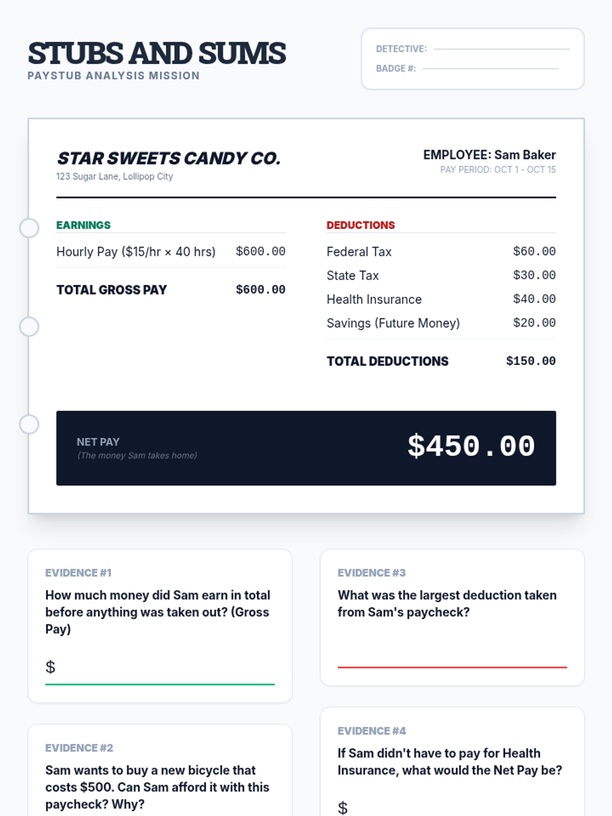 A comprehensive unit for 3rd-grade students exploring the concepts of gross pay, deductions, taxes, and net income. Through simulations, games, and real-world analysis, students learn how money is earned and how it contributes to community services.