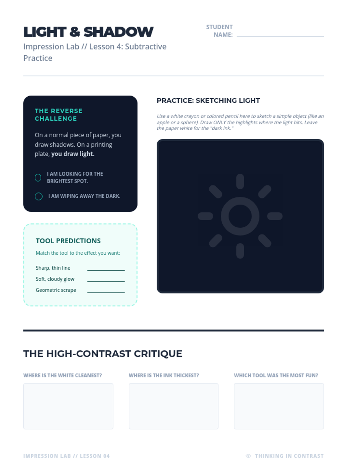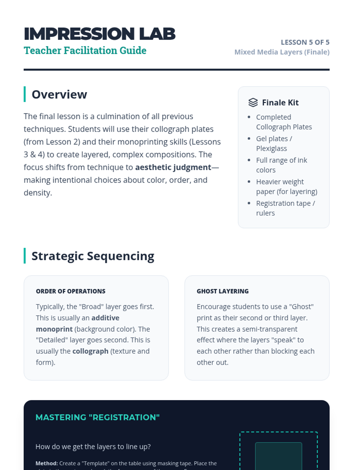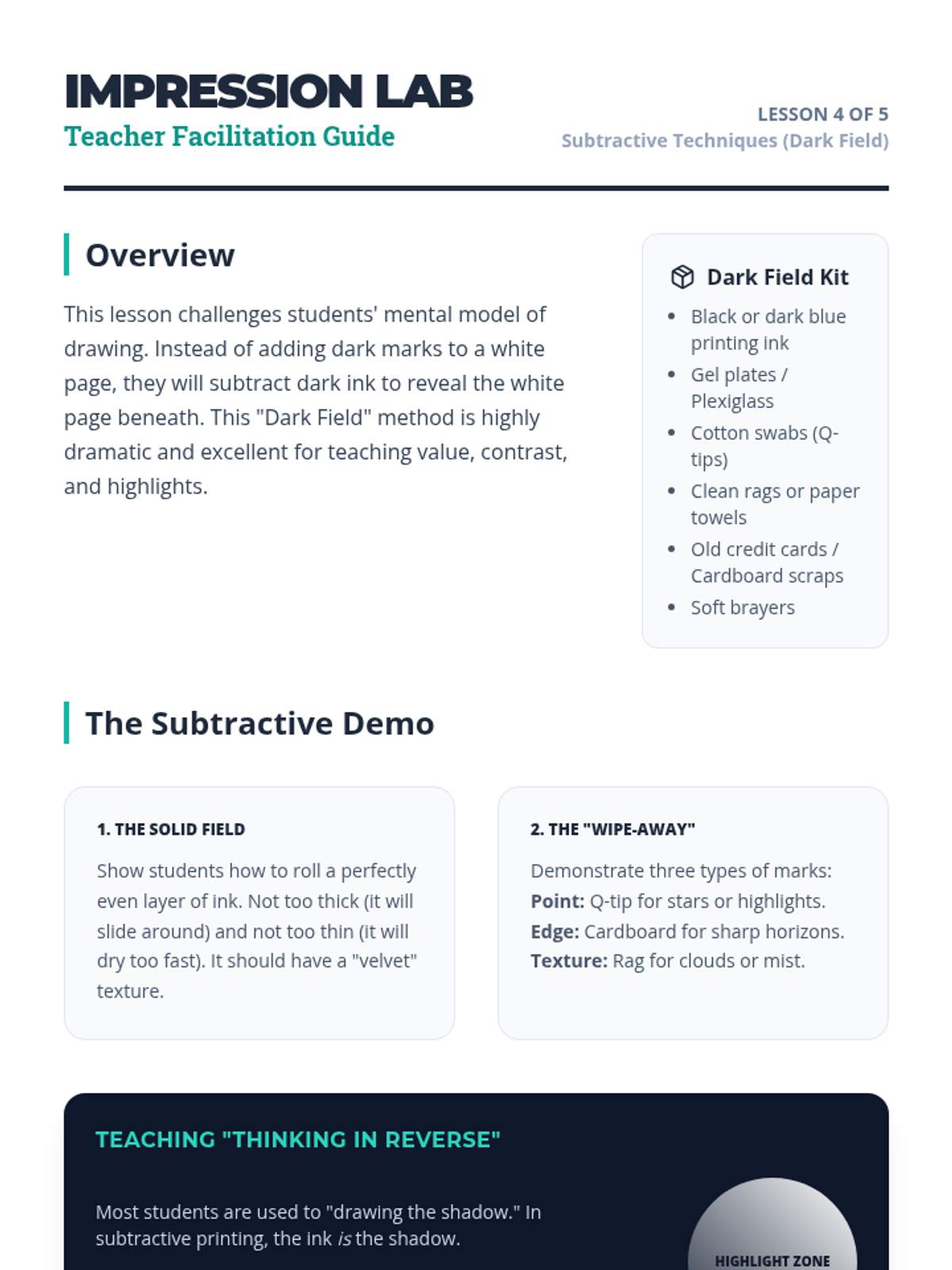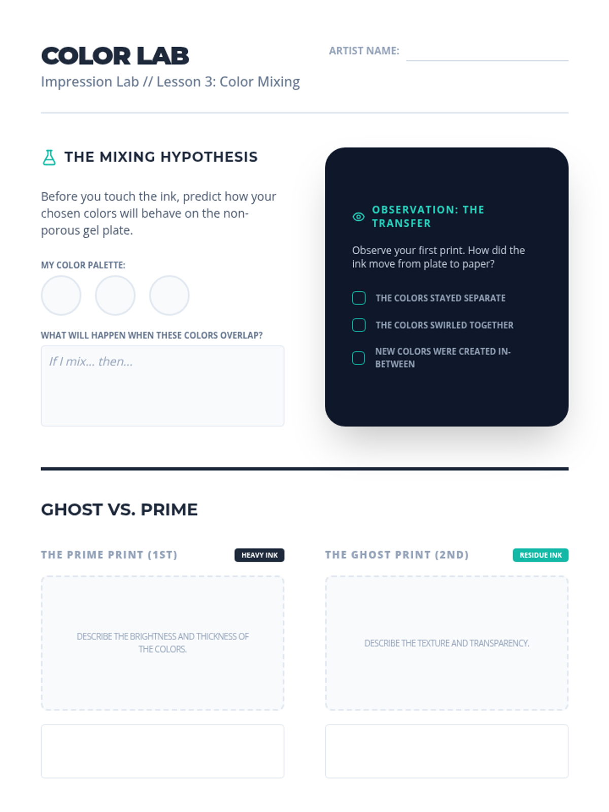 An inquiry-based exploration of monoprinting and collography for 6th-grade students, focusing on the element of chance, tactile textures, and the difference between relief and unique prints.