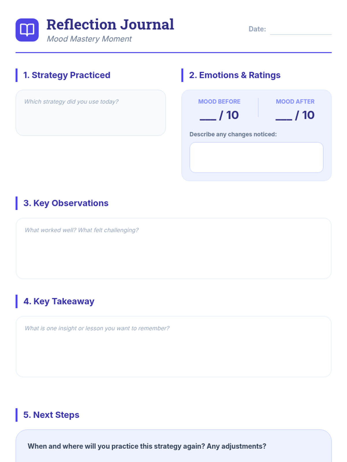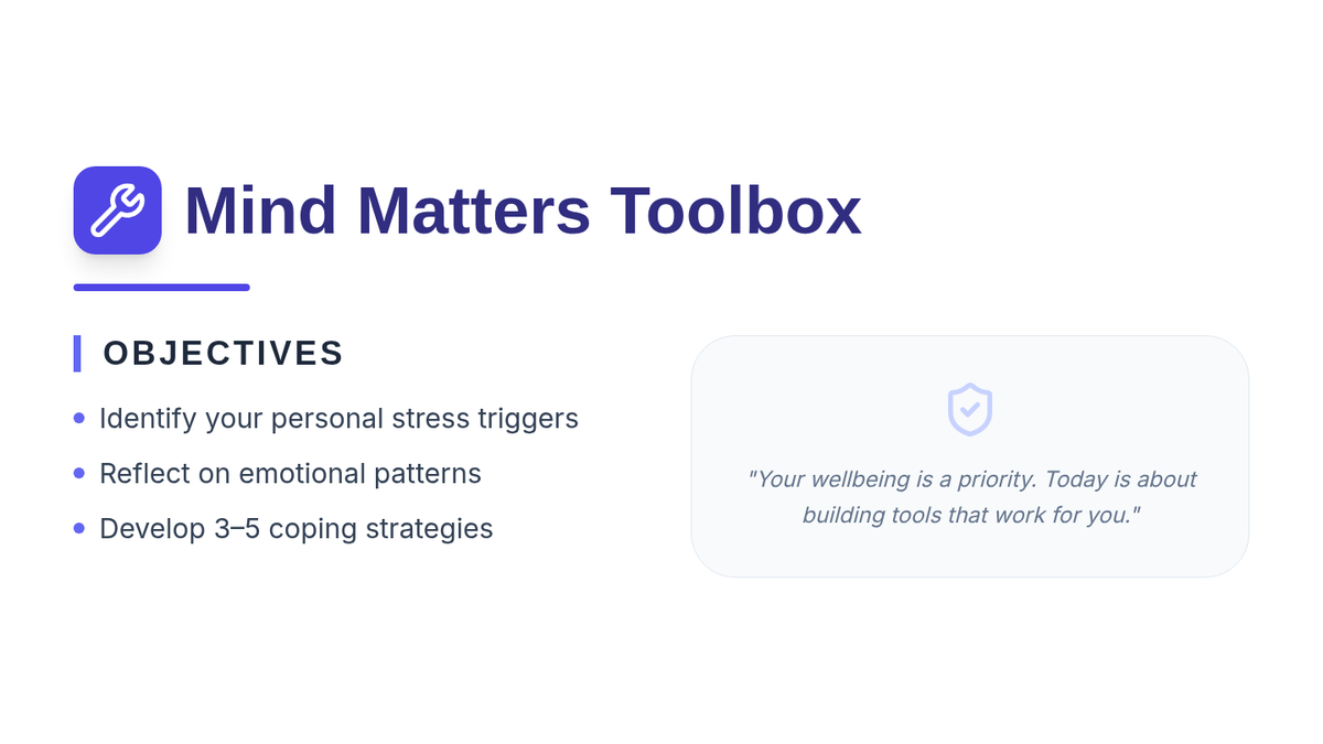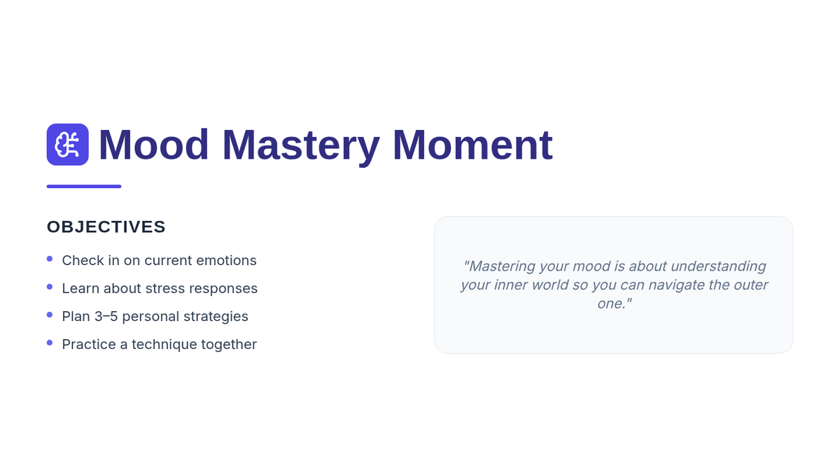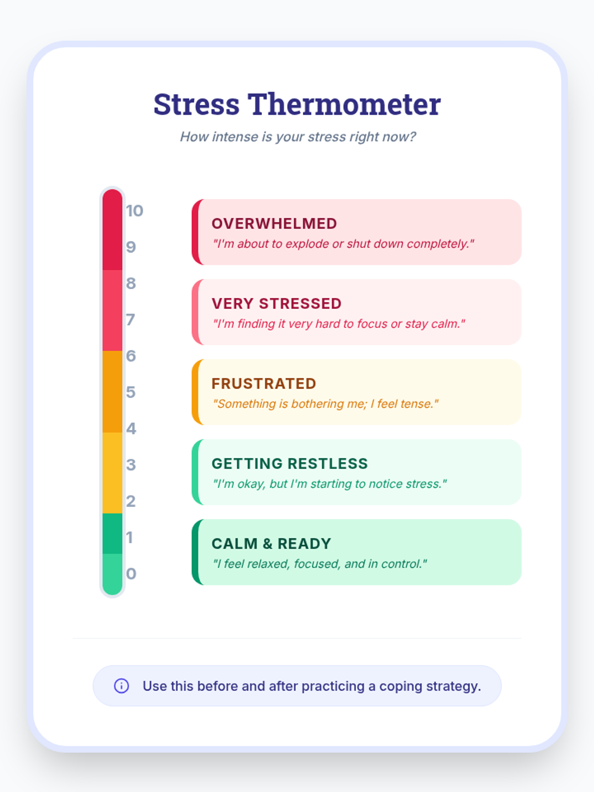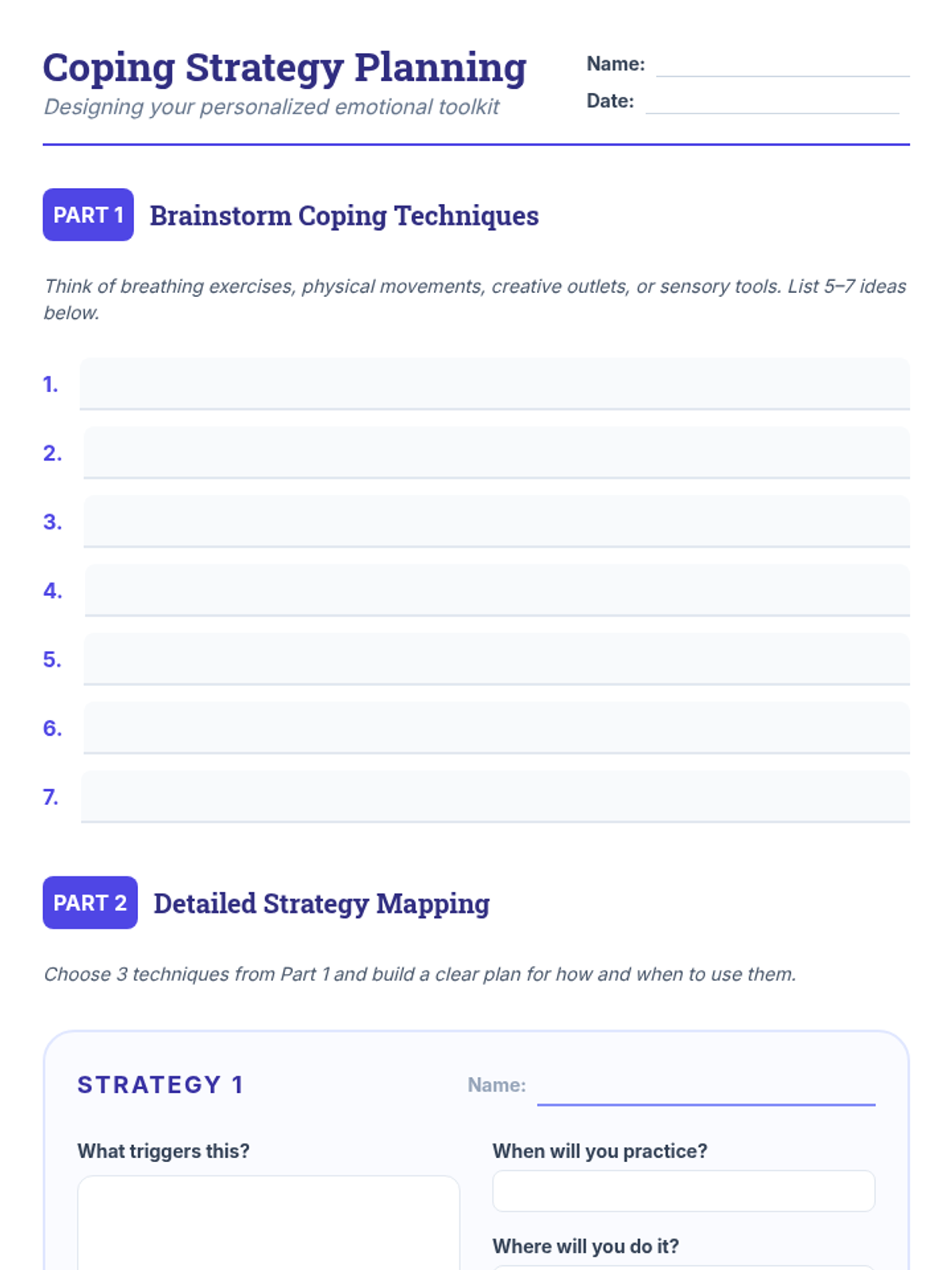 A Tier 3 individual support sequence designed for 10th-grade students to build emotional resilience, identify stress triggers, and develop a customized toolkit of healthy coping strategies through guided reflection and practice.