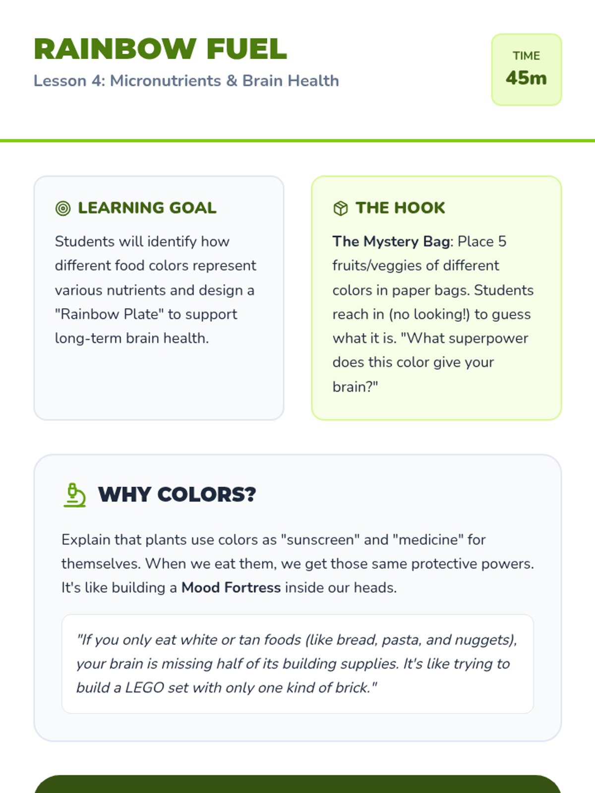A comprehensive wellness unit designed to empower students with lifelong healthy habits. Students explore nutrition, exercise, sleep, and emotional regulation through the lens of 'hero training'.