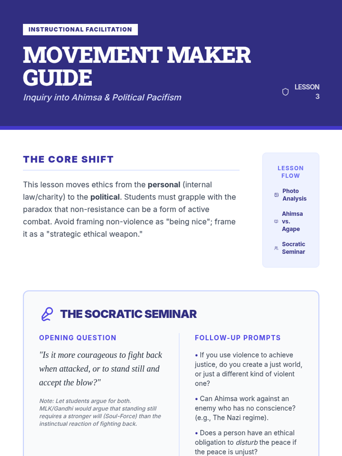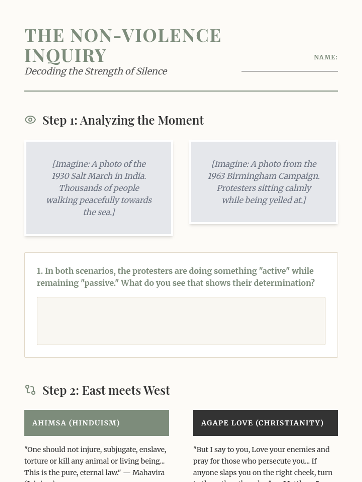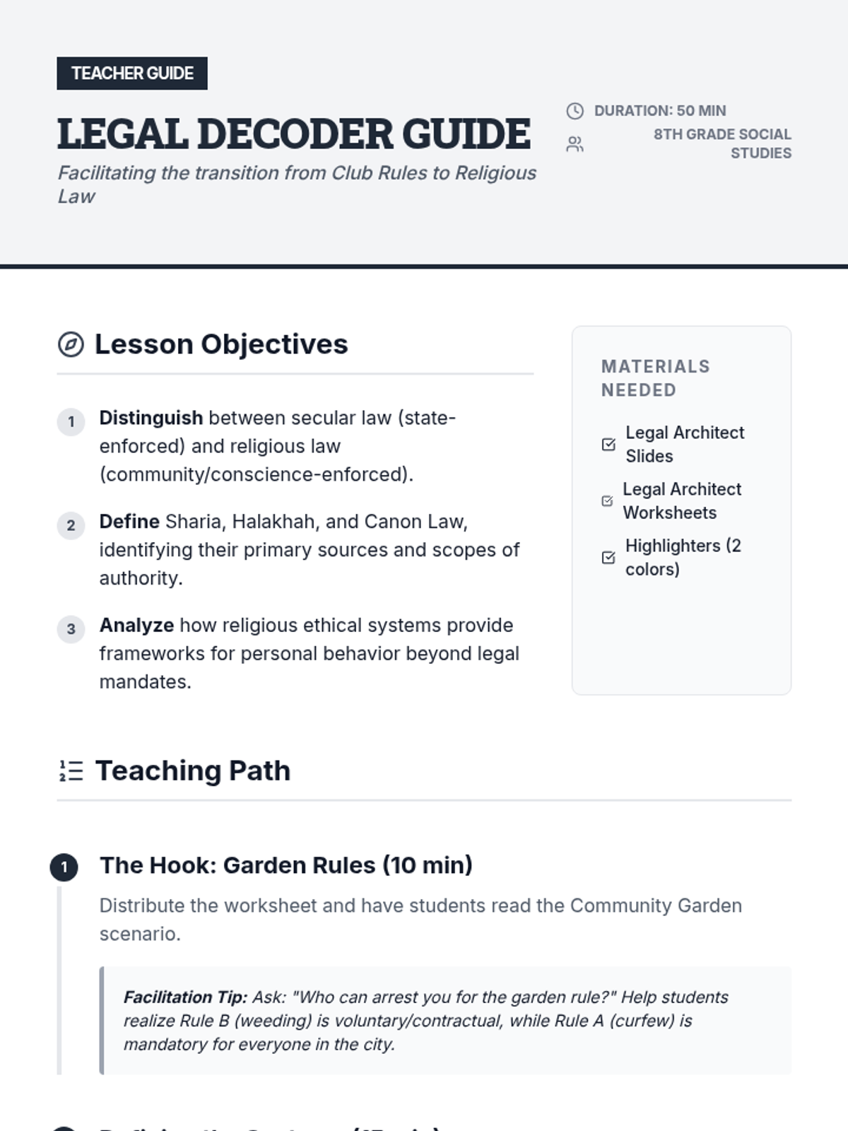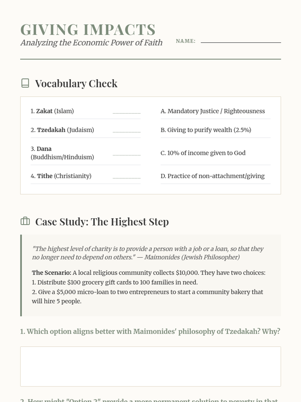 This sequence explores the ethical frameworks and moral systems of major world religions. Students compare religious laws, charitable mandates, non-violence principles, and concepts of atonement to understand how faith influences decision-making and social justice.