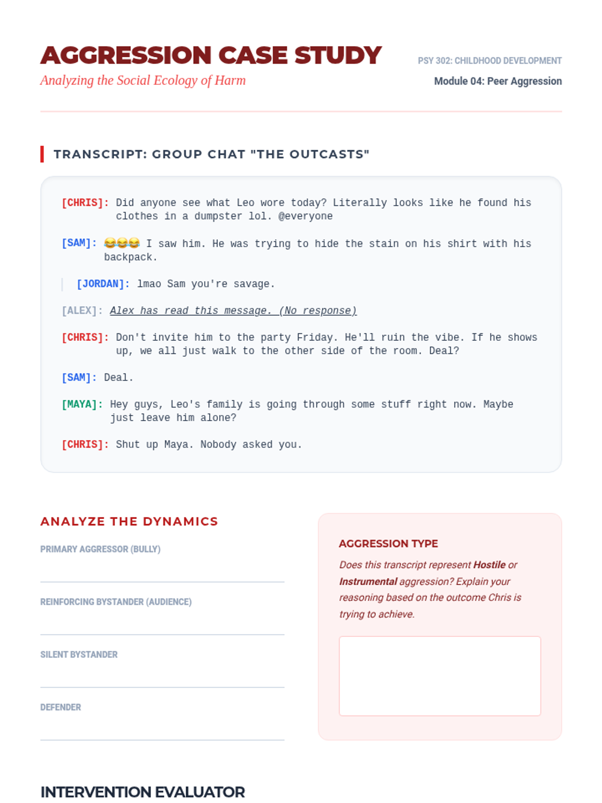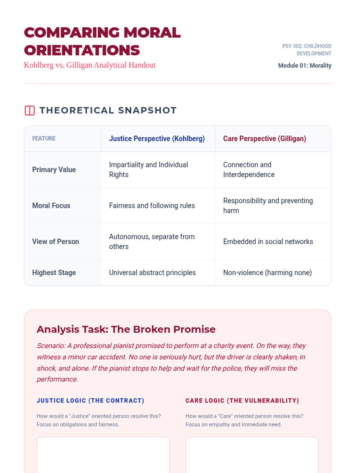 An undergraduate-level exploration of middle childhood psychology, focusing on the intersection of moral development, peer social structures, and the formation of self-concept. Students analyze traditional and critical moral theories and apply social psychology techniques to understand peer dynamics.