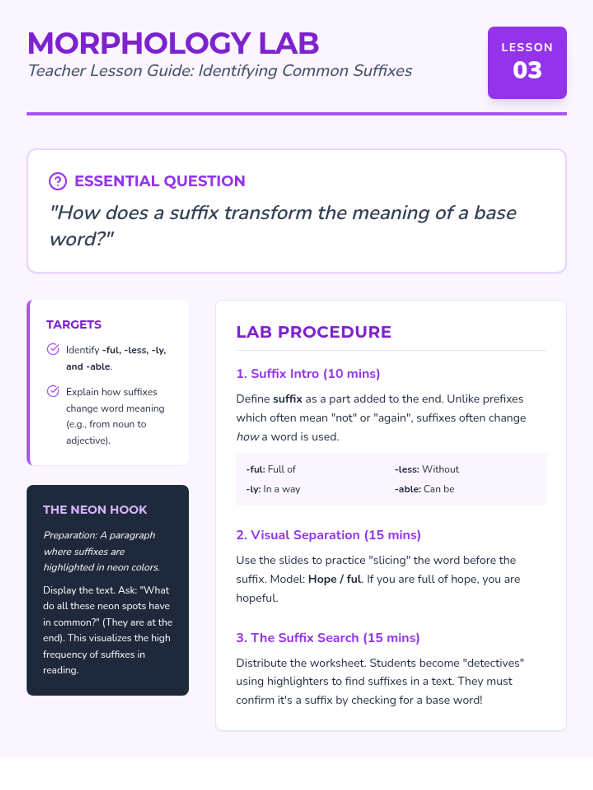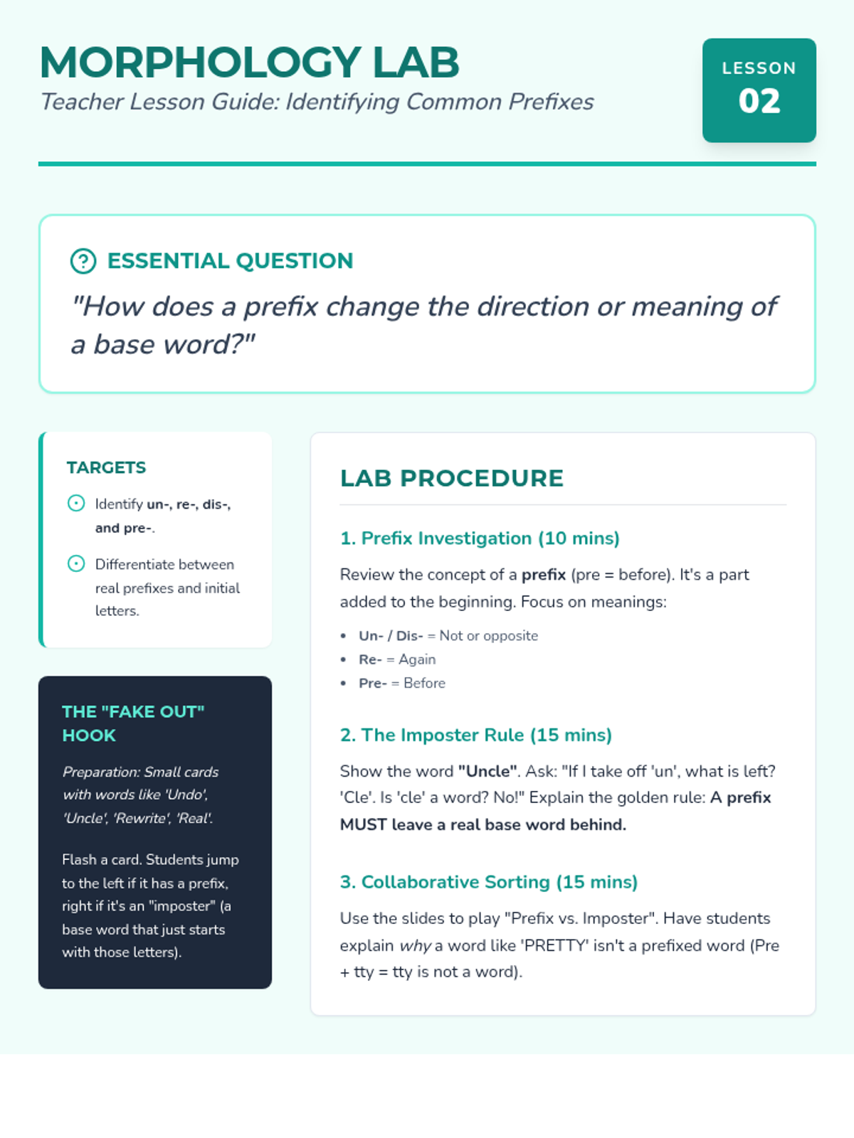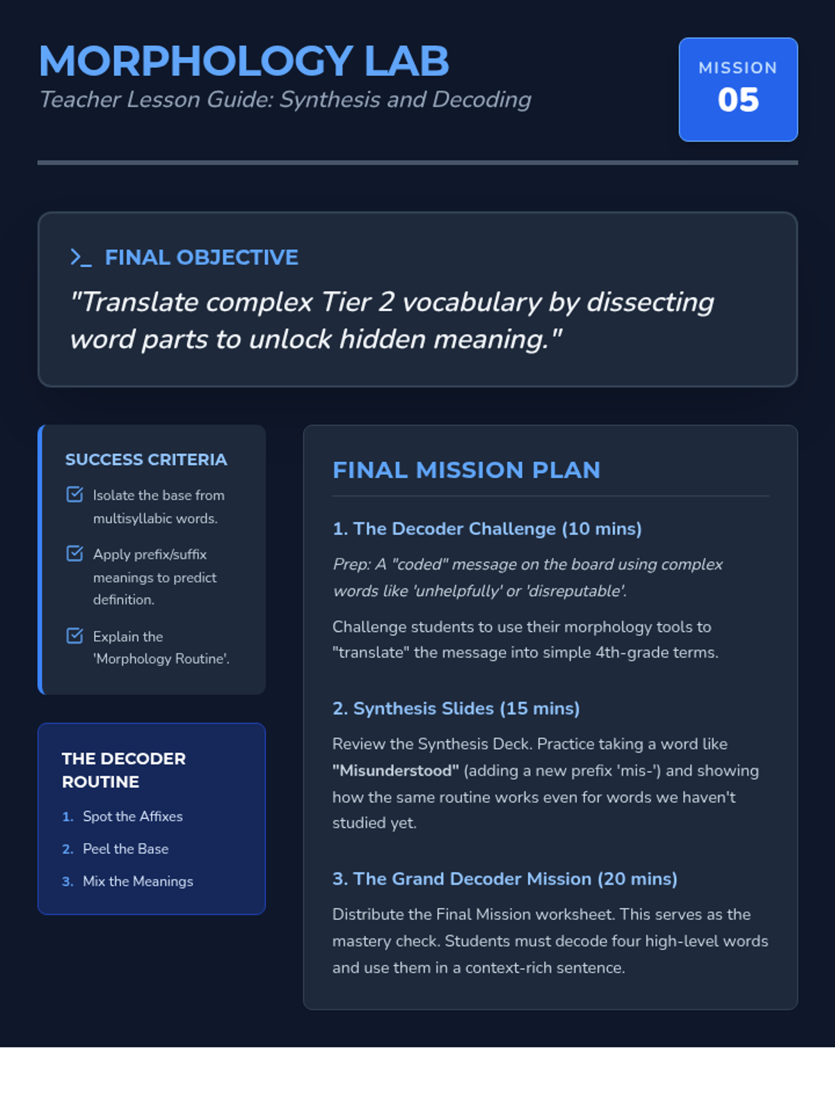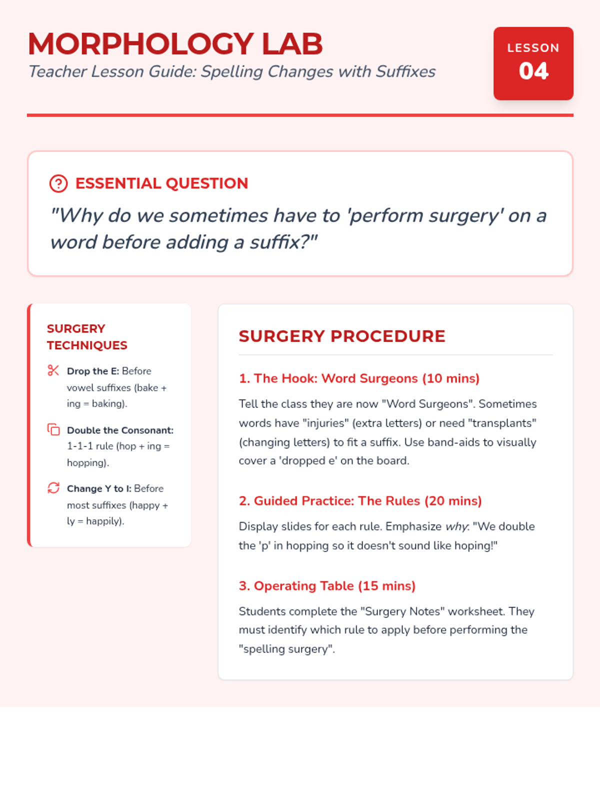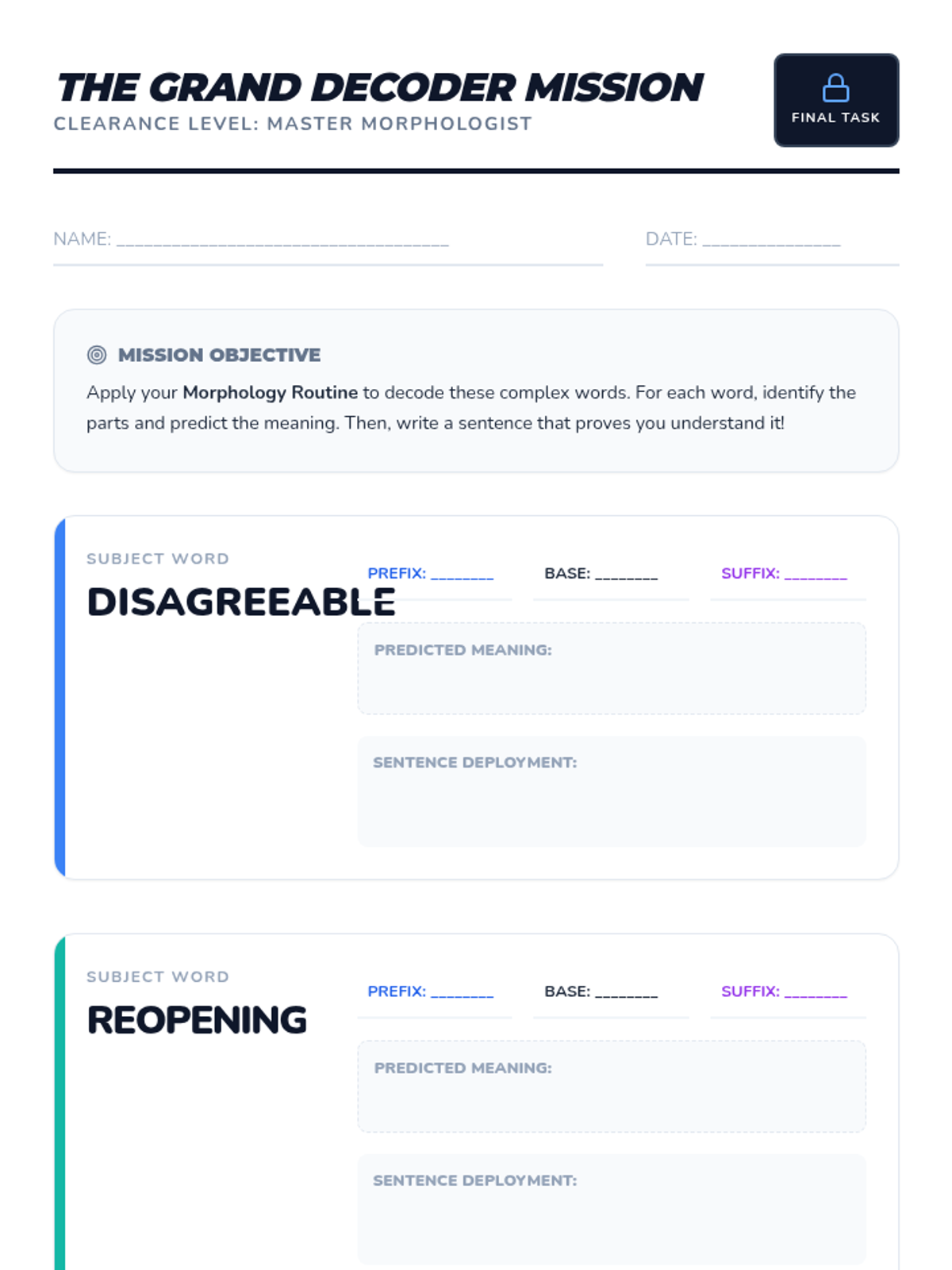 A comprehensive unit on word morphology for 4th graders, focusing on breaking words into base words, prefixes, and suffixes to unlock meaning and master spelling rules.