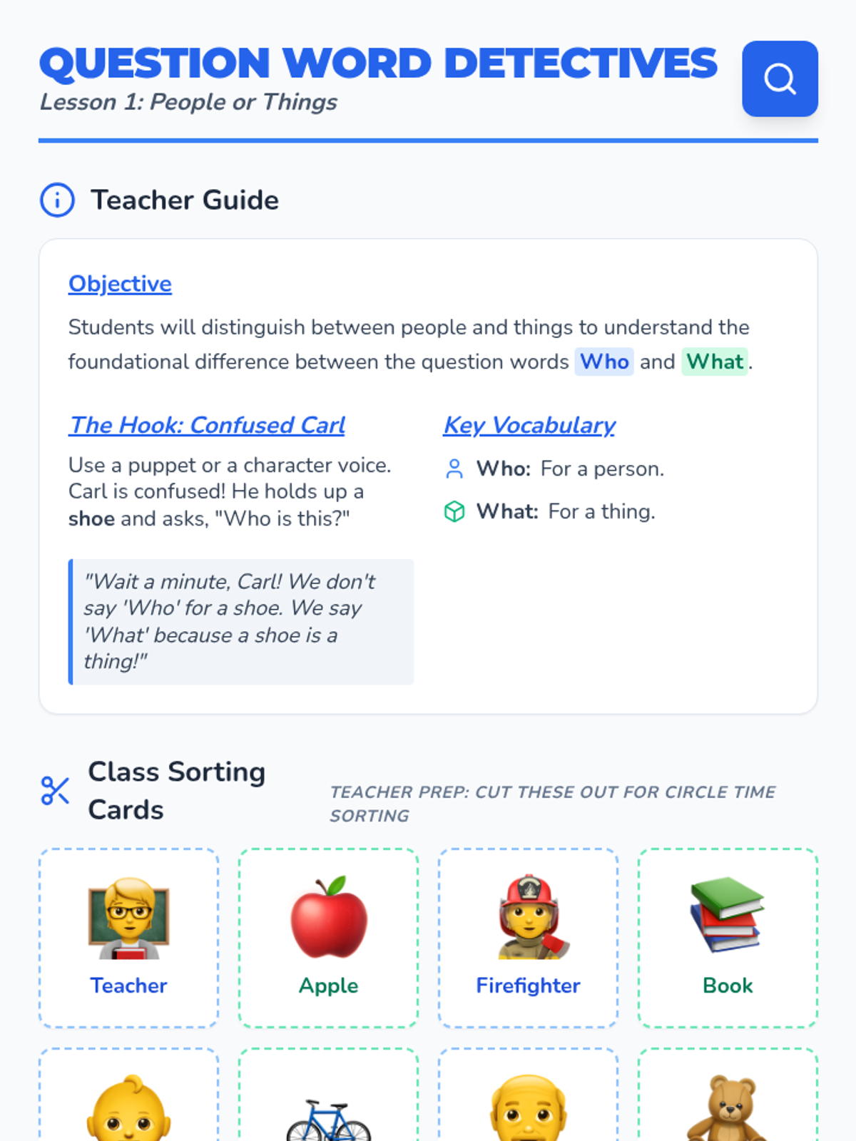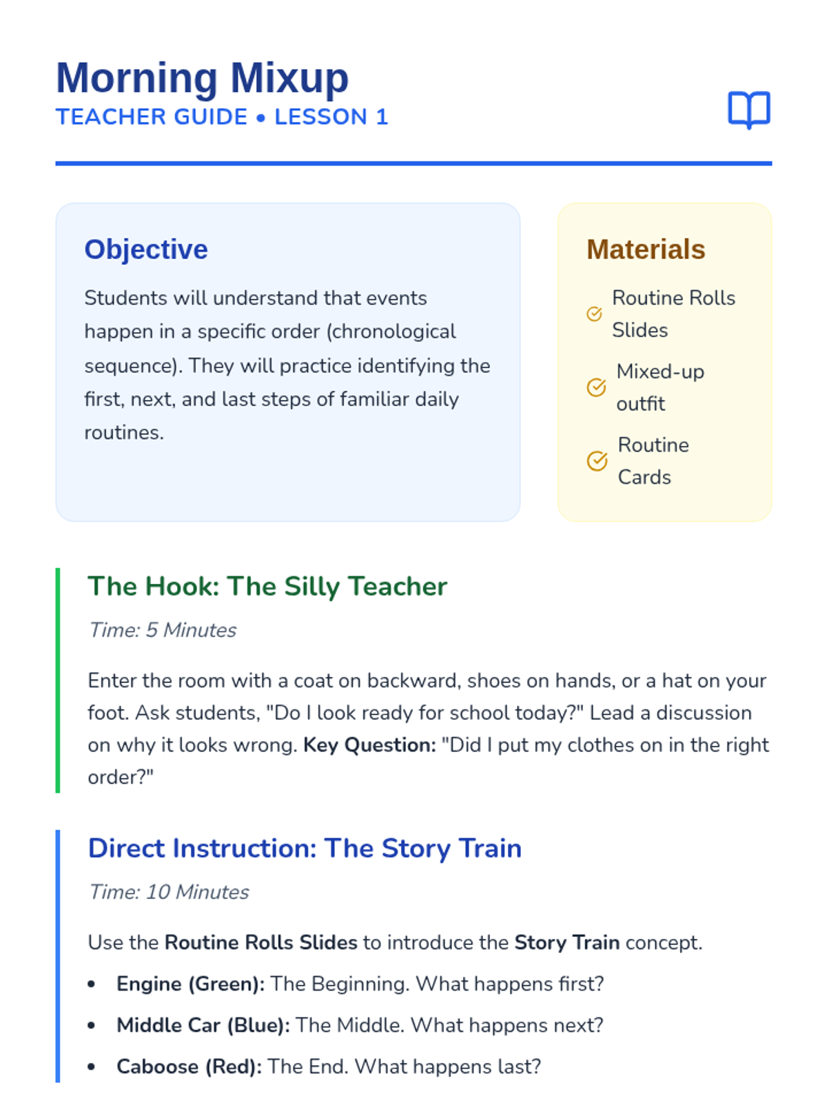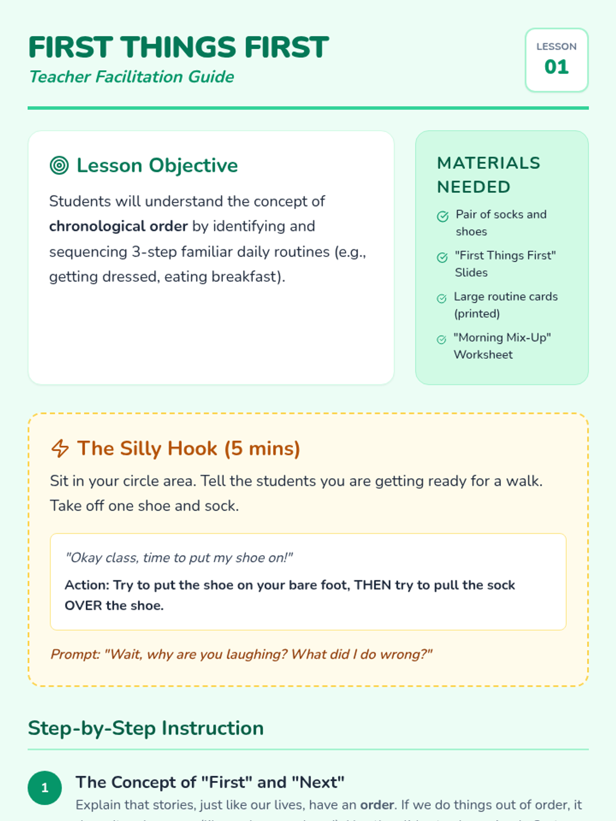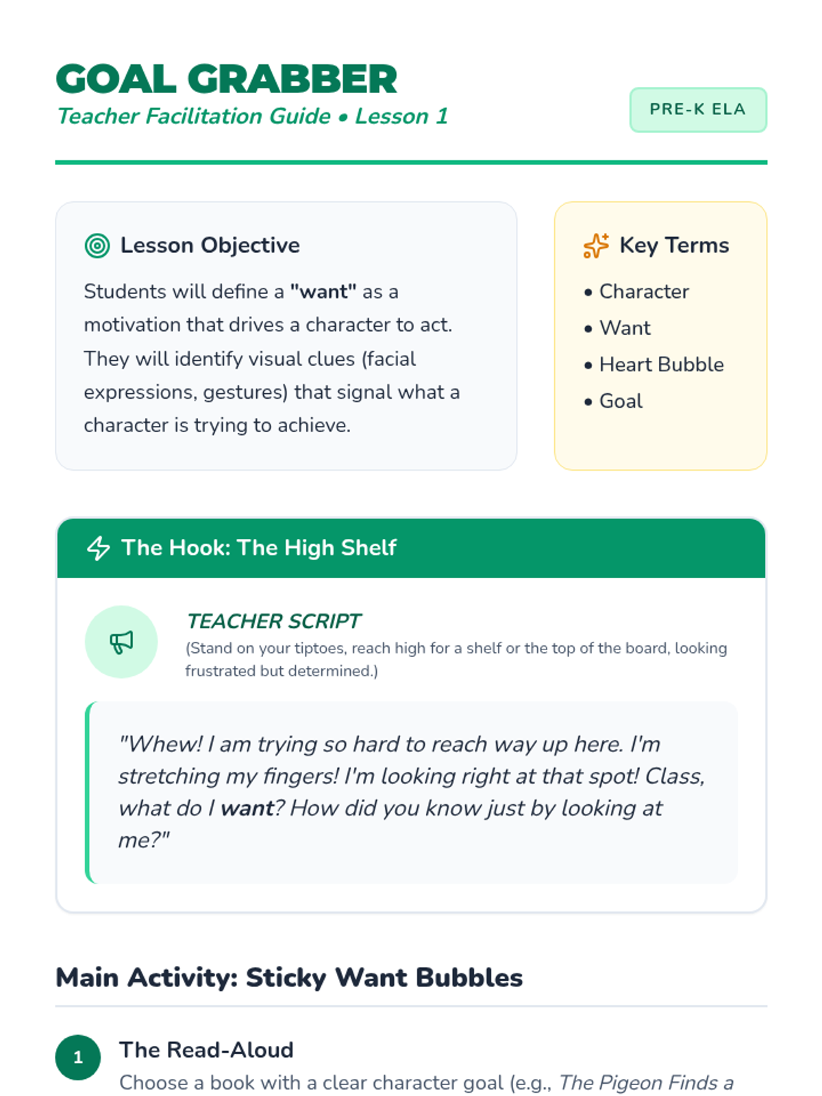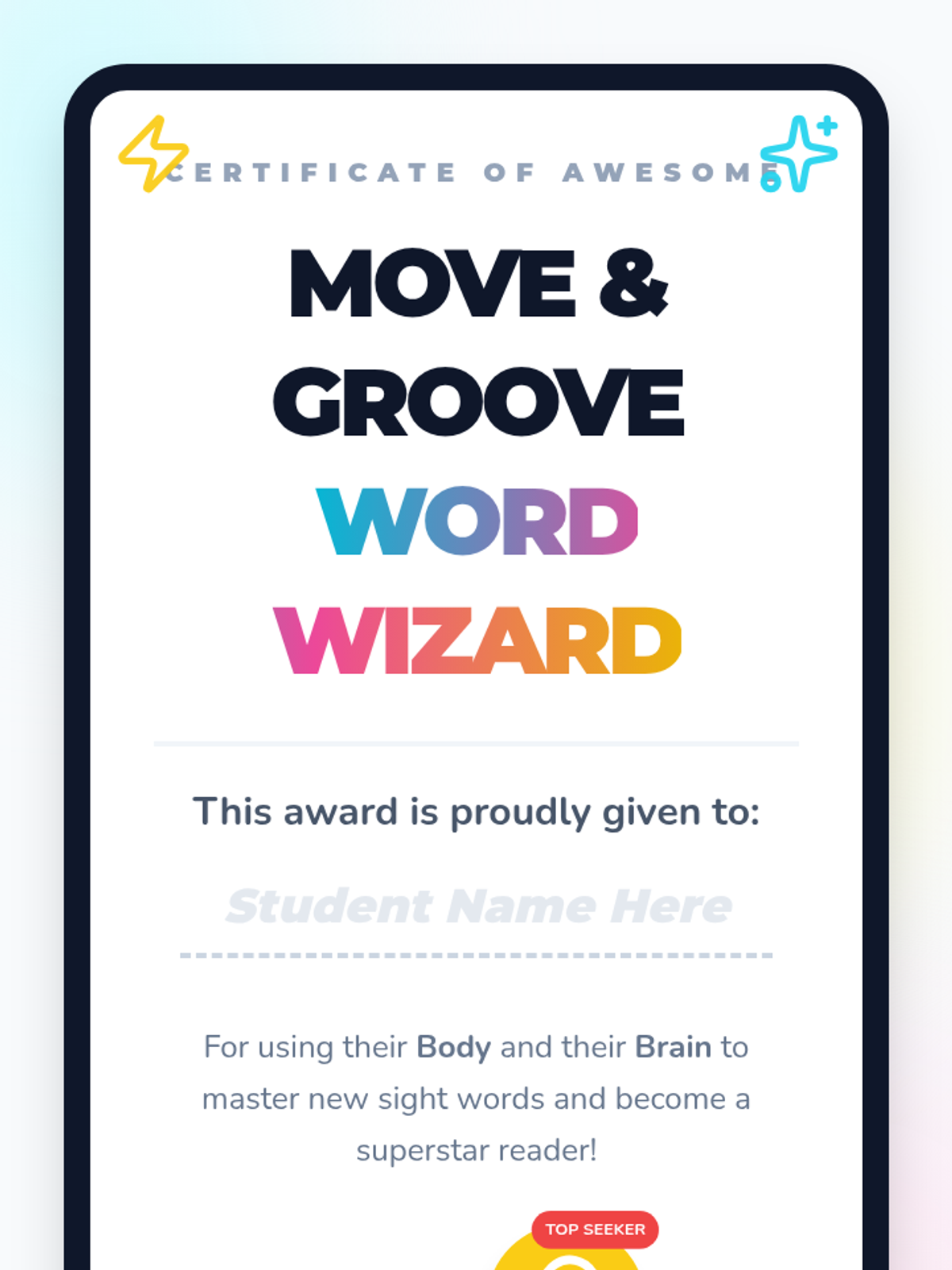 A kinesthetic ELA sequence for Pre-K students that teaches sight words through gross motor movement, including jumping, searching, dancing, and racing. Students connect physical action with rapid word recognition to build reading foundations in a high-energy, engaging environment.