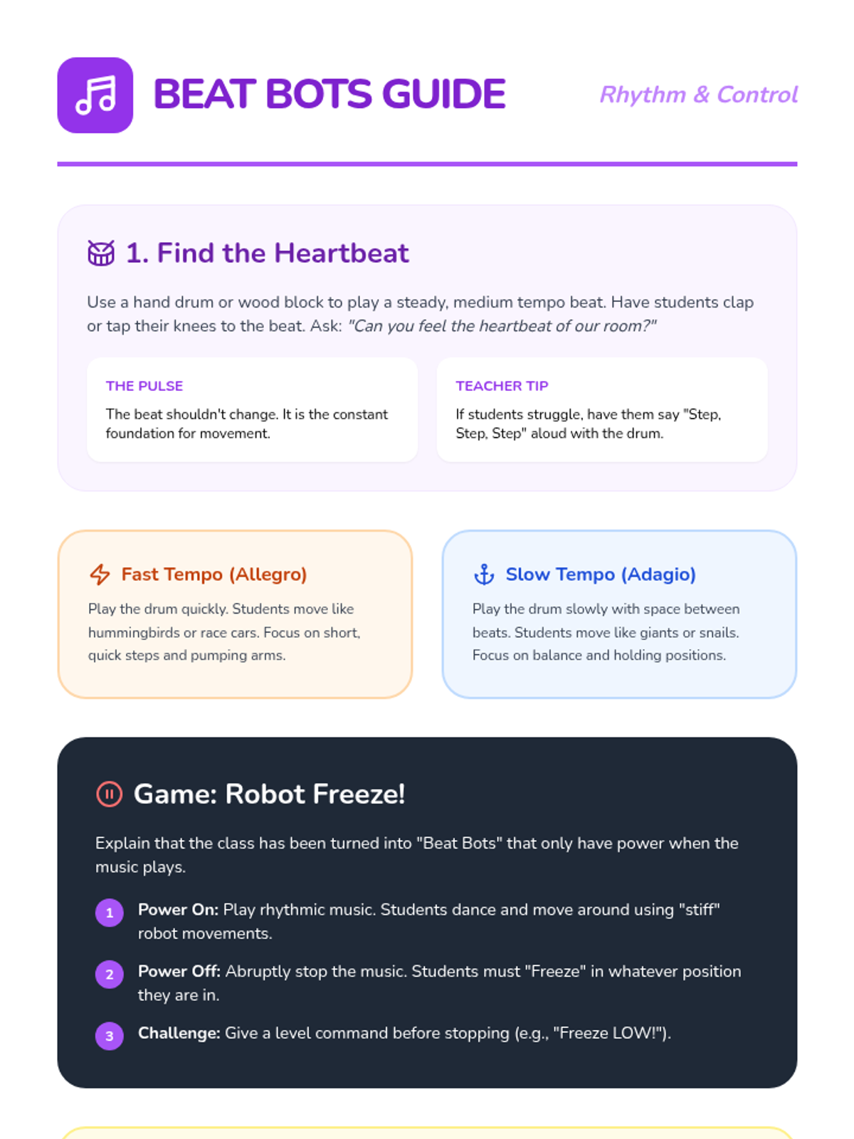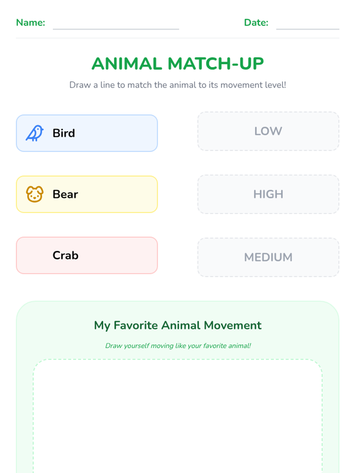 A Kindergarten physical education sequence focused on fundamental locomotor, rhythmic, and manipulative skills through play-based learning and creative movement. Students develop spatial awareness, coordination, and cooperative play skills to build a foundation for lifelong physical activity.