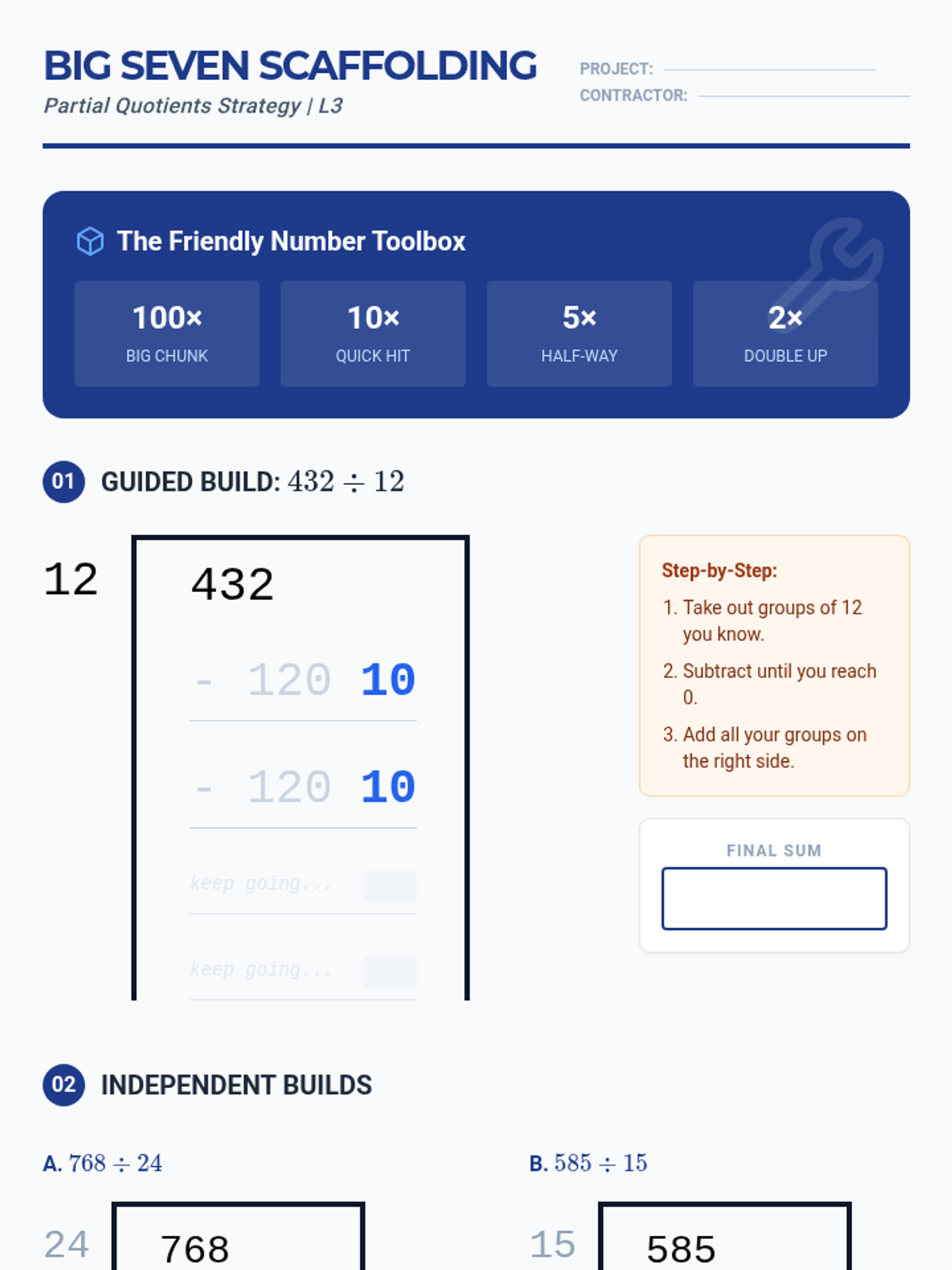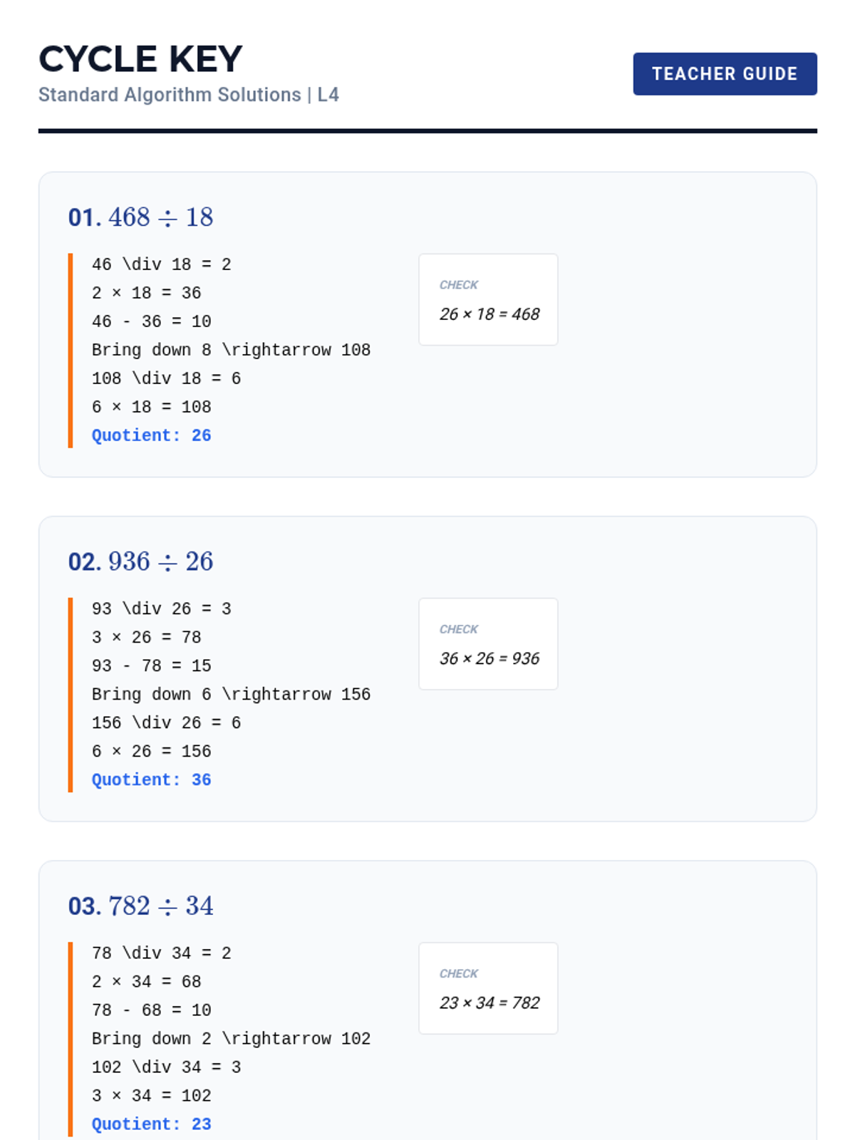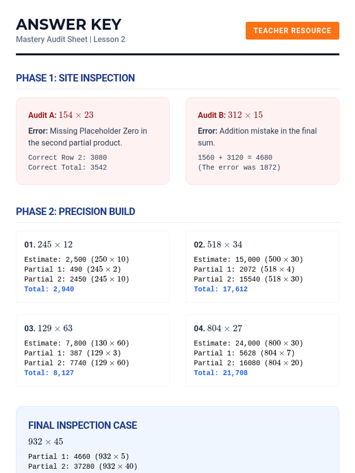 A 5th-grade math sequence focused on multi-digit multiplication and division. Students bridge conceptual models to standard algorithms, develop procedural fluency, and learn to select and verify operations using inverse relationships.